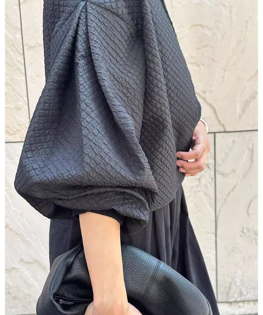 独特の存在感を放つバルーン袖が、コーディネートに華やかさをプラス。