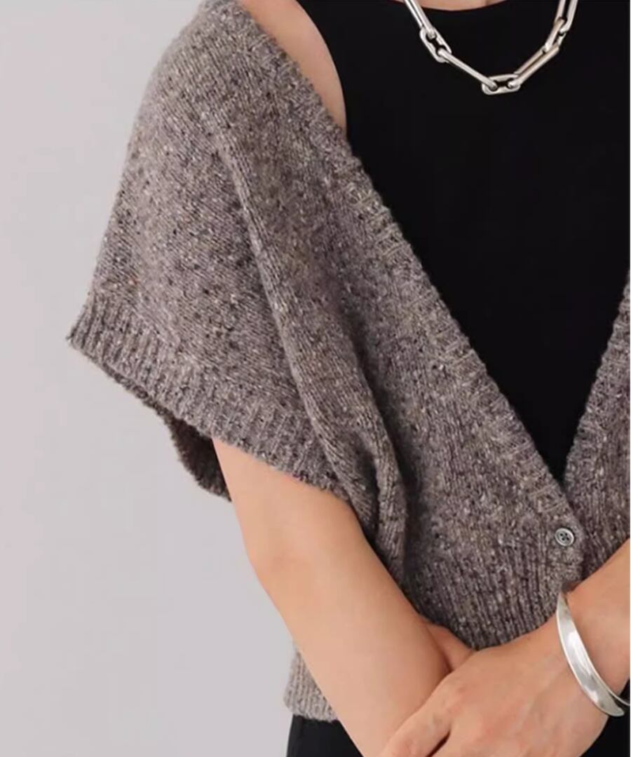 深めのVネックが女性らしさを引き立て、スタイルアップ効果も期待できます。