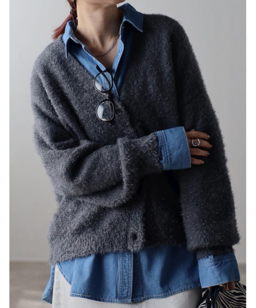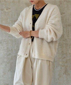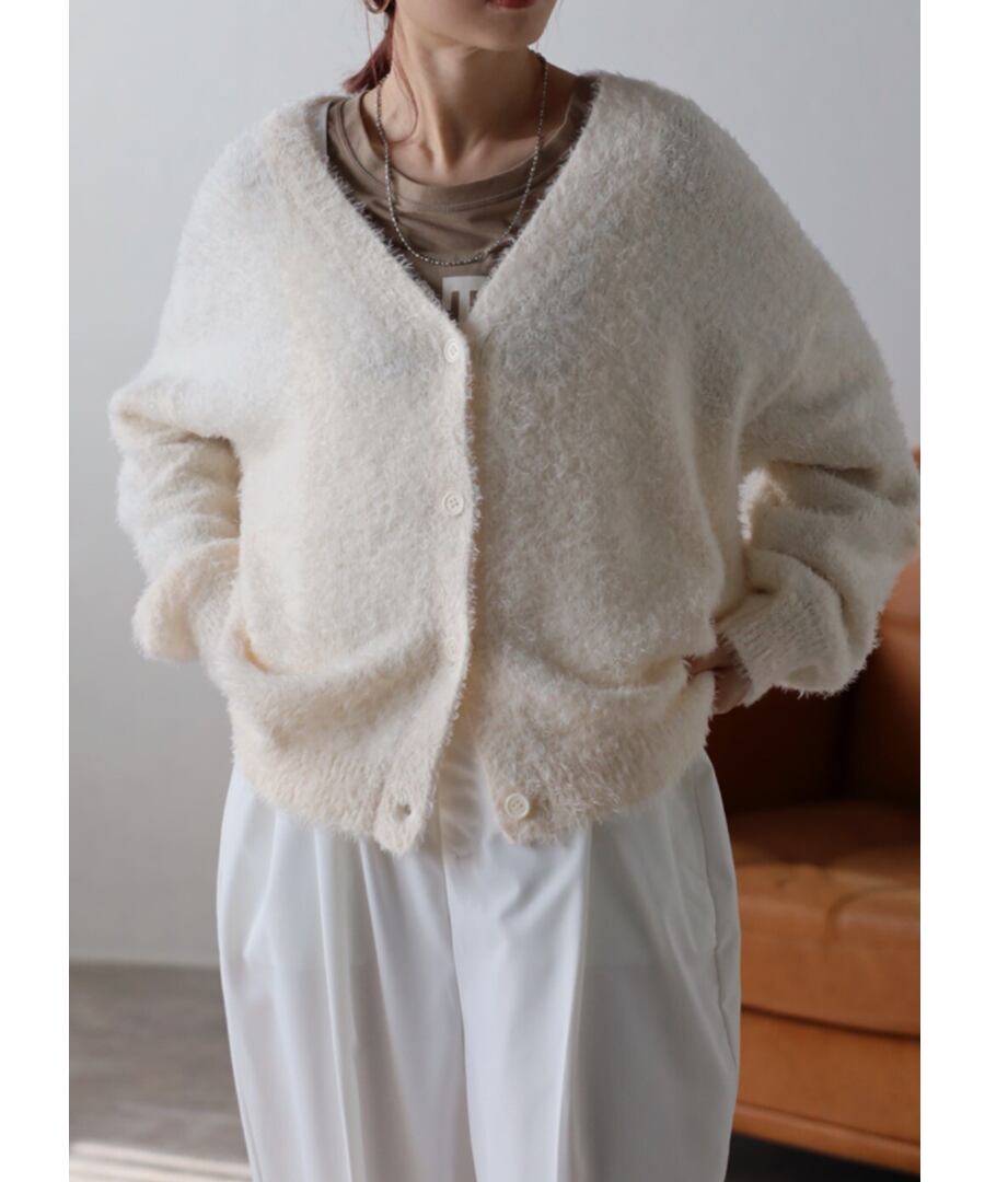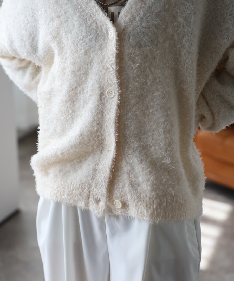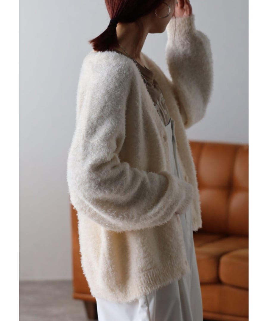 今シーズン人気のシャギー素材がトレンドライクなニットカーディガン。