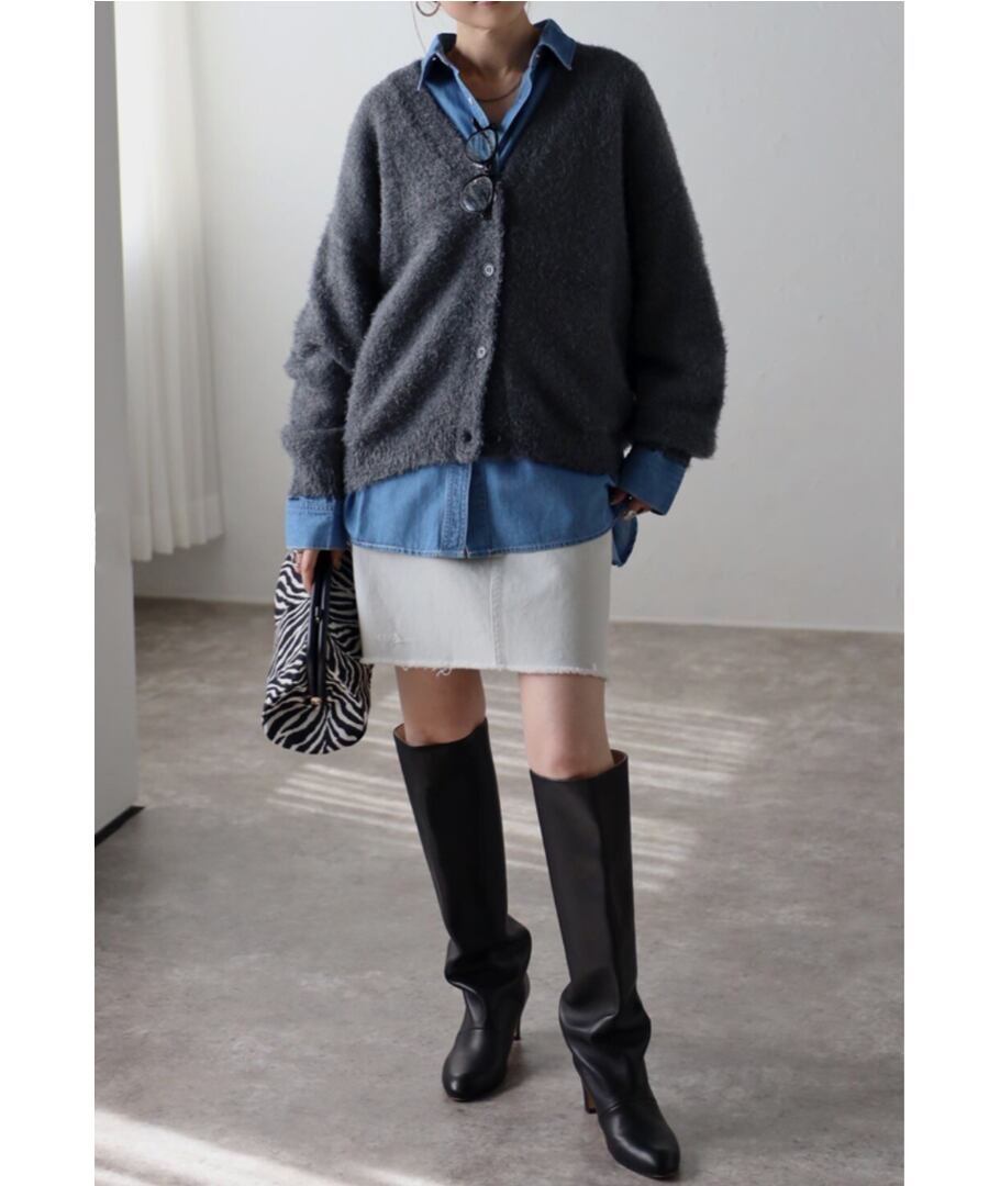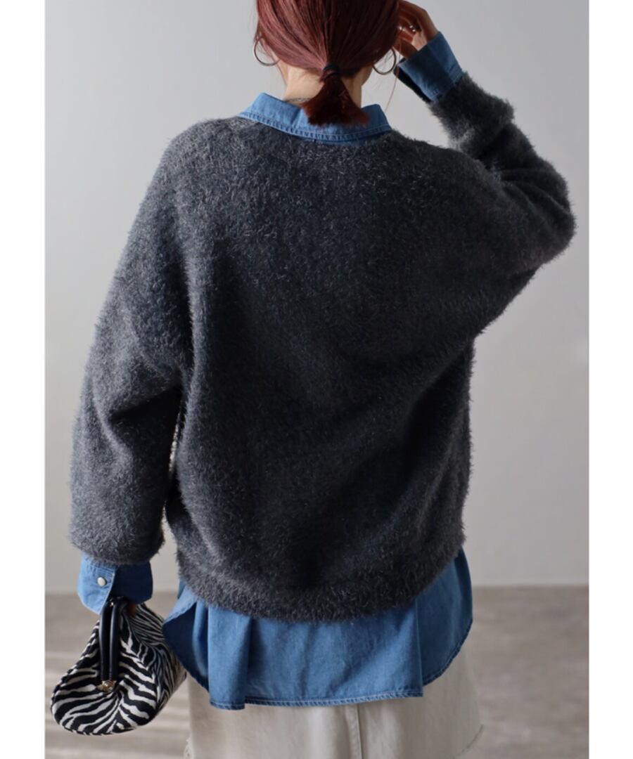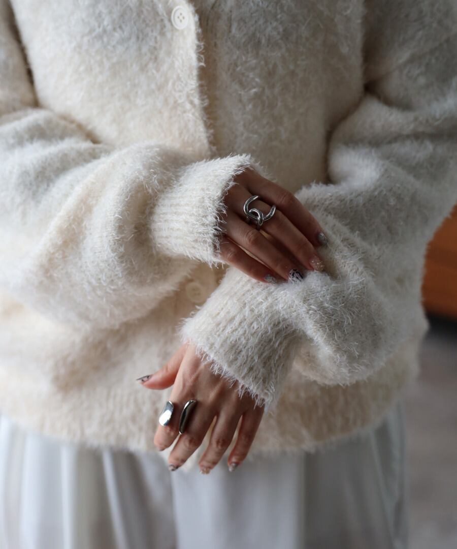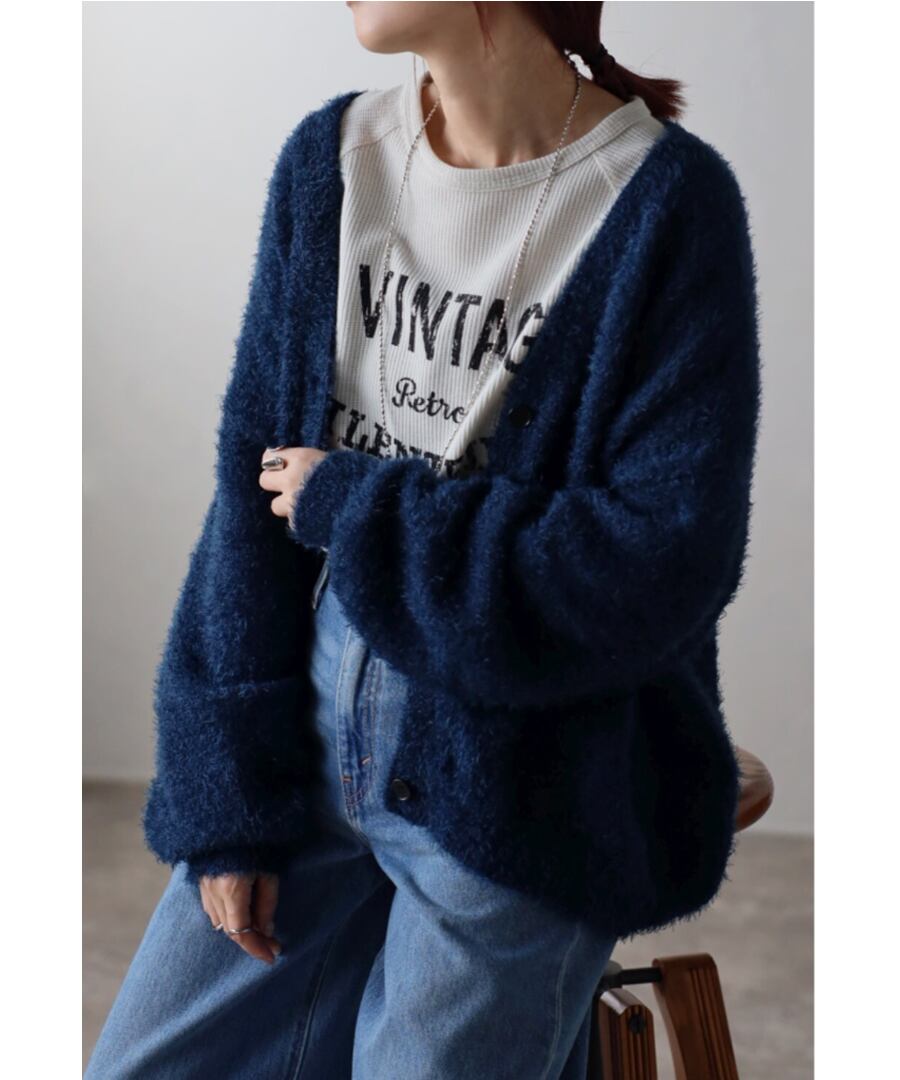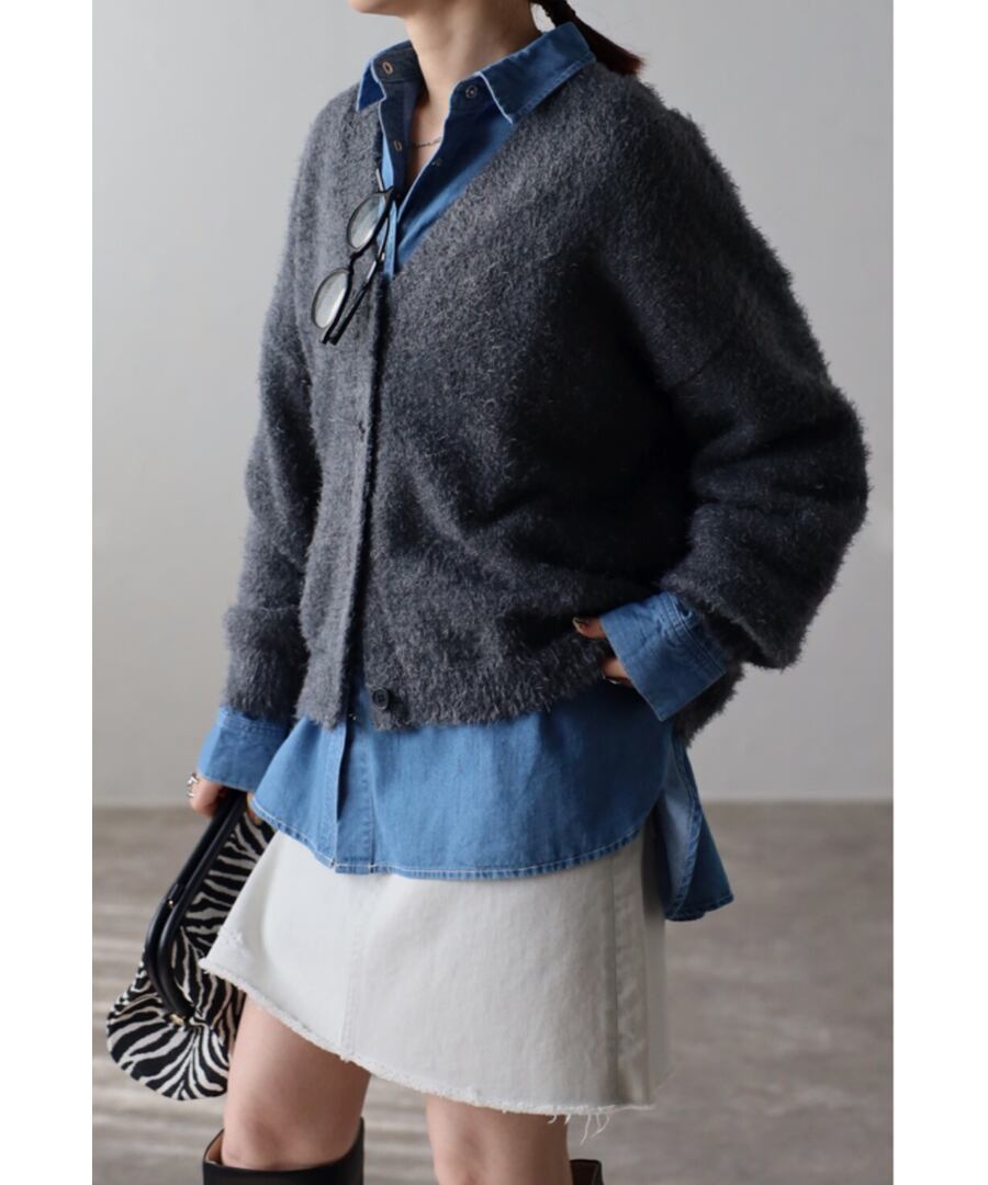今シーズン人気のシャギー素材がトレンドライクなニットカーディガン。