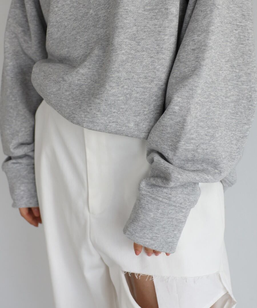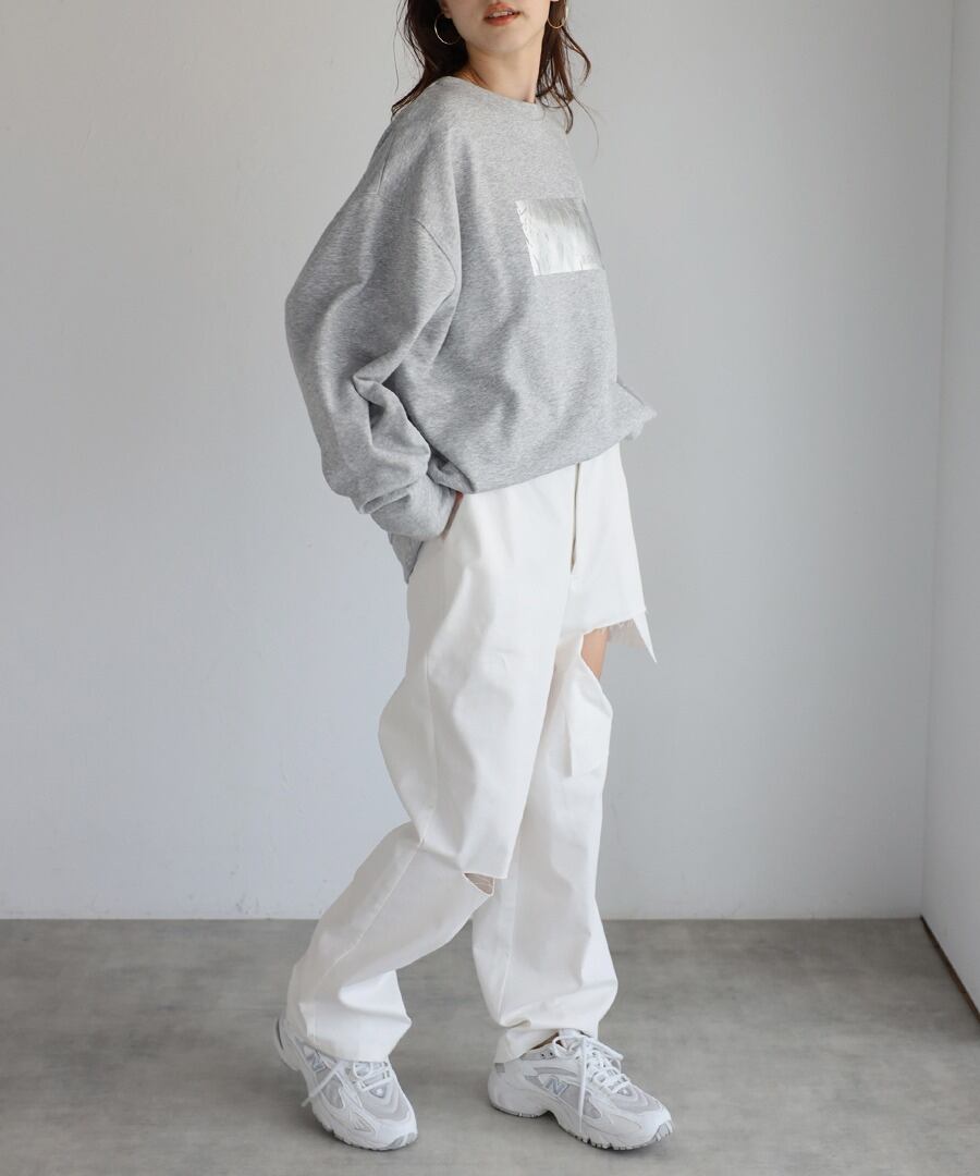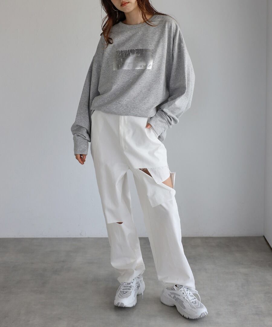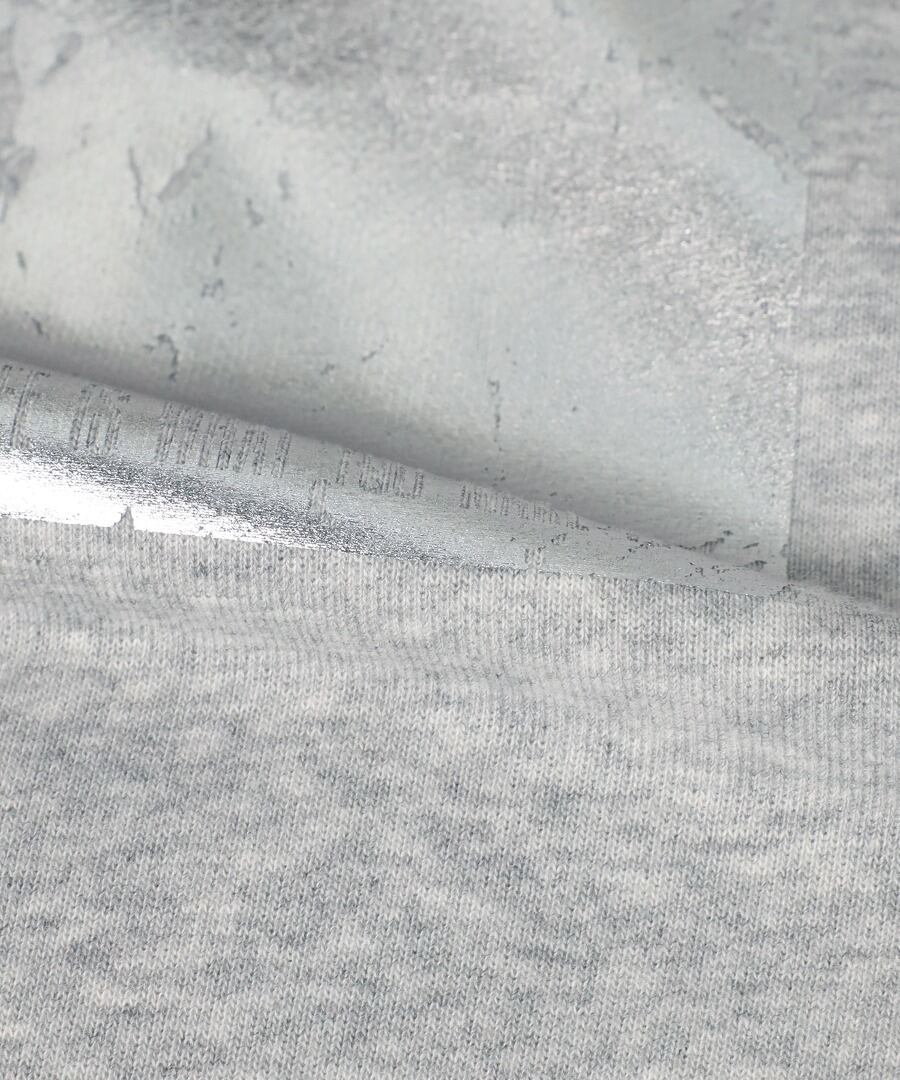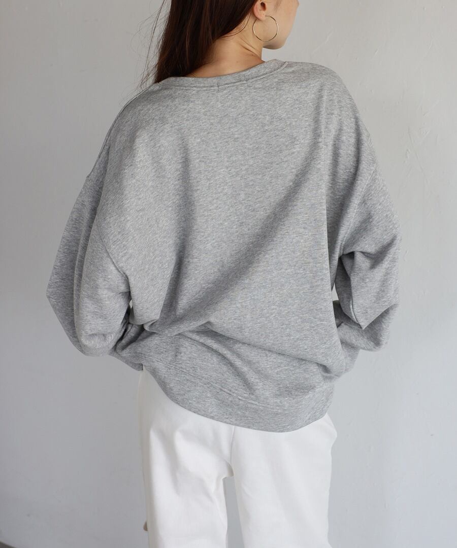 トレンド感溢れるオーバーサイズのスウェットに、箔プリントがアクセントとして施された一着。