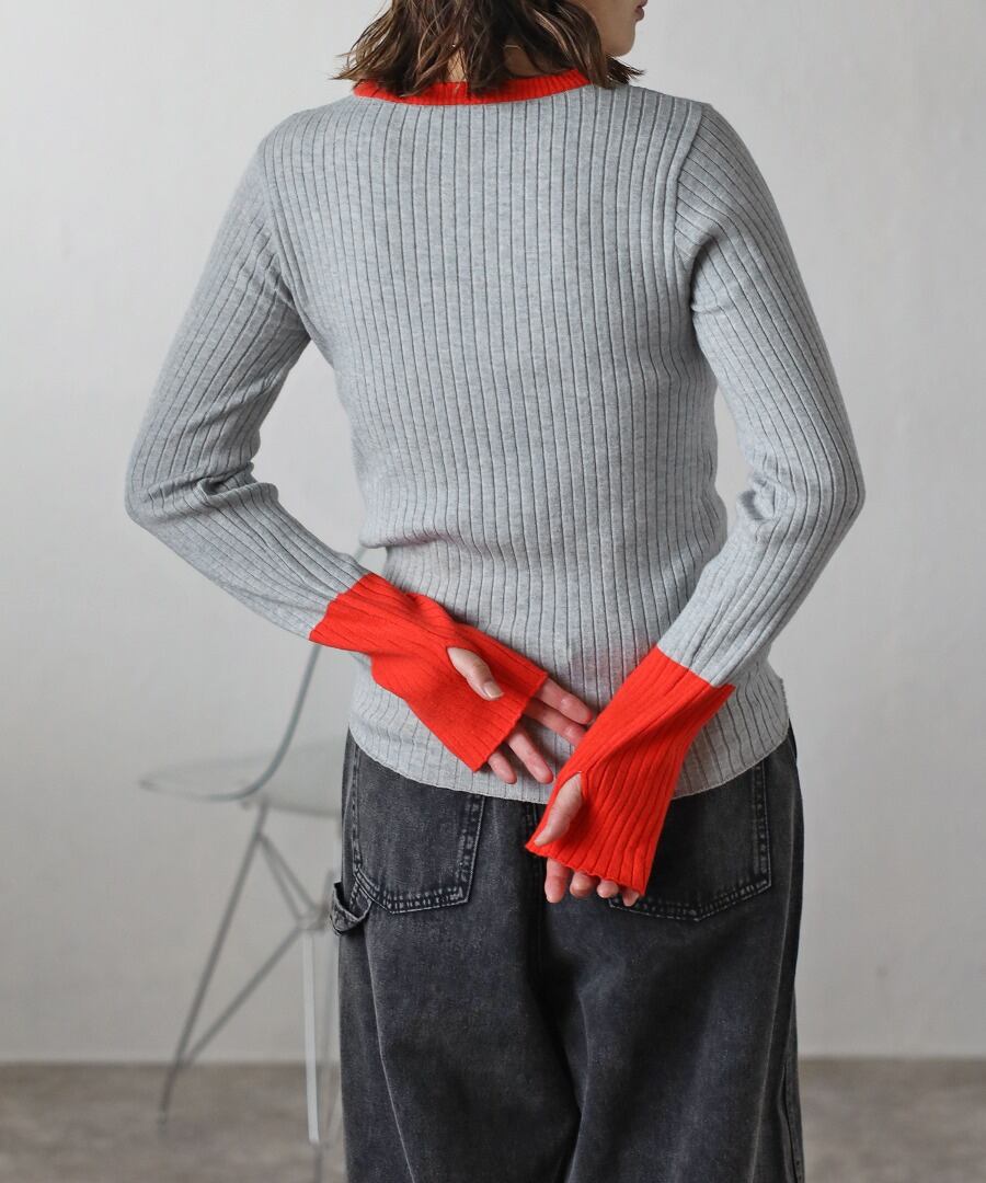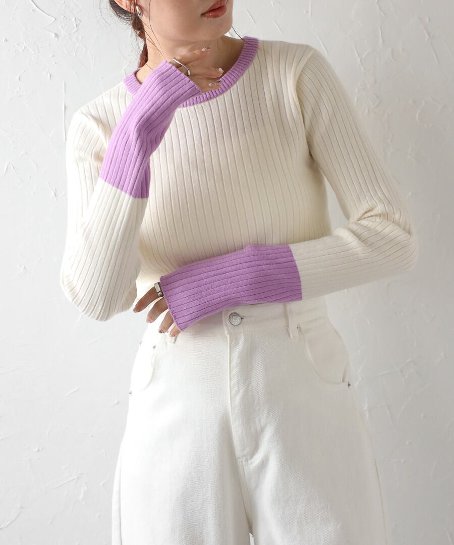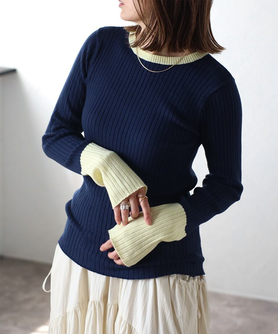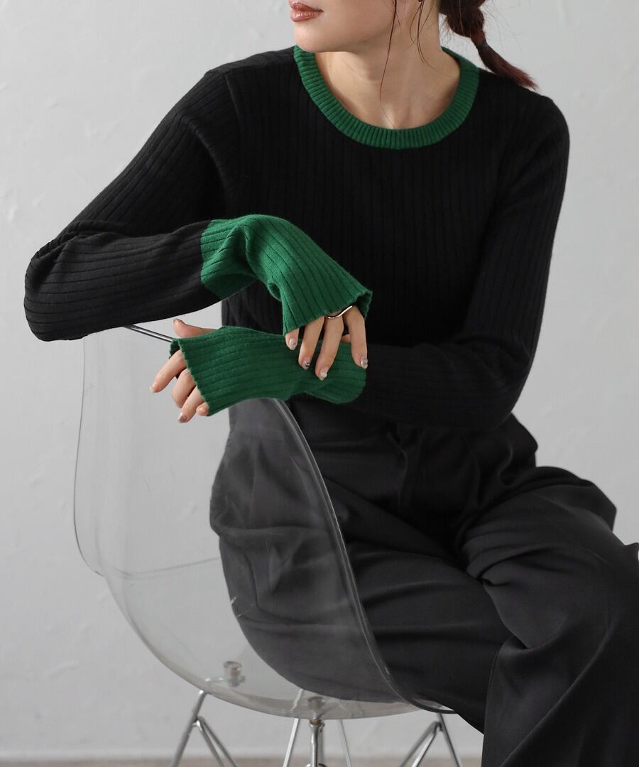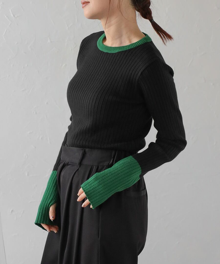 配色フィンガーホールリブニット【t-11096】.