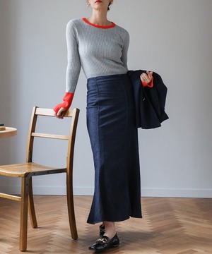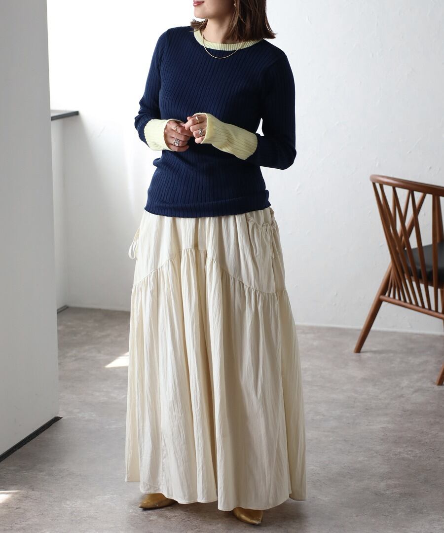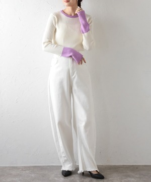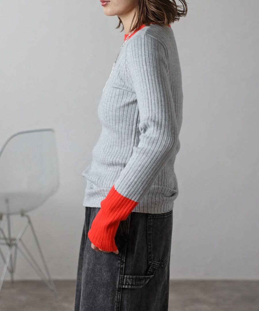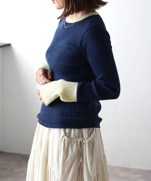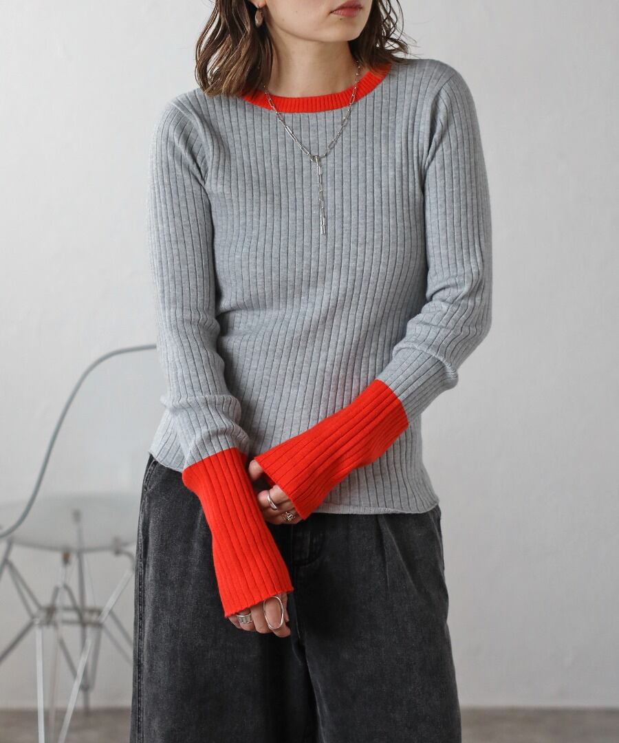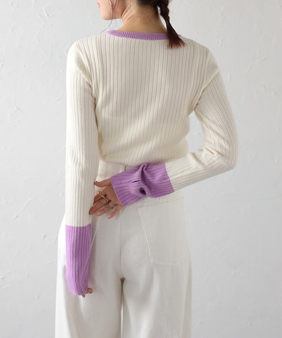 配色フィンガーホールリブニット【t-11096】.