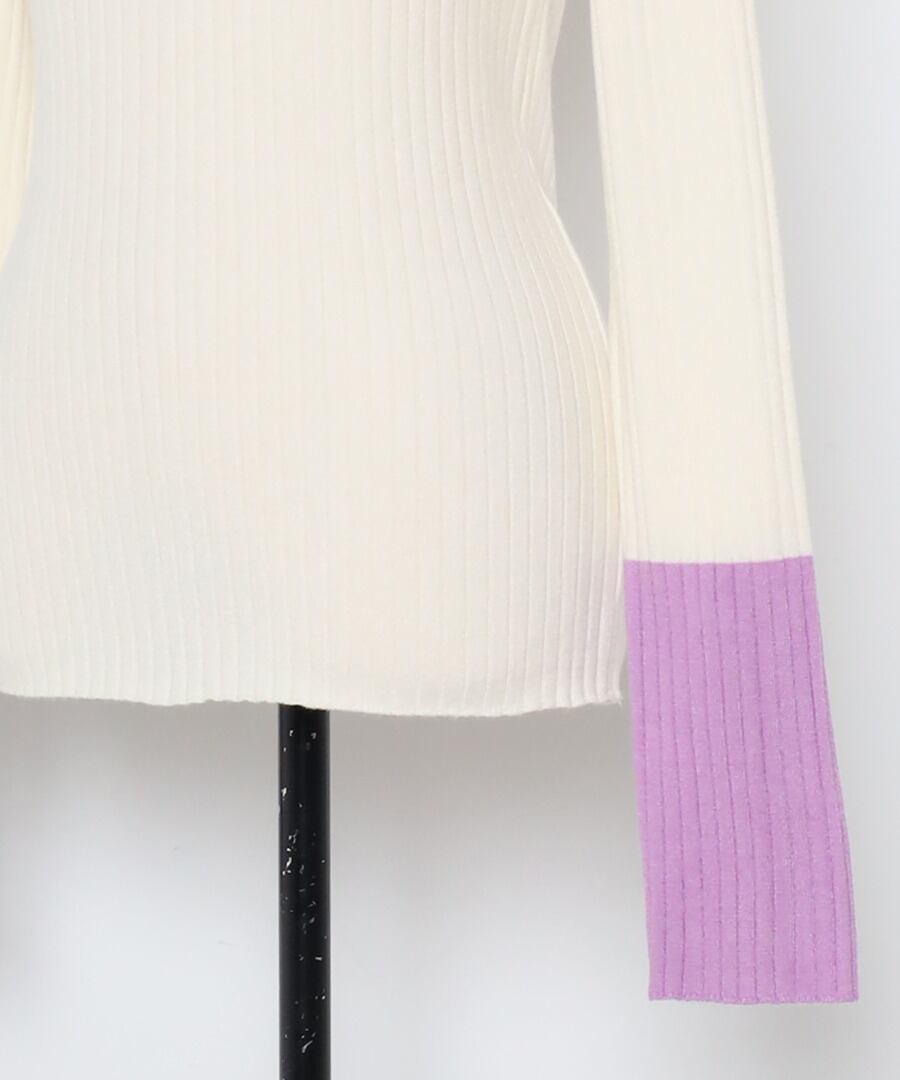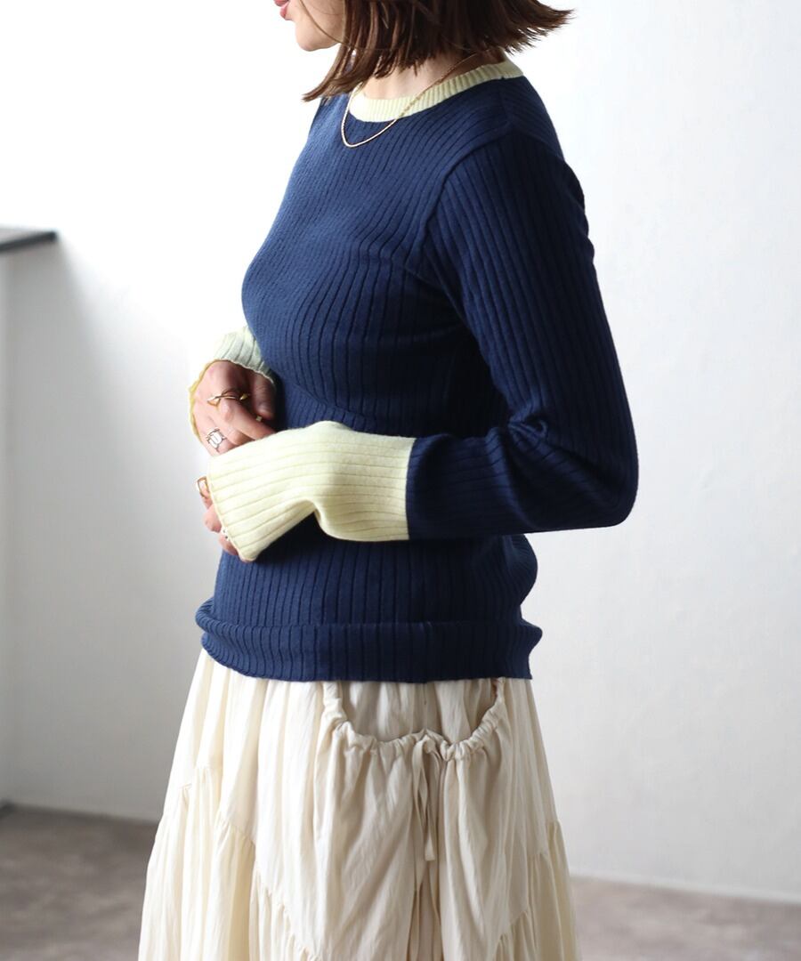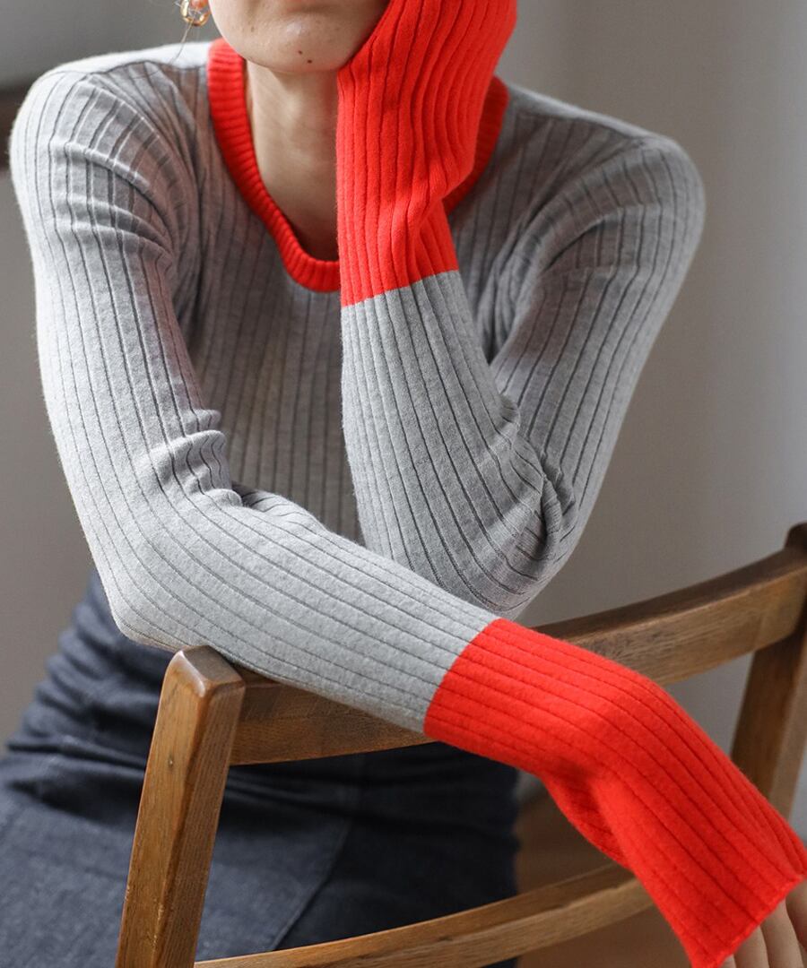 遊び心溢れるバイカラーリブニット