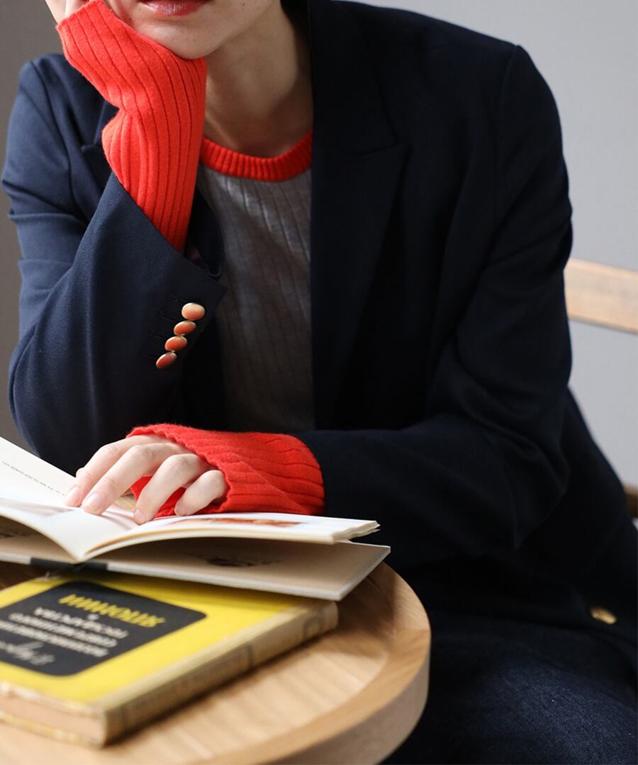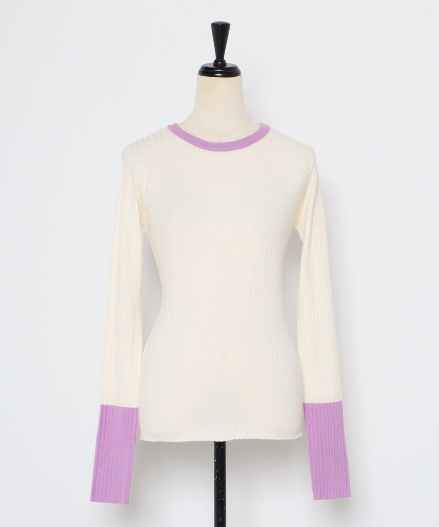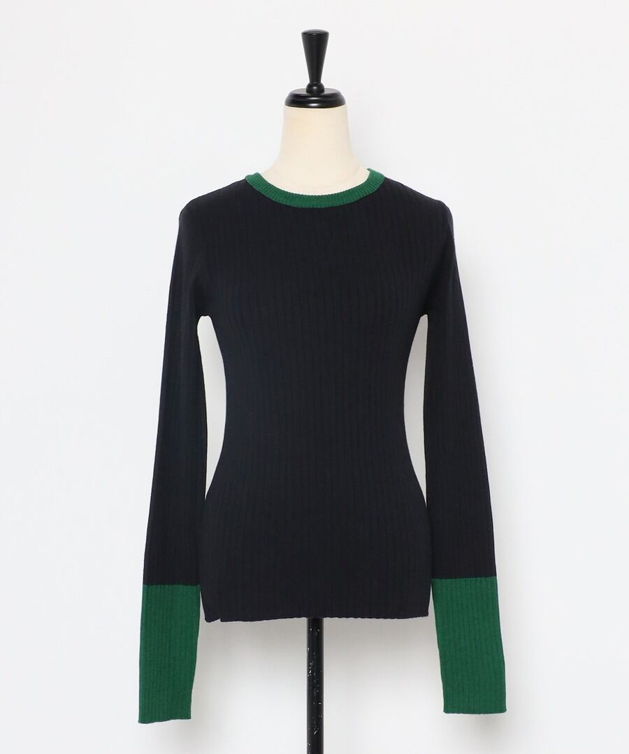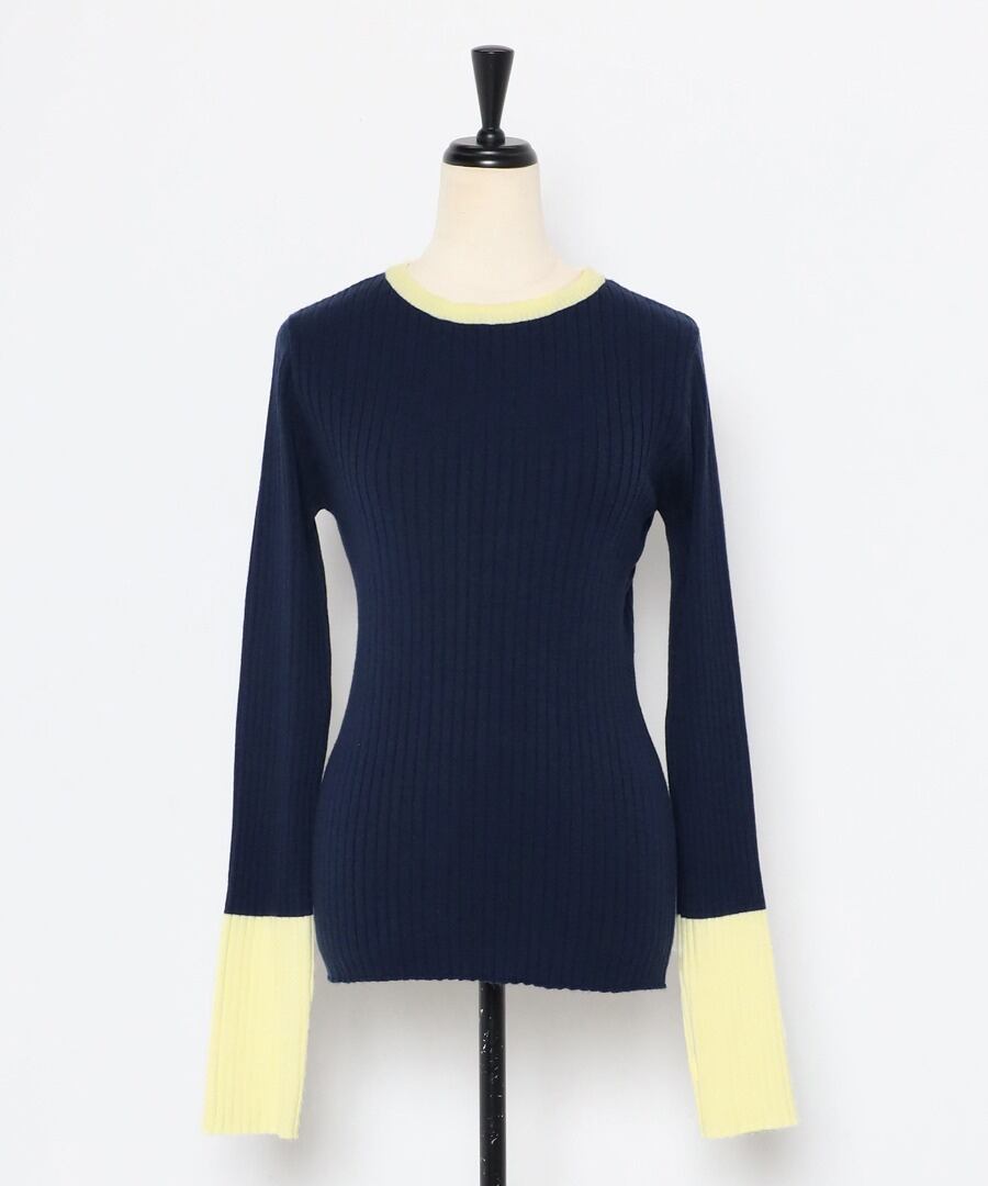 遊び心溢れるバイカラーリブニット