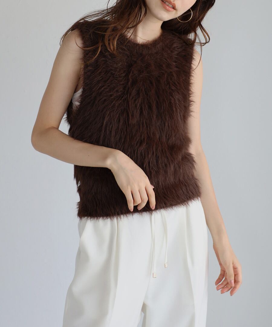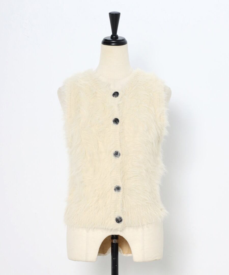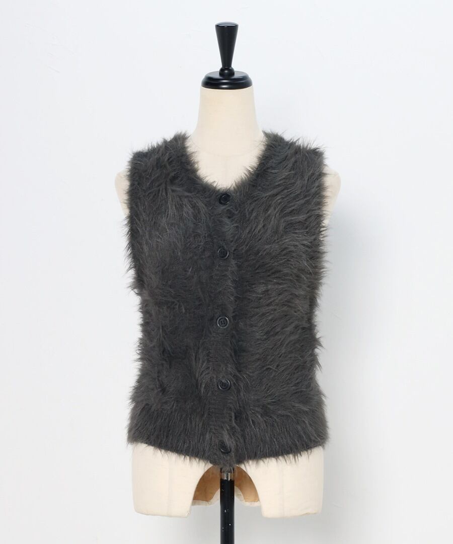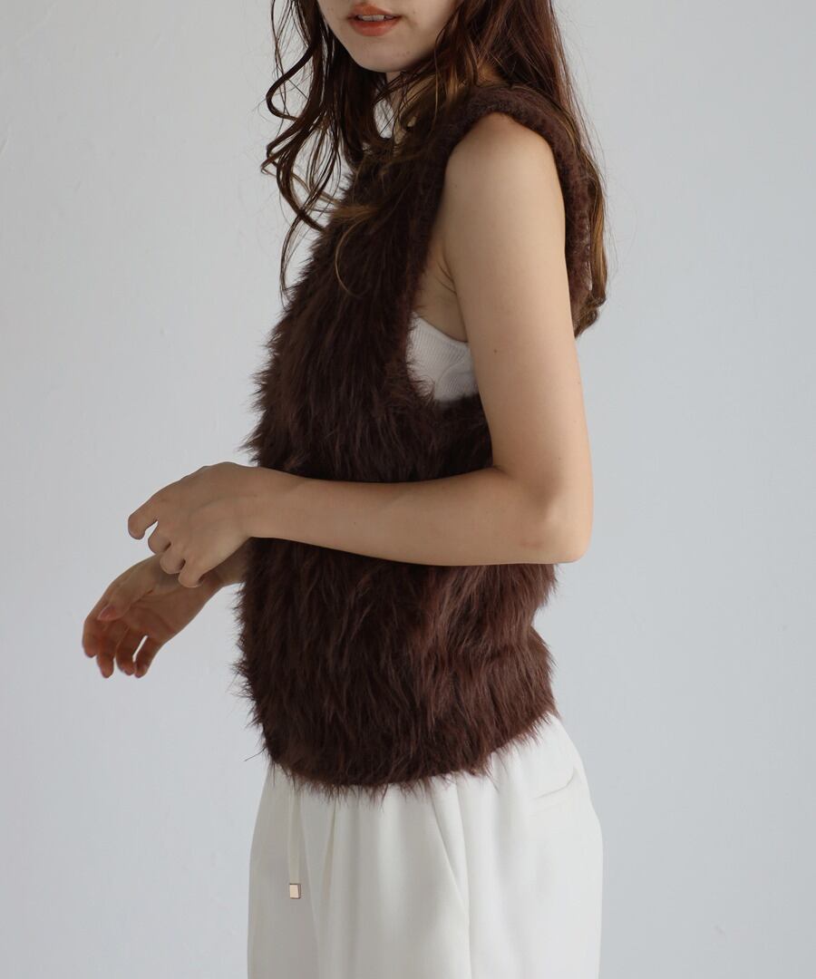 柔らかなフェザーヤーン素材を使用した暖かみのあるベスト。