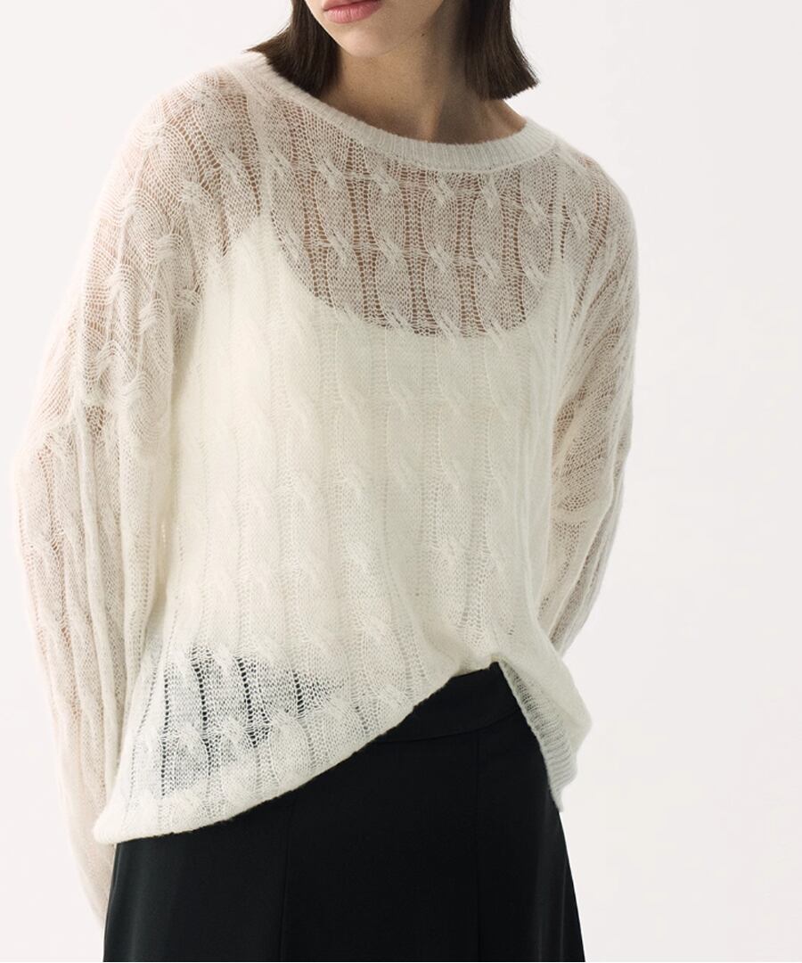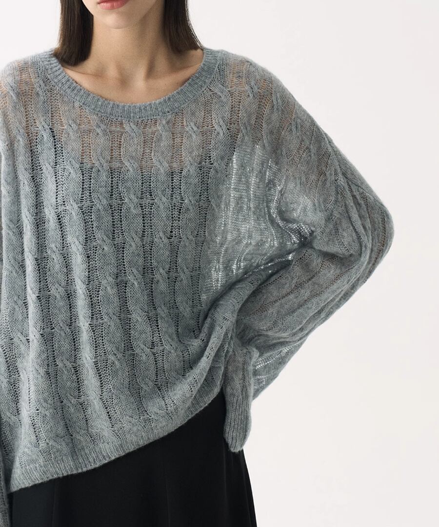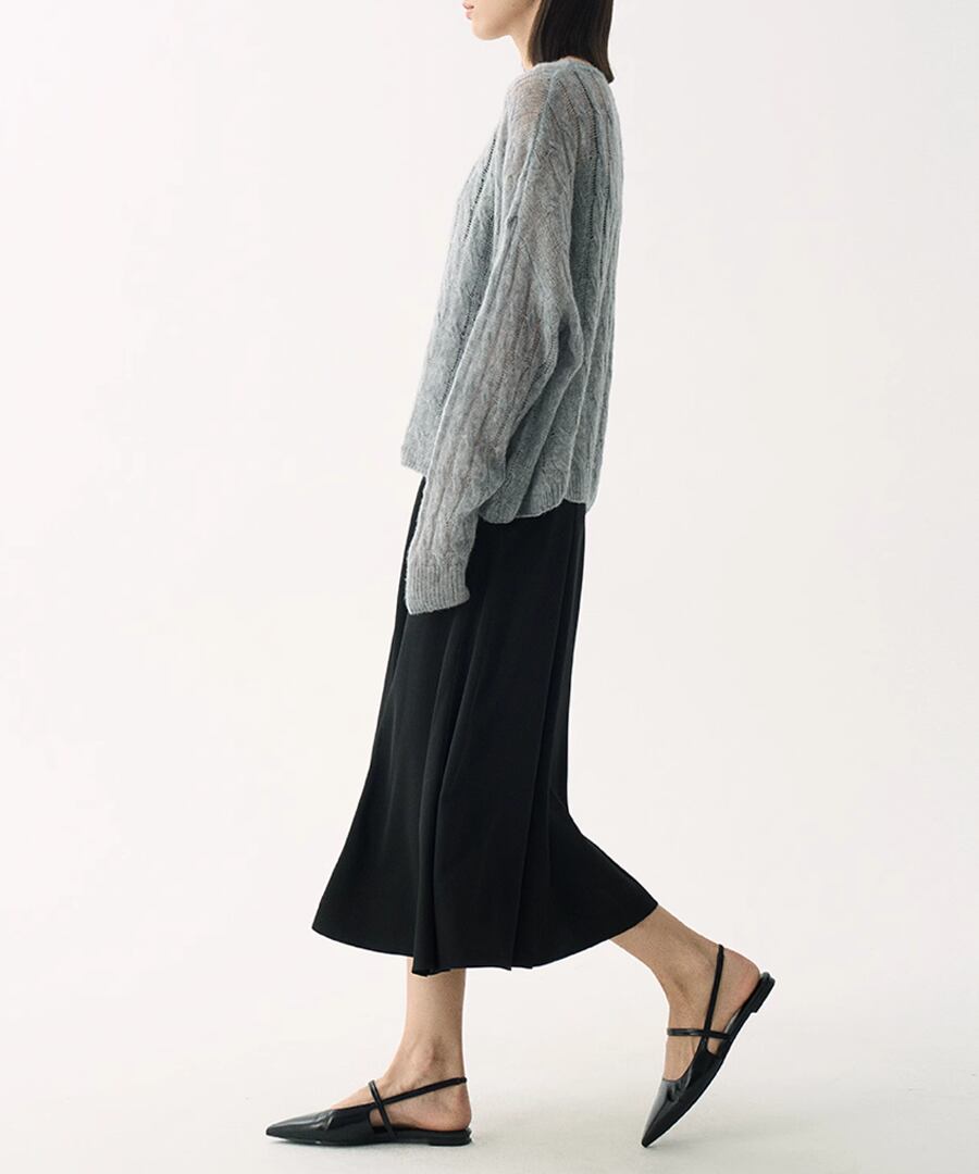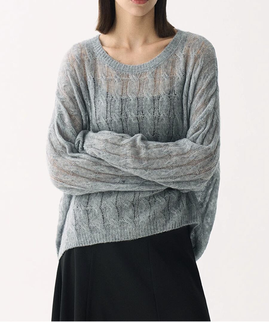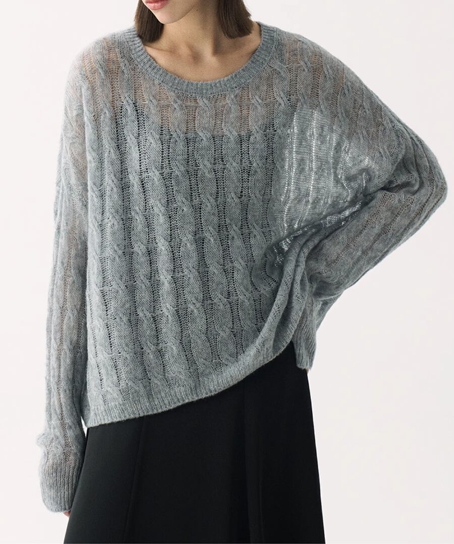 カシミア混の優しい風合いと、シアーなテクスチャーが絶妙にマッチした一枚。