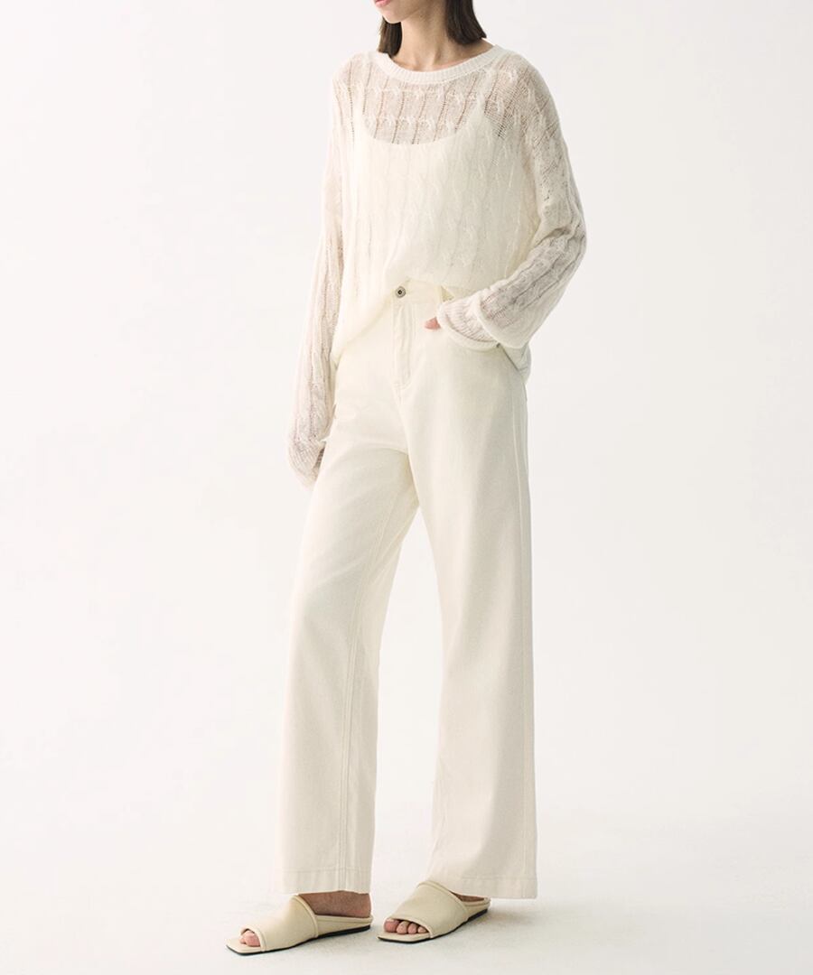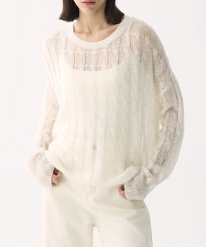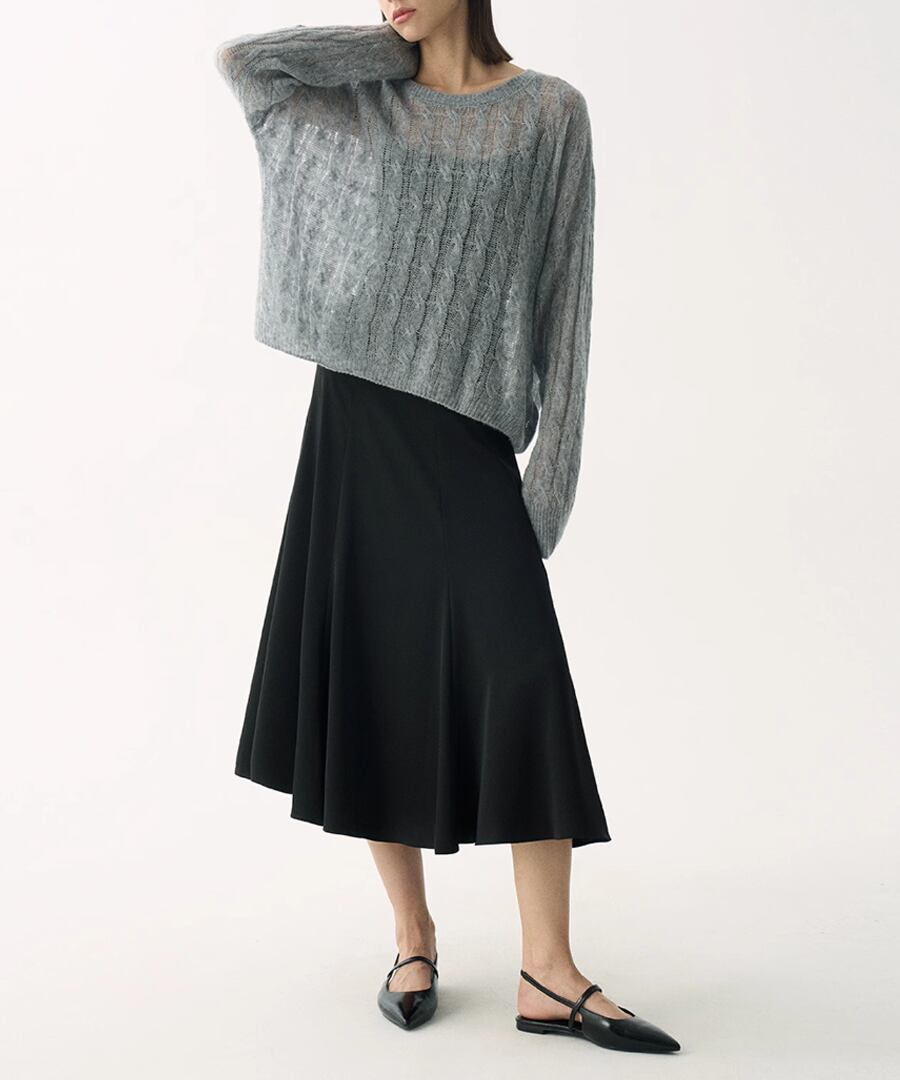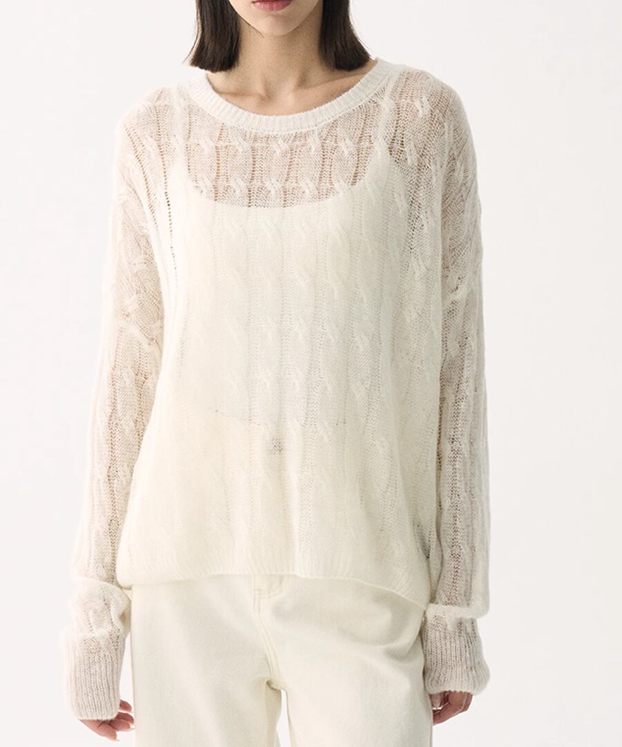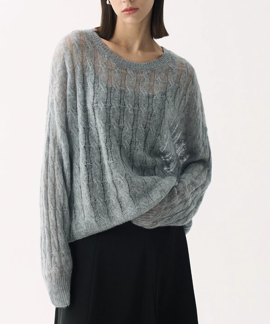 カシミア混の優しい風合いと、シアーなテクスチャーが絶妙にマッチした一枚。