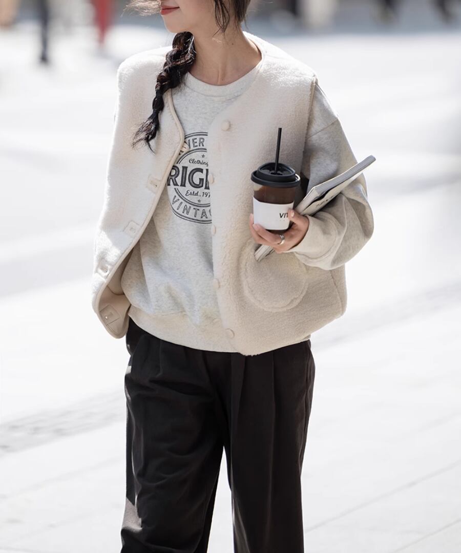 心地よいボア素材を使用した、今季必見のアイテムです。