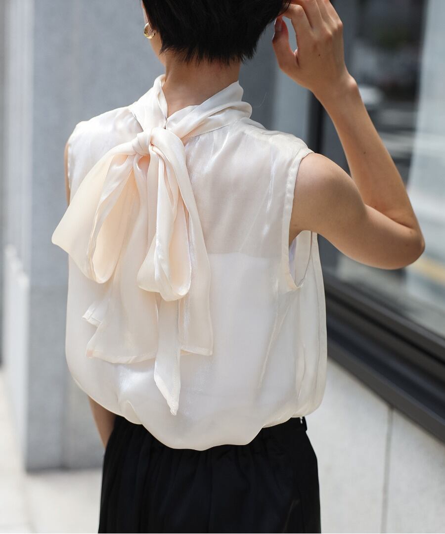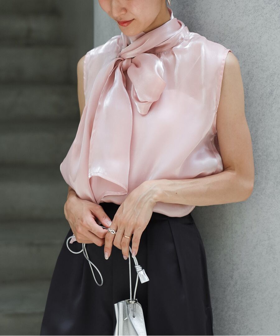 ブラウスは前後2WAYのボウタイデザインで、シーンに合わせたアレンジが楽しめます。