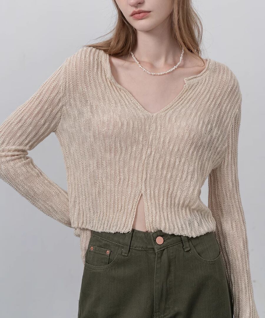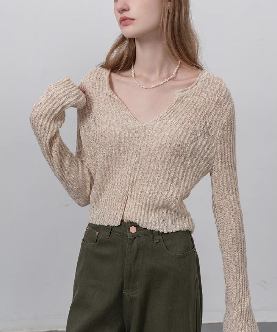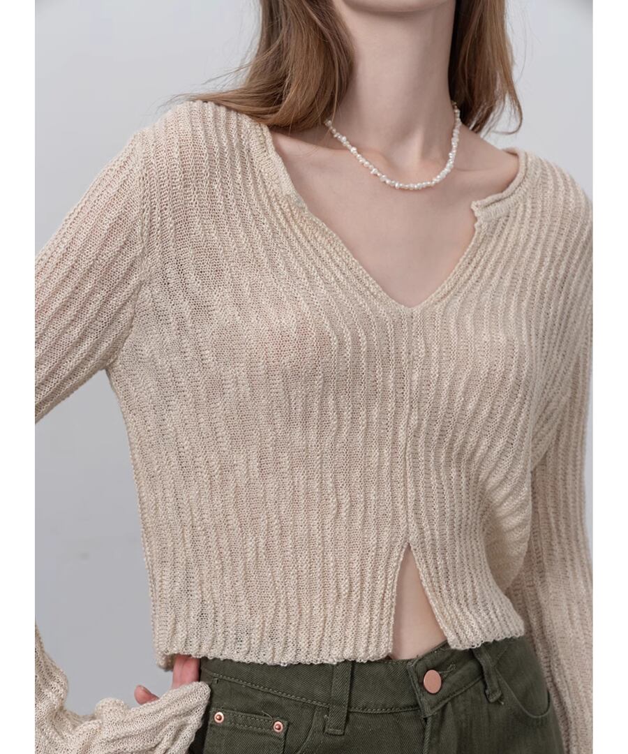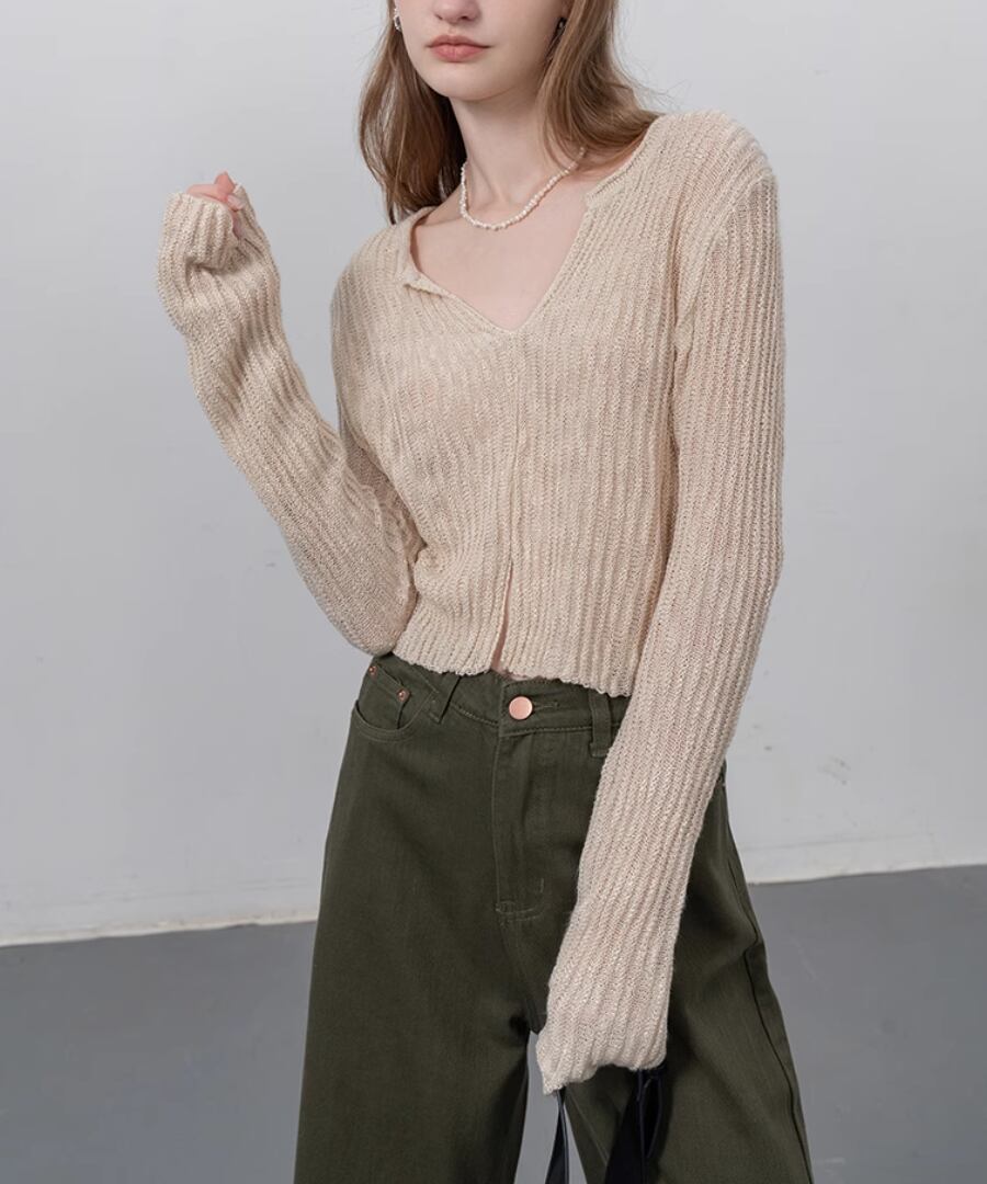 Vネックやわらかトップス◆ショート丈【t-11111】