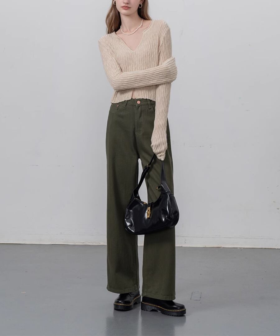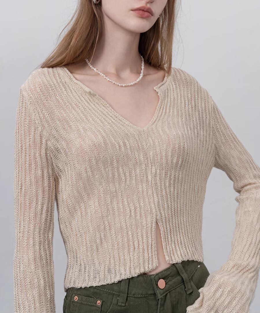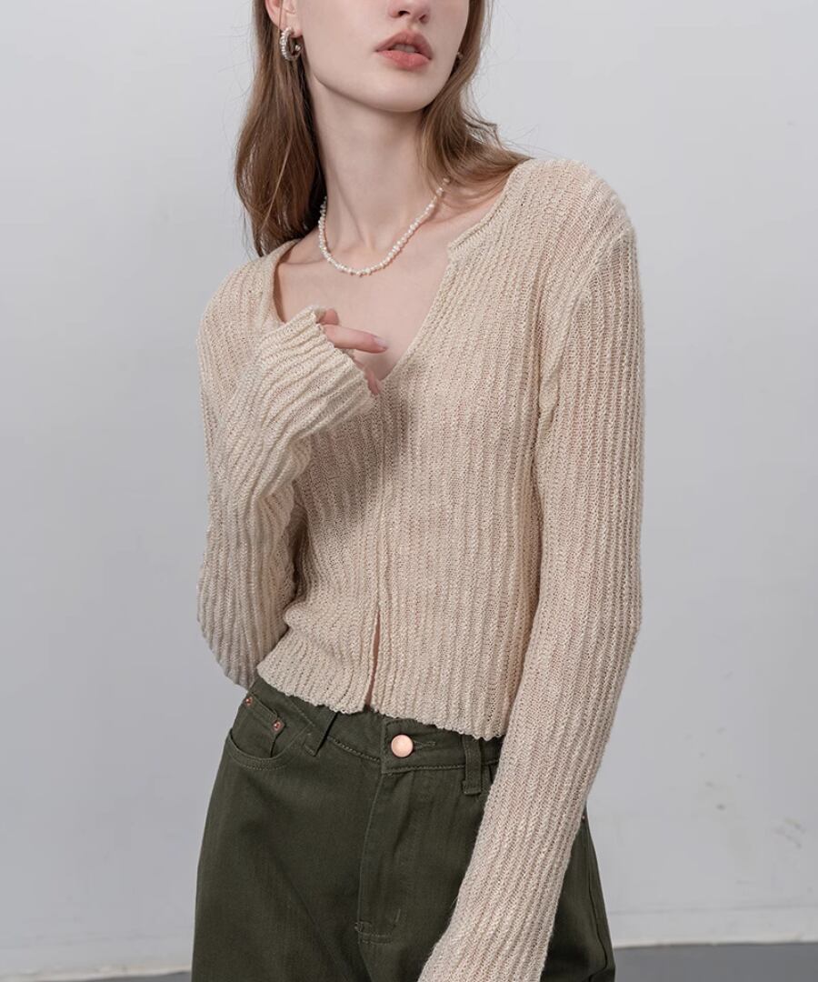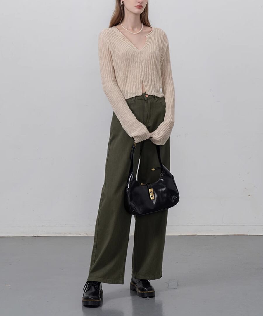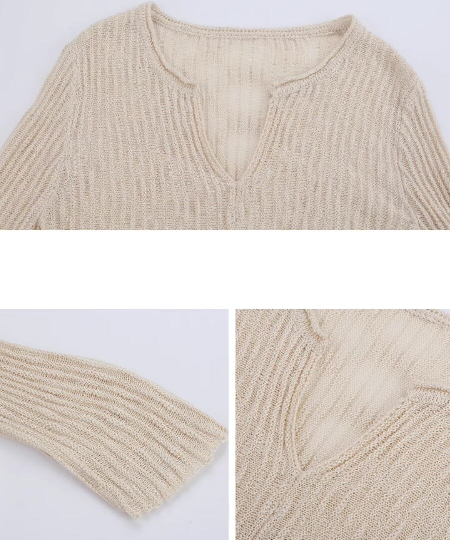 Vネックやわらかトップス◆ショート丈【t-11111】