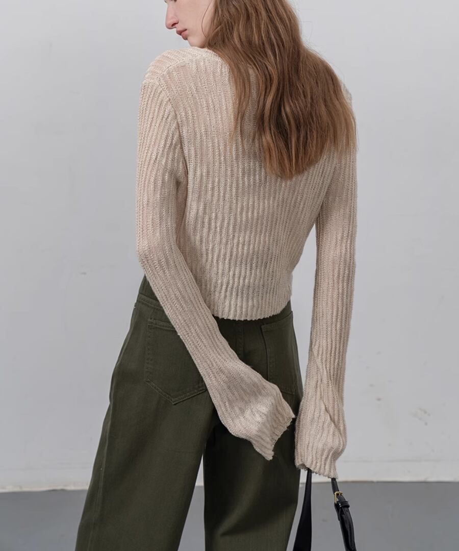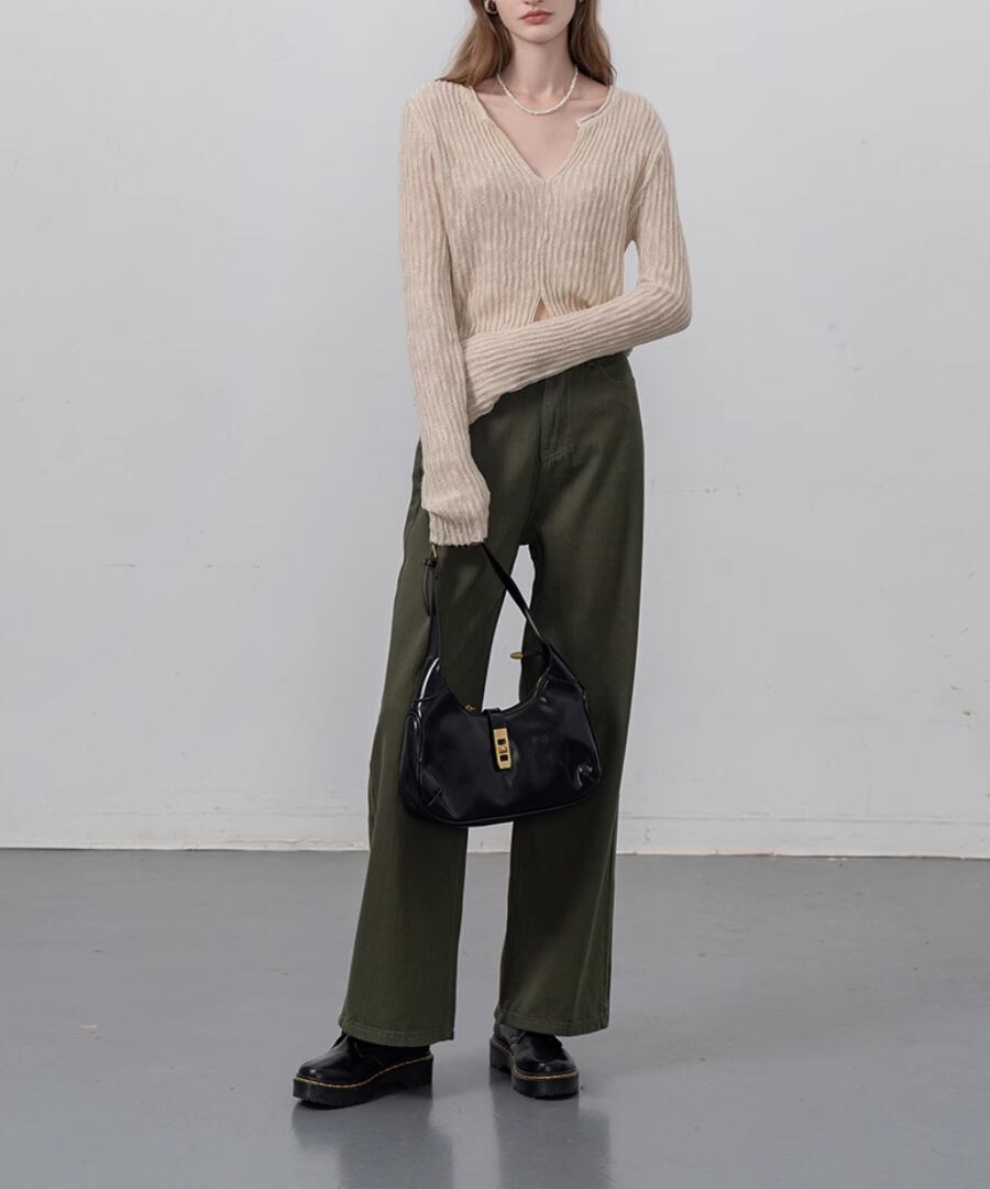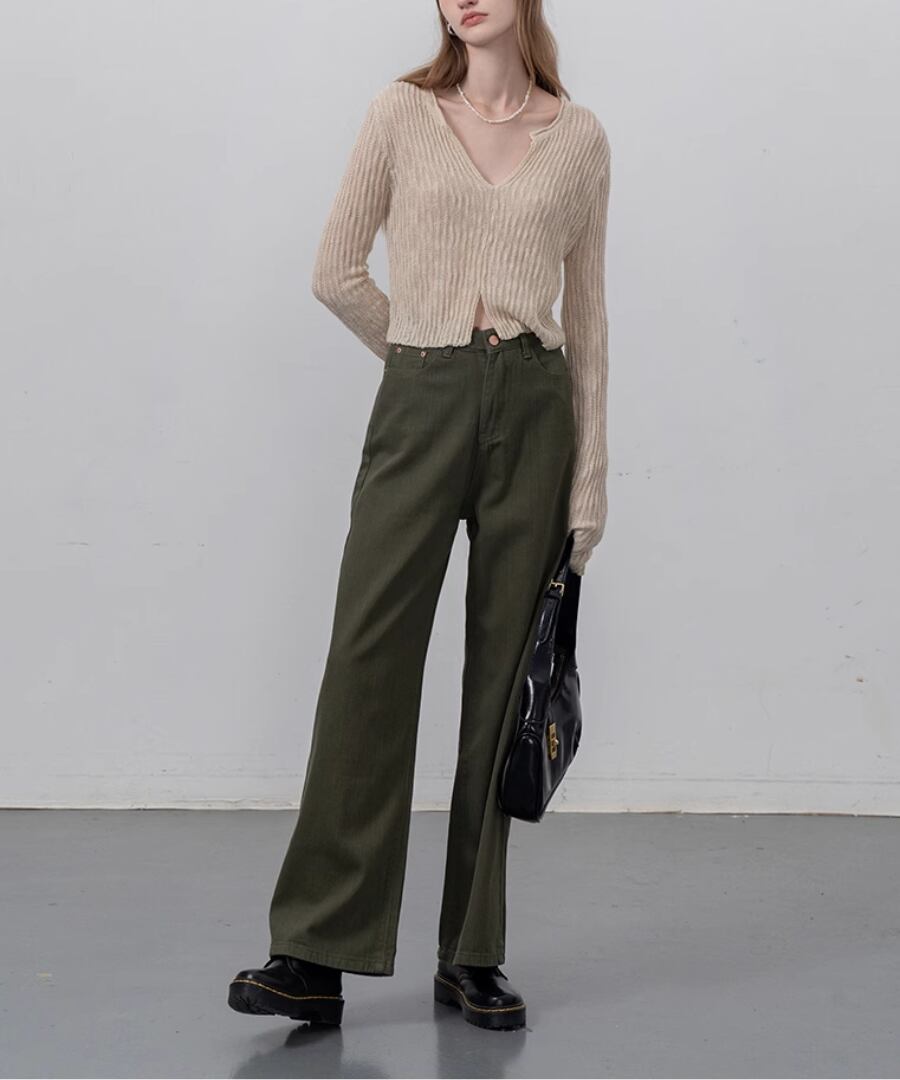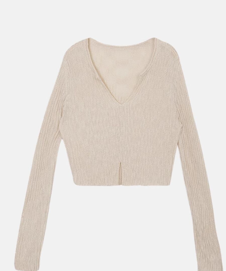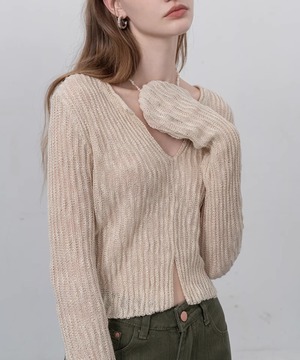 Vネックやわらかトップス◆ショート丈【t-11111】