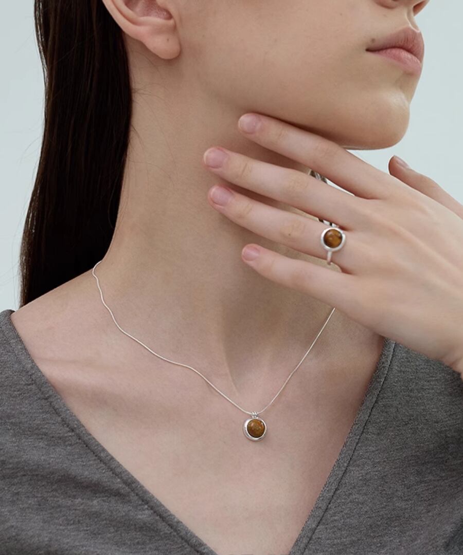 深い色合いと美しい光沢が魅力の天然石タイガーアイを使用したネックレス・リング。