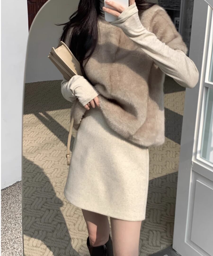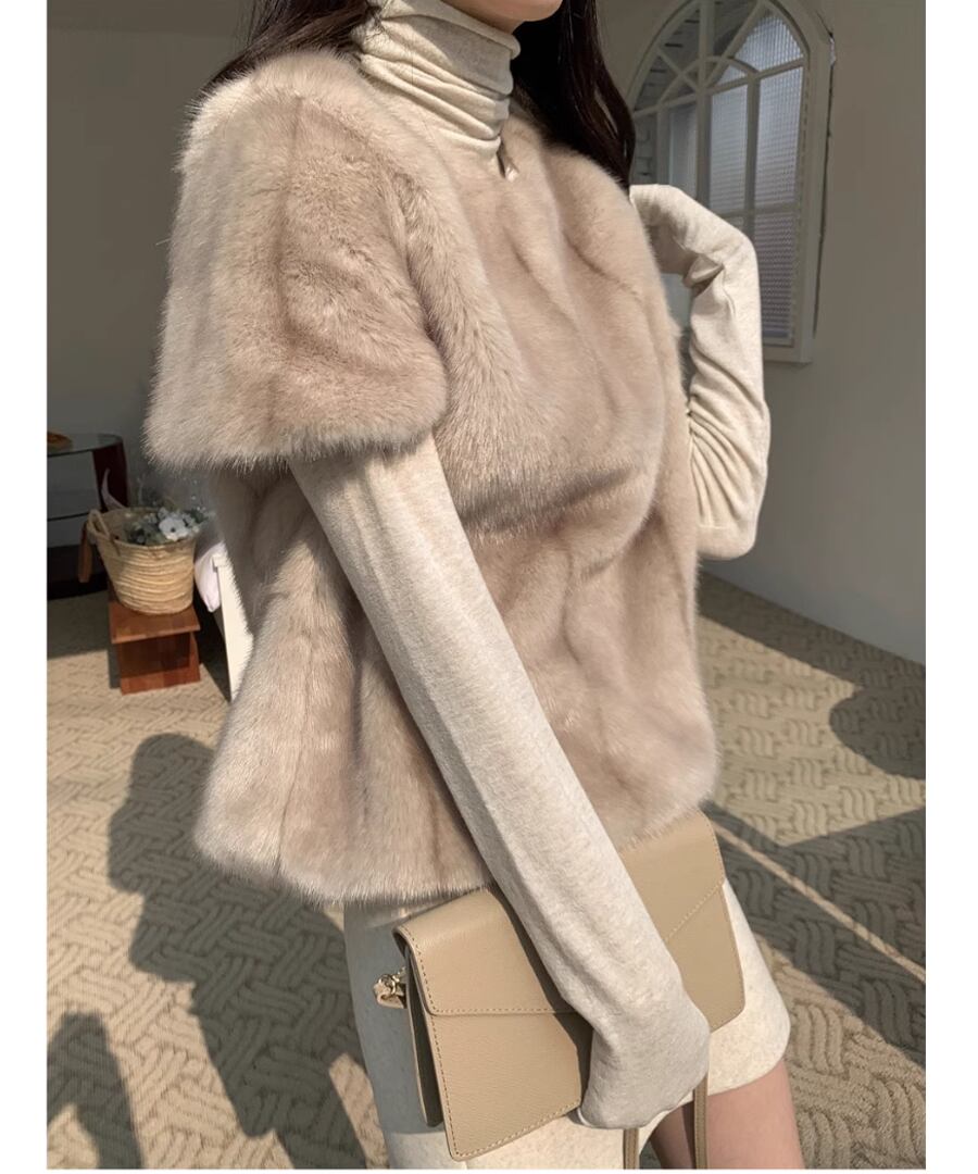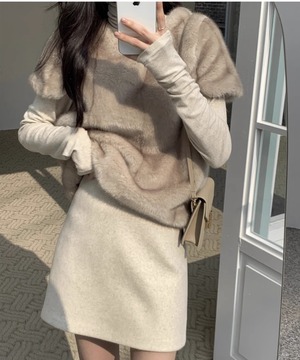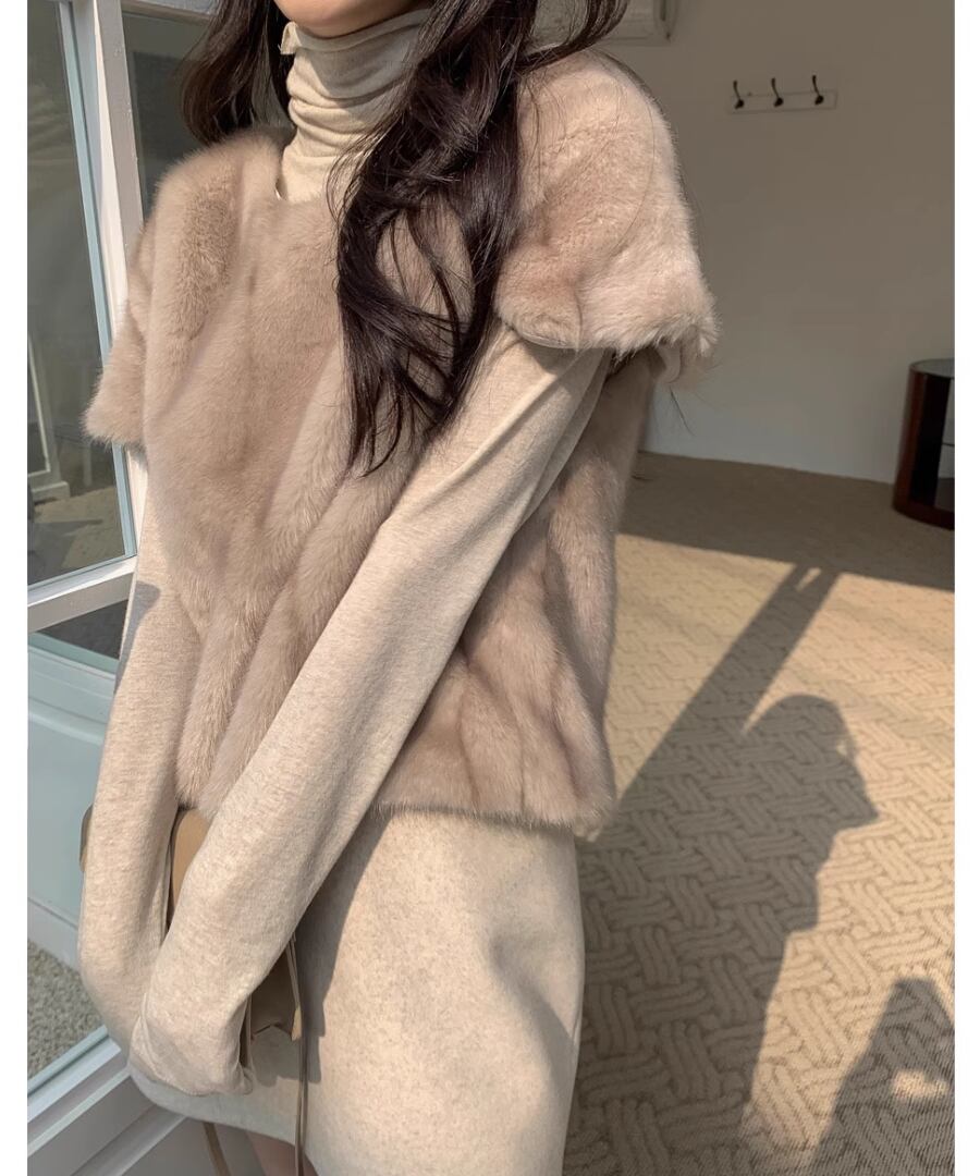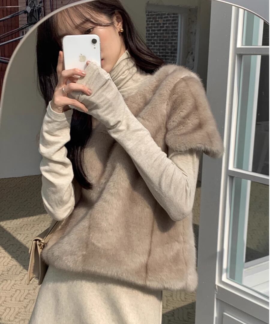柔らかなフェイクファー素材が肌に優しく、リッチな印象を与える一枚です。