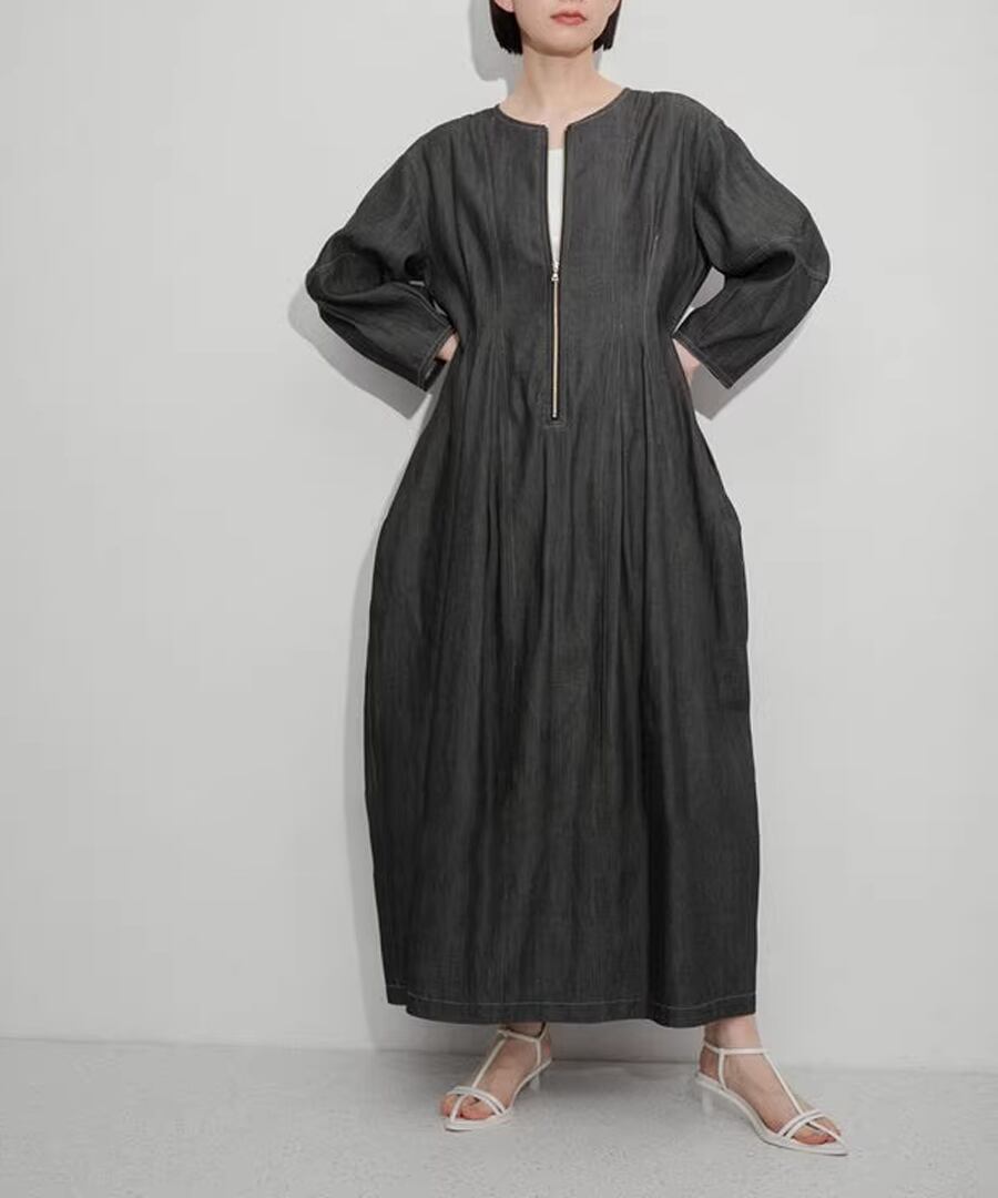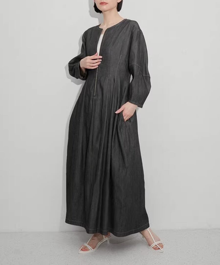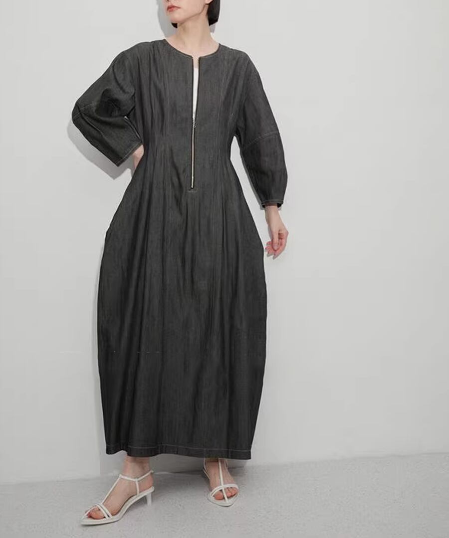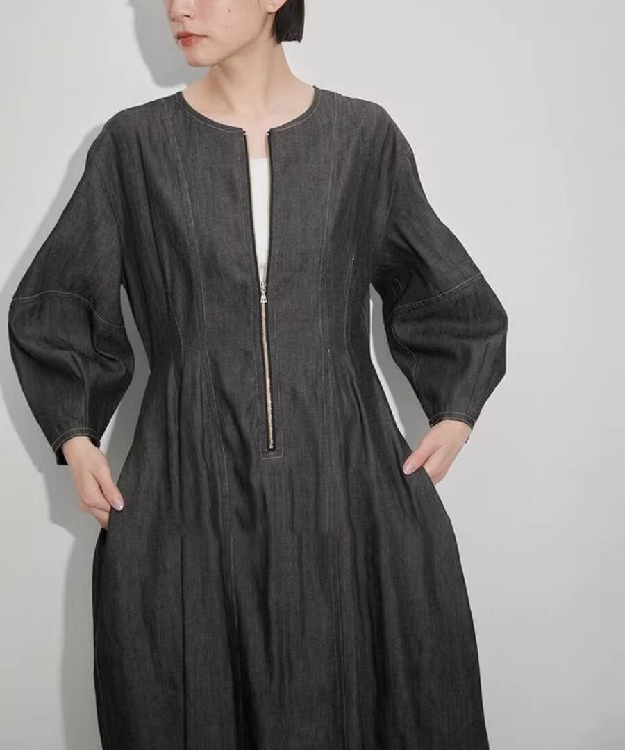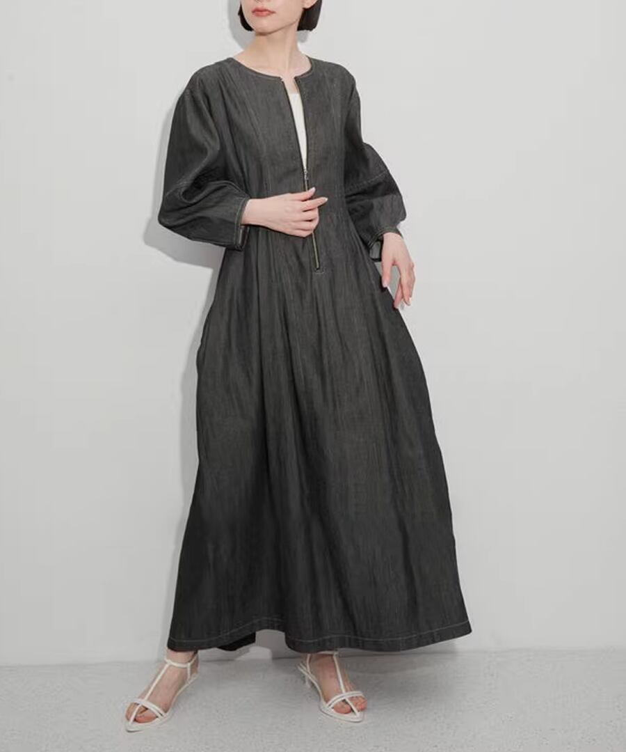 デニム生地◆ランタンスリーブワンピ【w-30416】