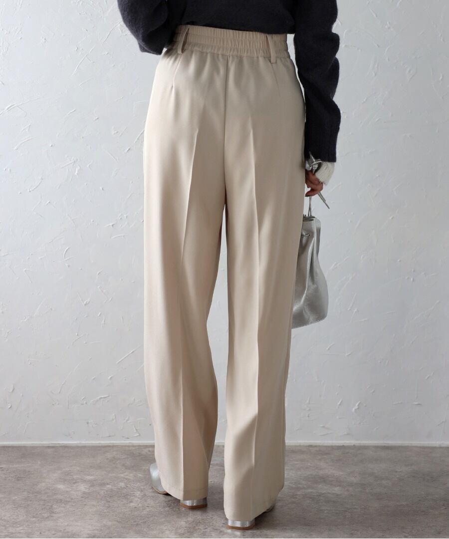 ハイウエストデザインで腰回りをスッキリ見せ、美しいシルエットを実現してくれる大人パンツ。