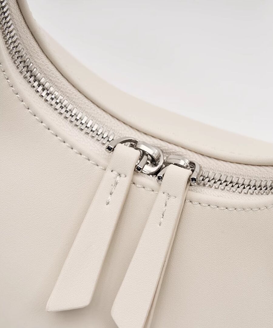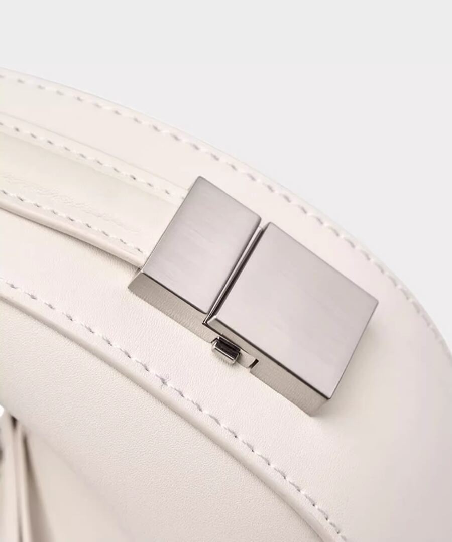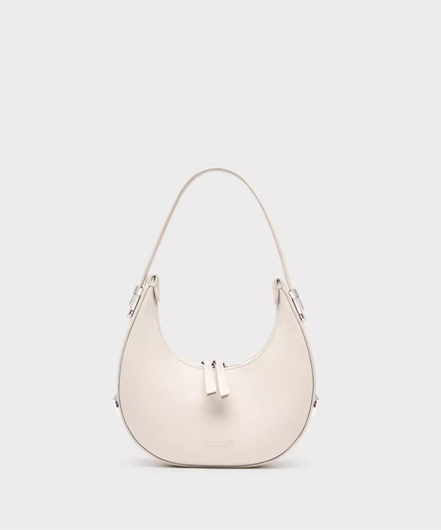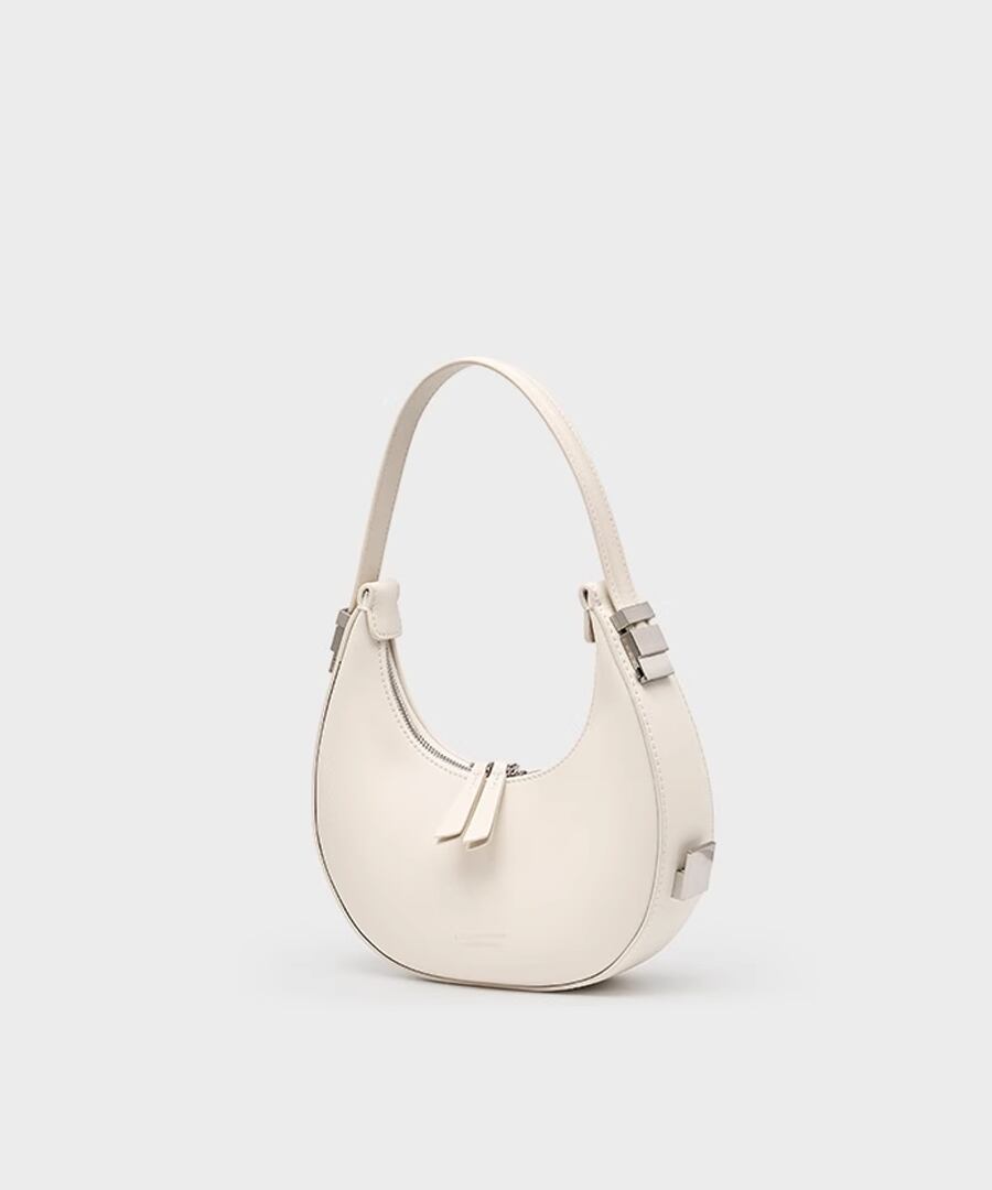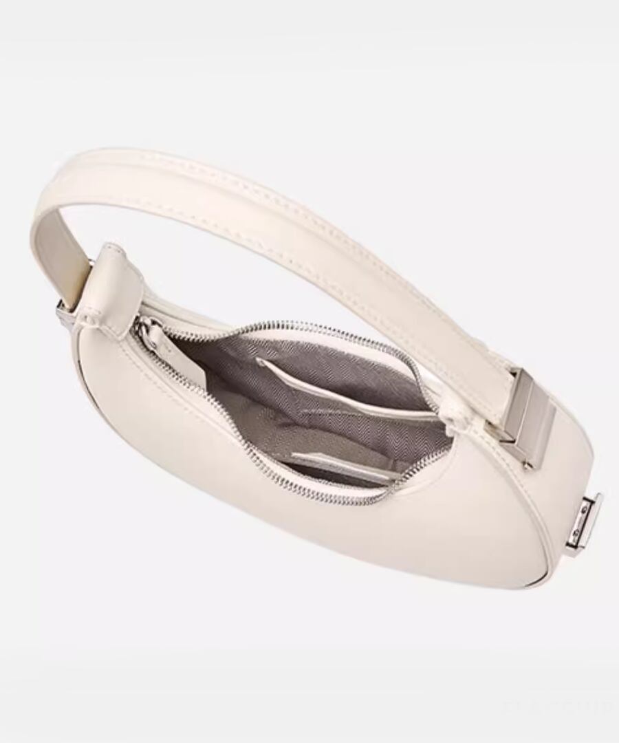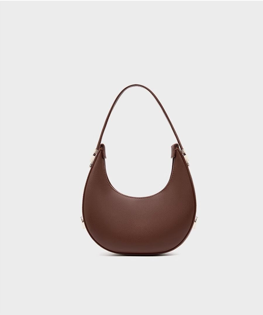 エレガントな雰囲気を演出するハーフムーンデザインのハンドバッグ。