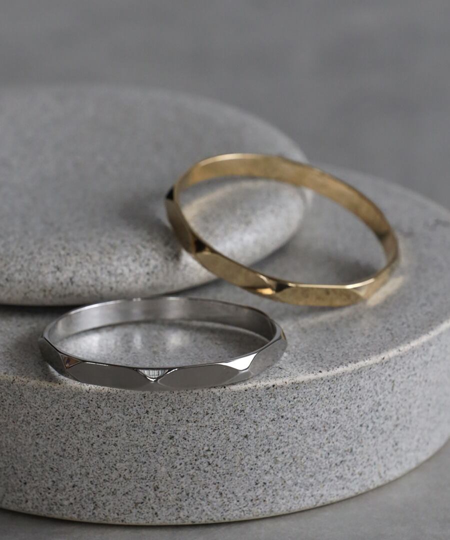 シンプルなのに個性的、キラリと輝くカットデザインバングル