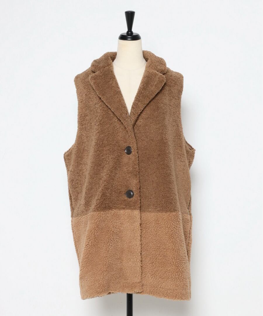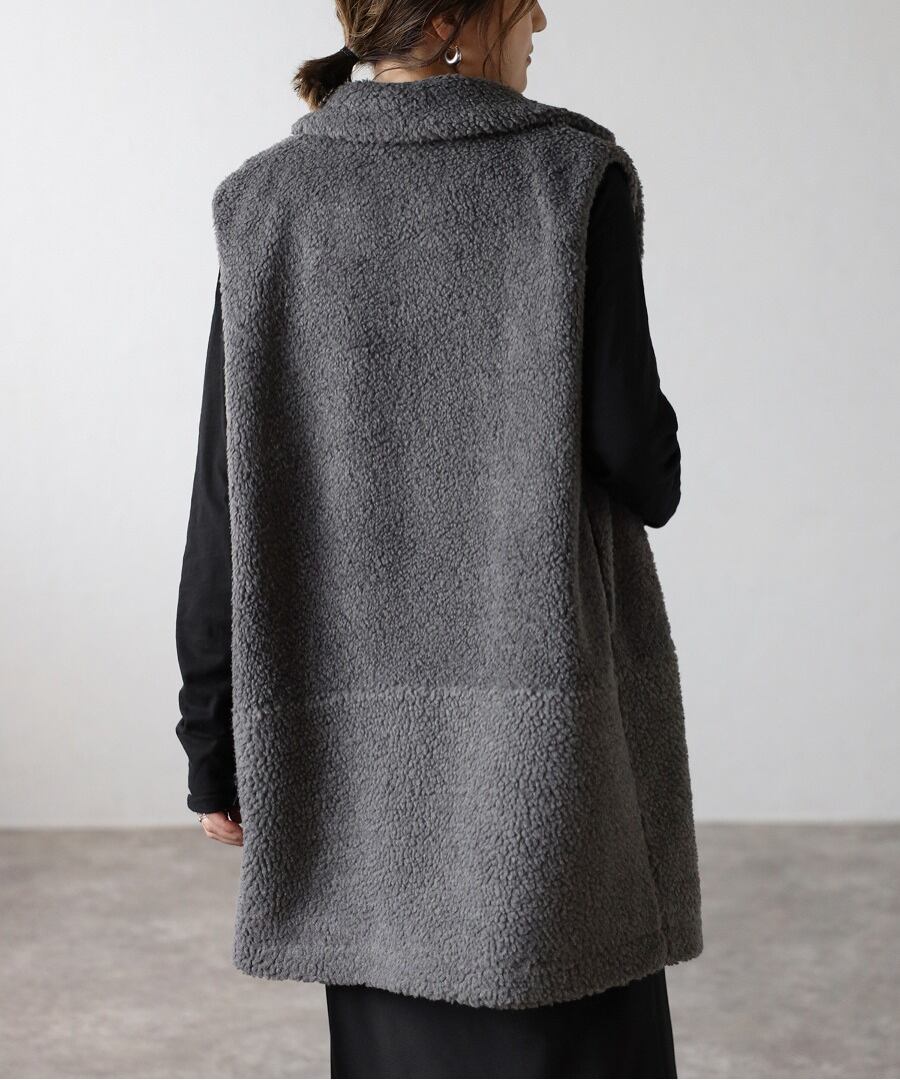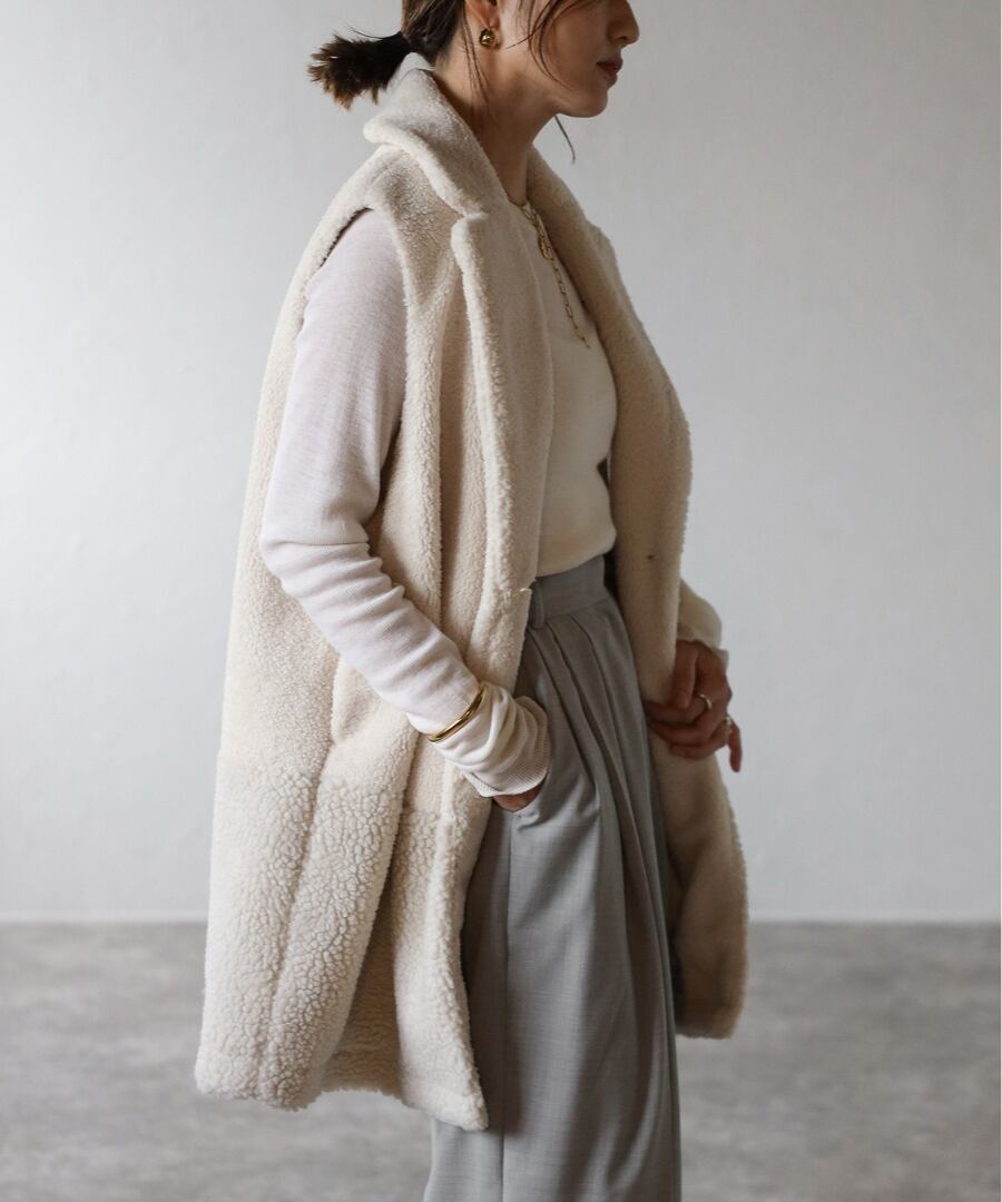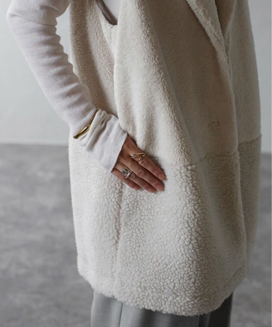 軽くて暖かいボア素材を使用した、季節の変わり目にぴったりのベスト。