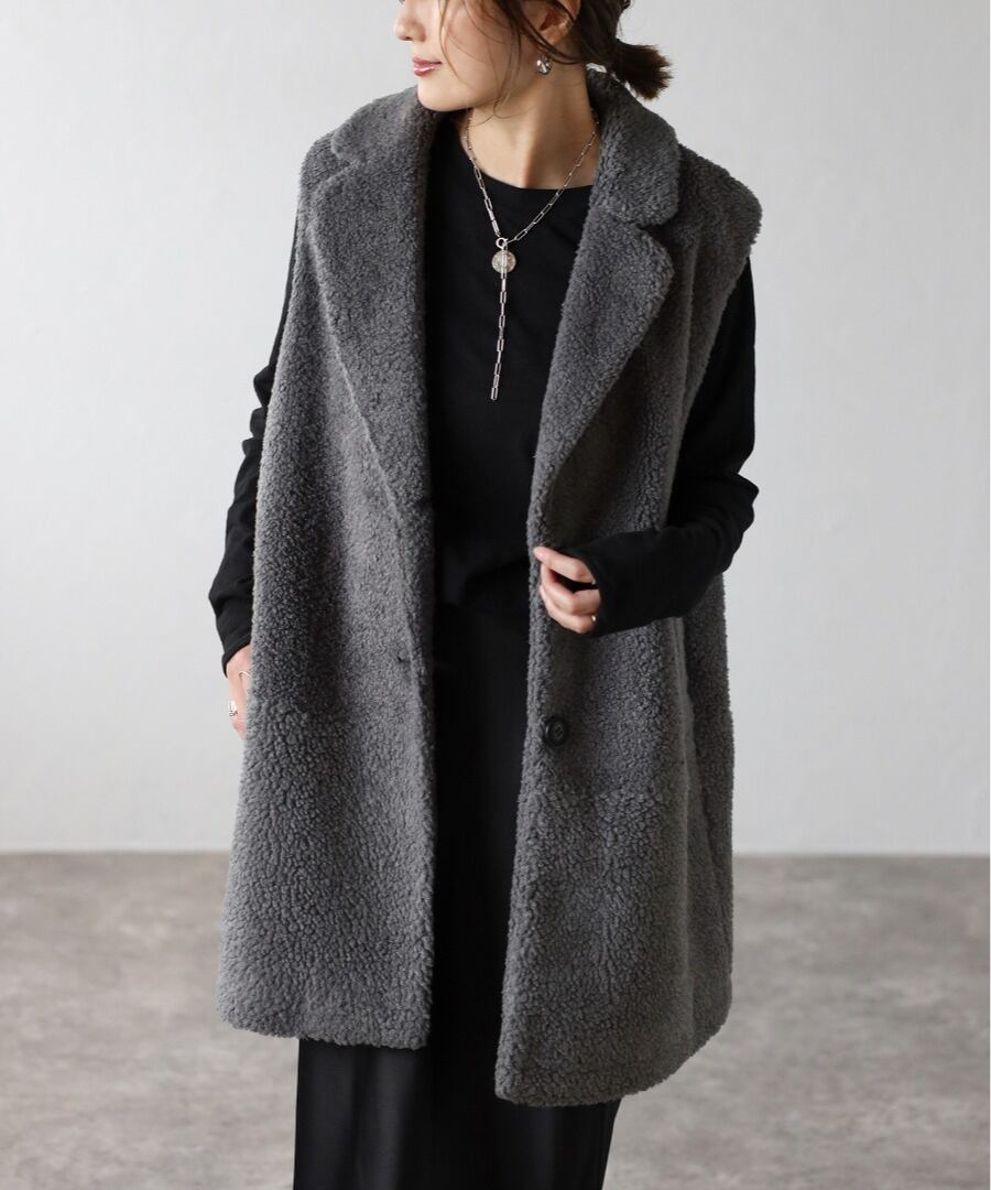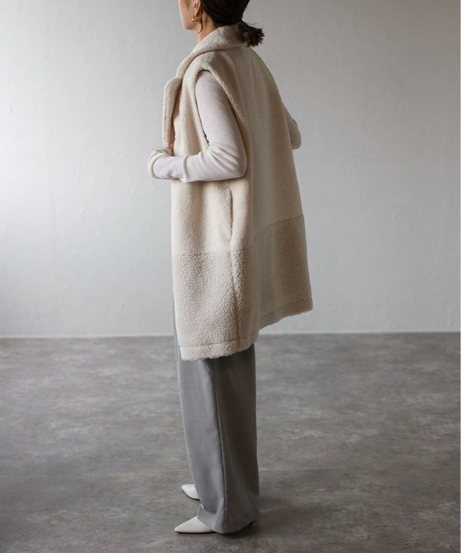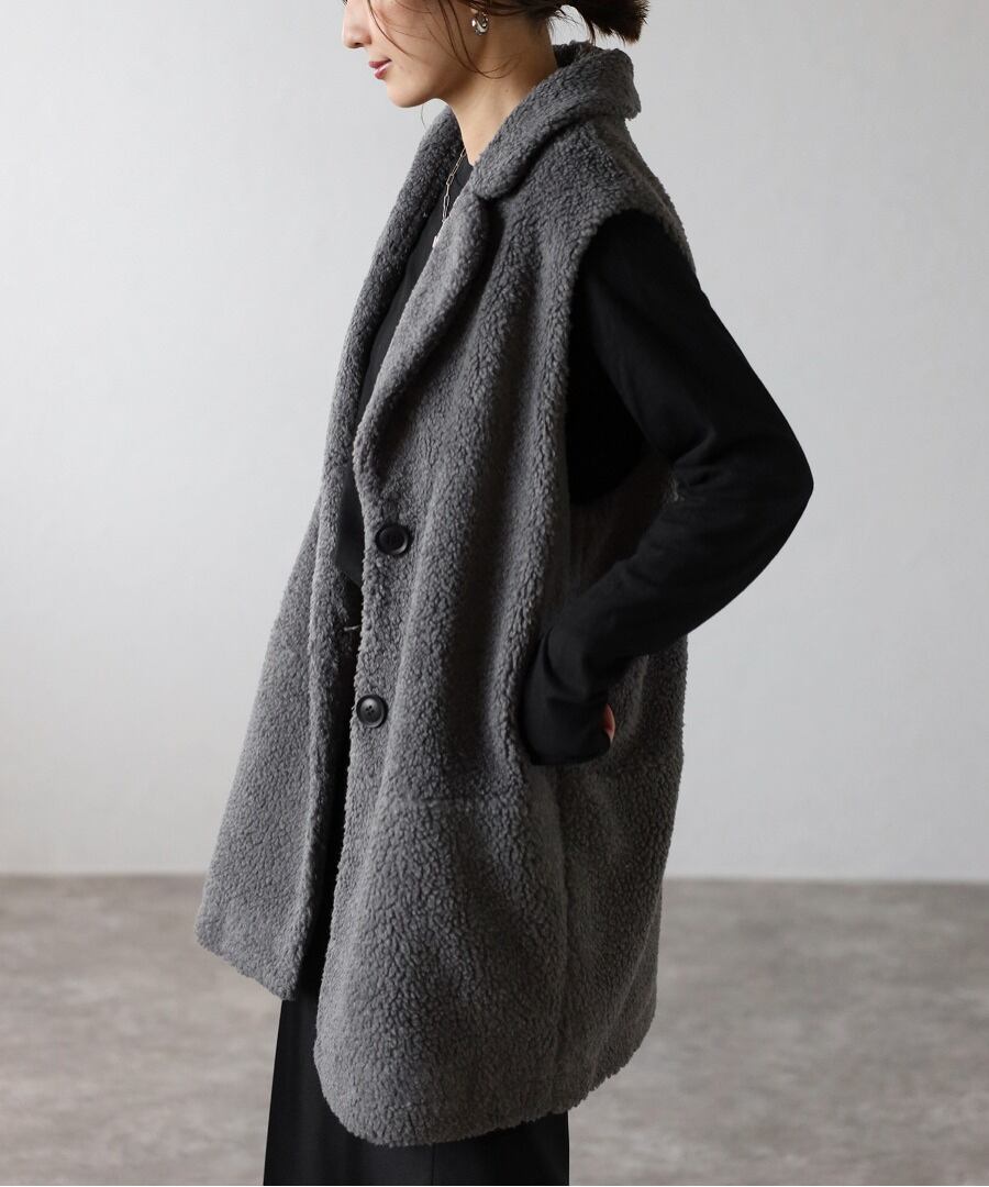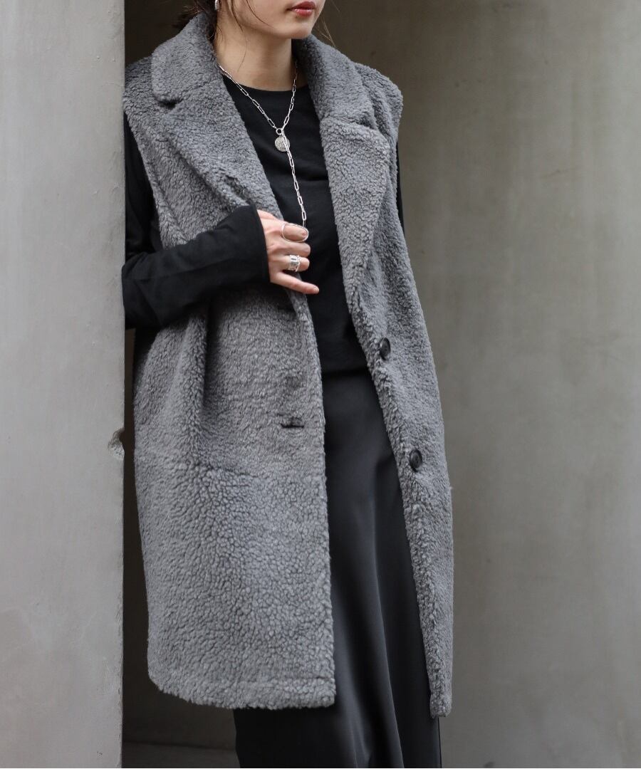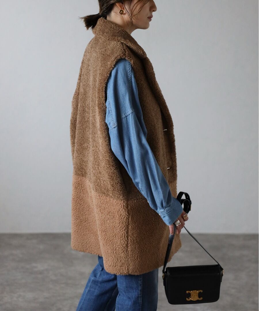 軽くて暖かいボア素材を使用した、季節の変わり目にぴったりのベスト。