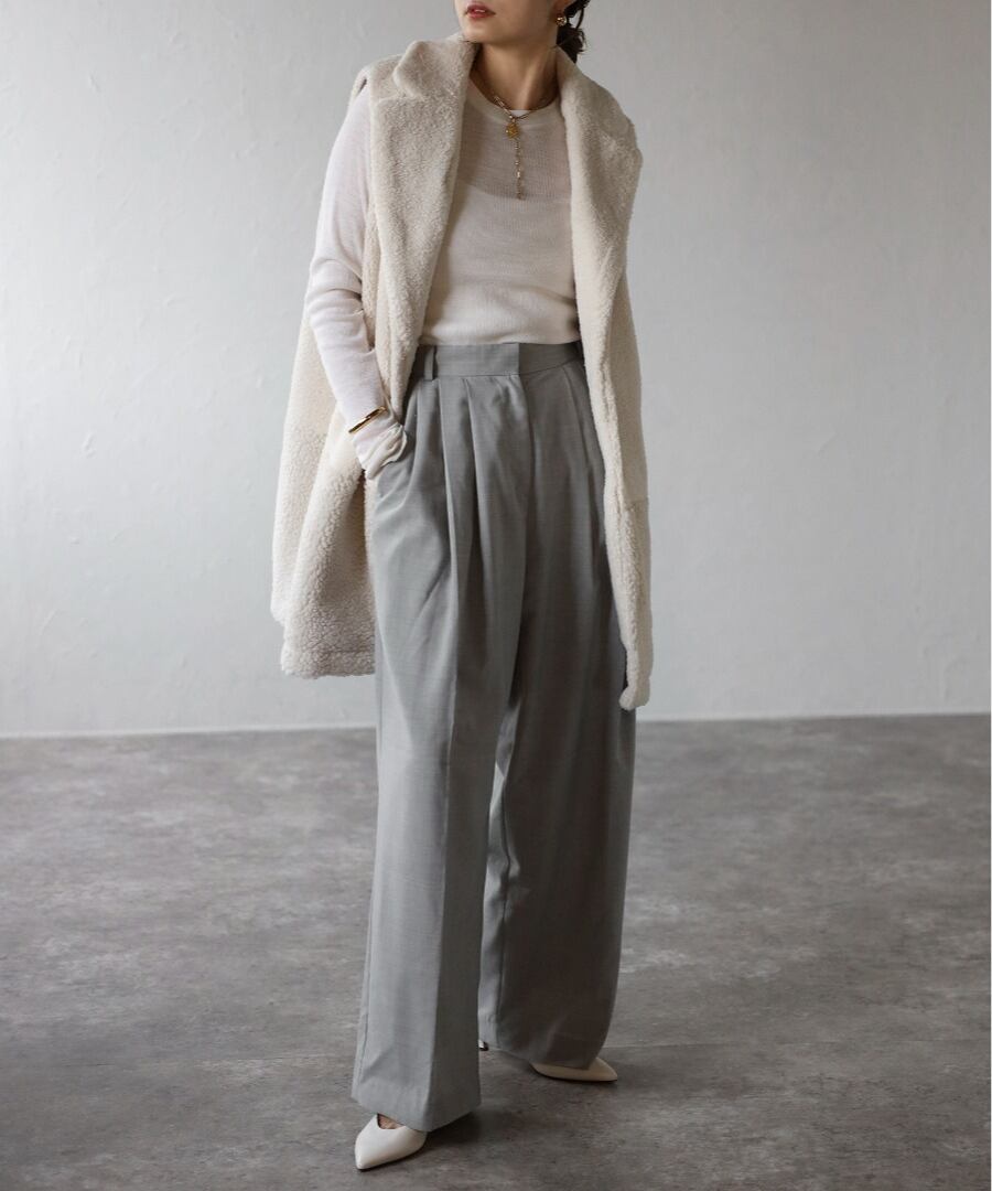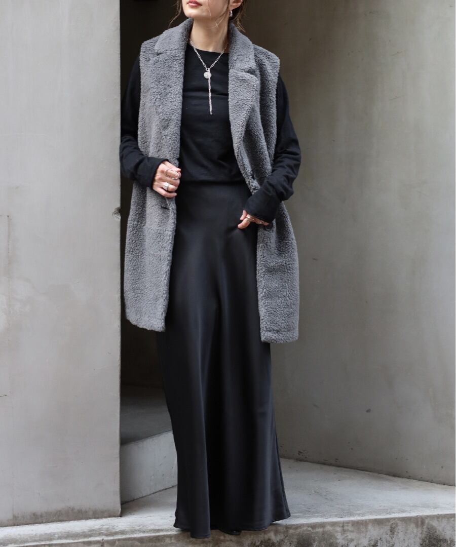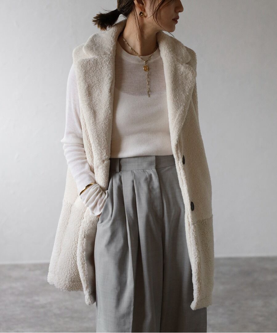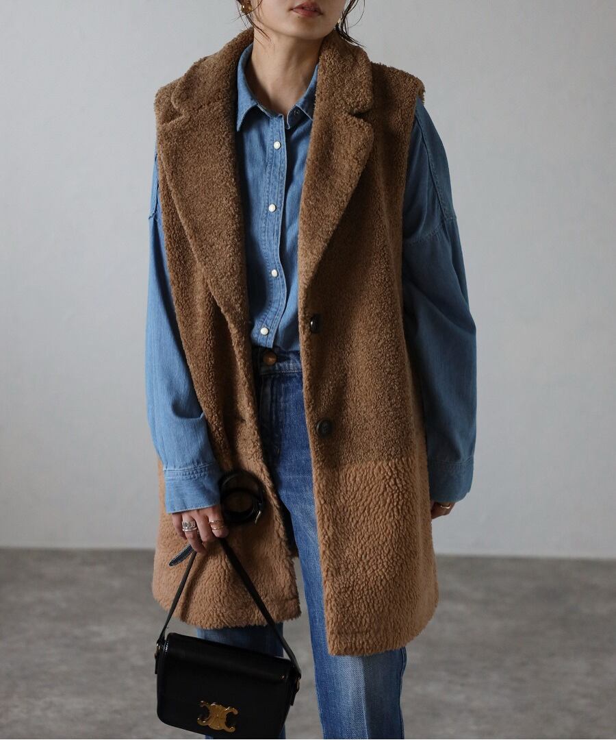 軽くて暖かいボア素材を使用した、季節の変わり目にぴったりのベスト。