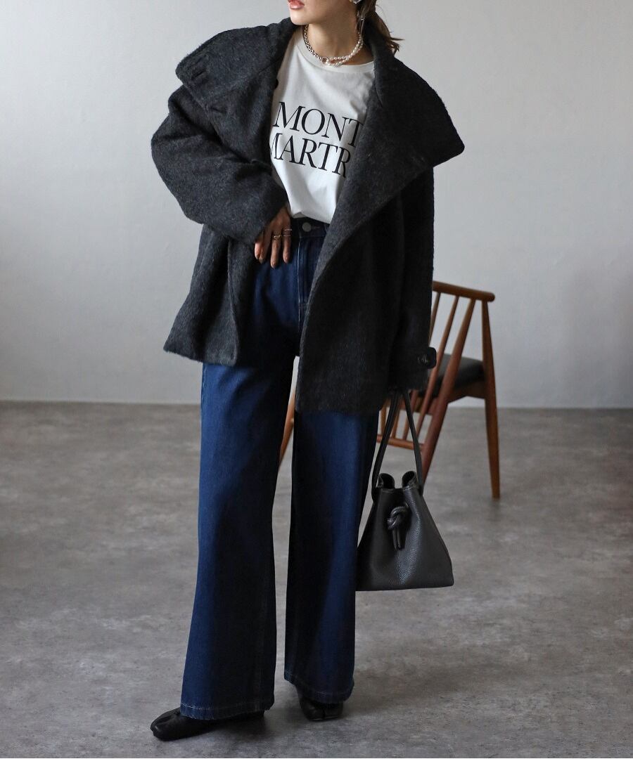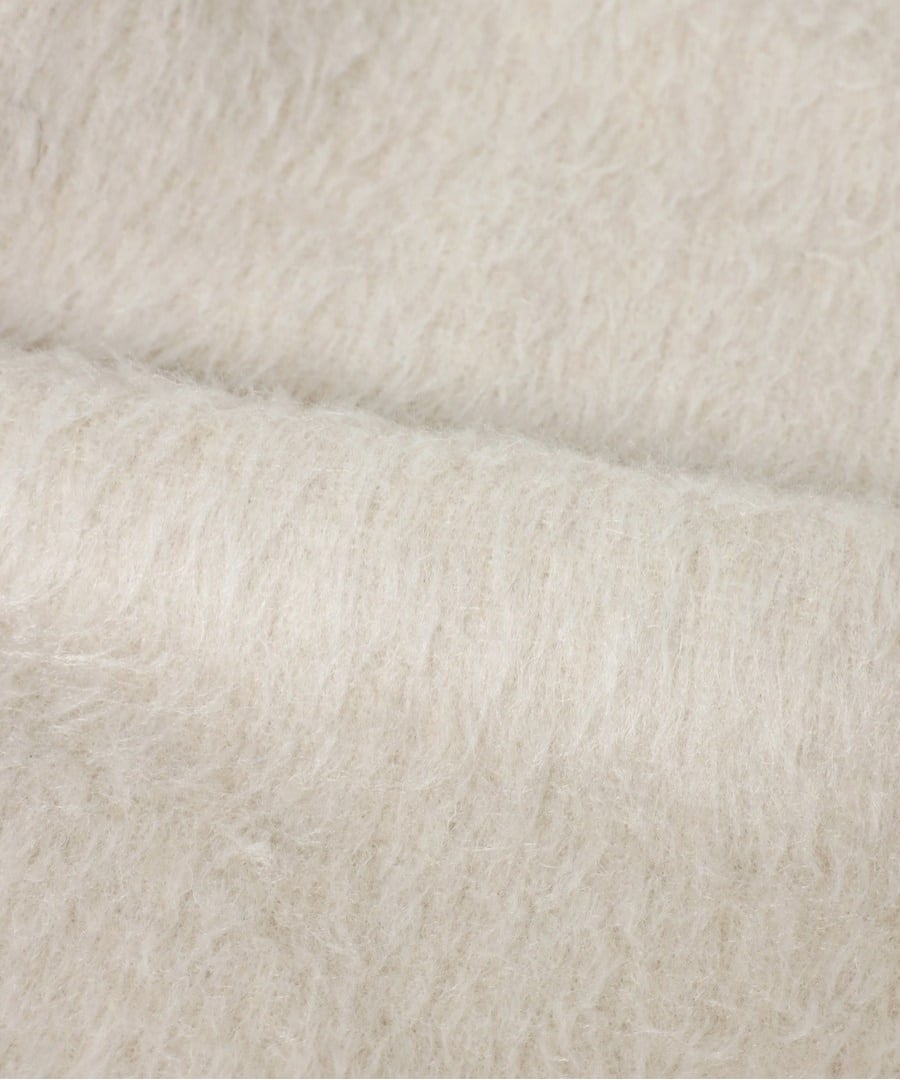 ビッグシルエットで様々なアイテムと相性がよく、トレンドのシャギー素材がおしゃれに高見えします。