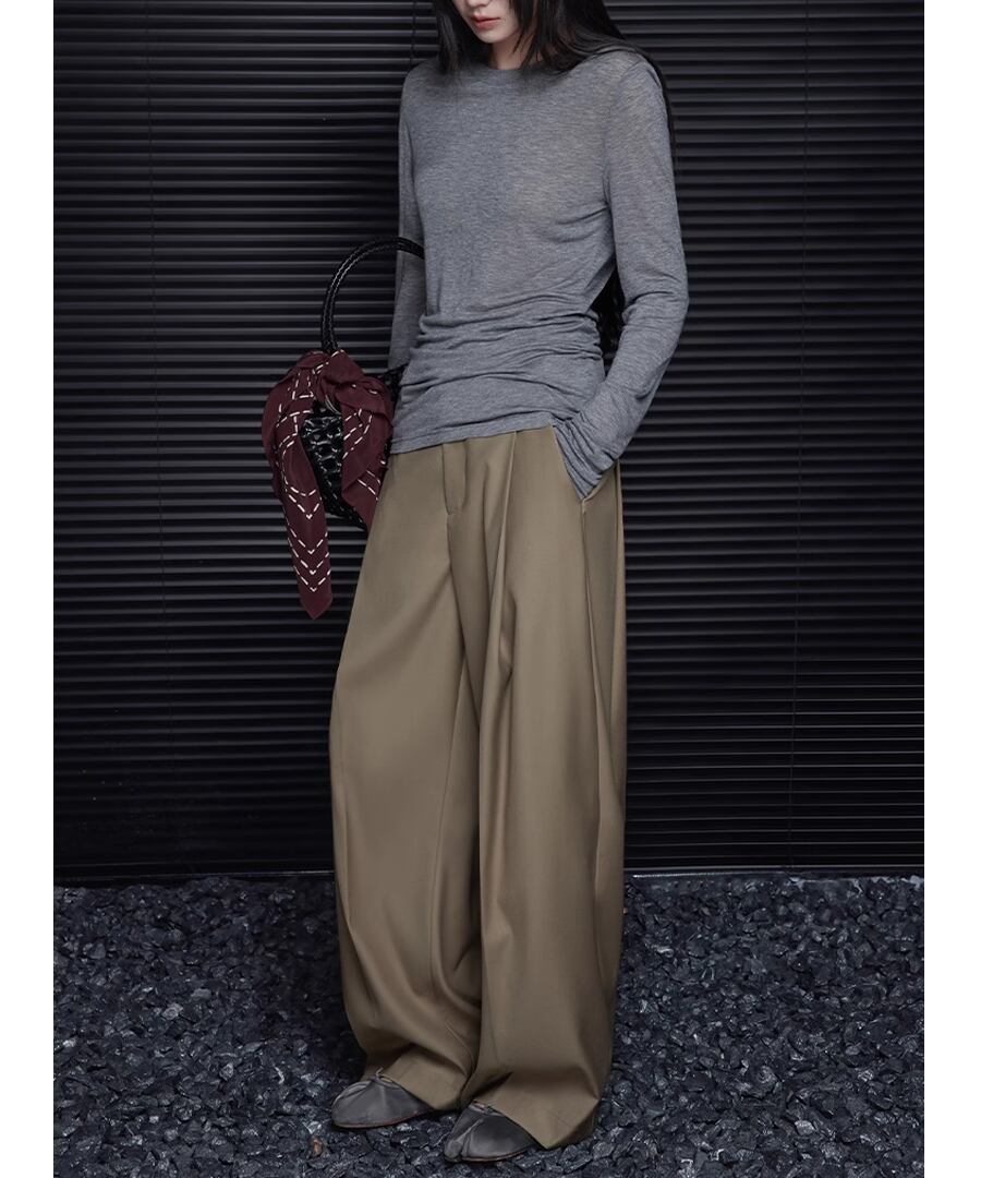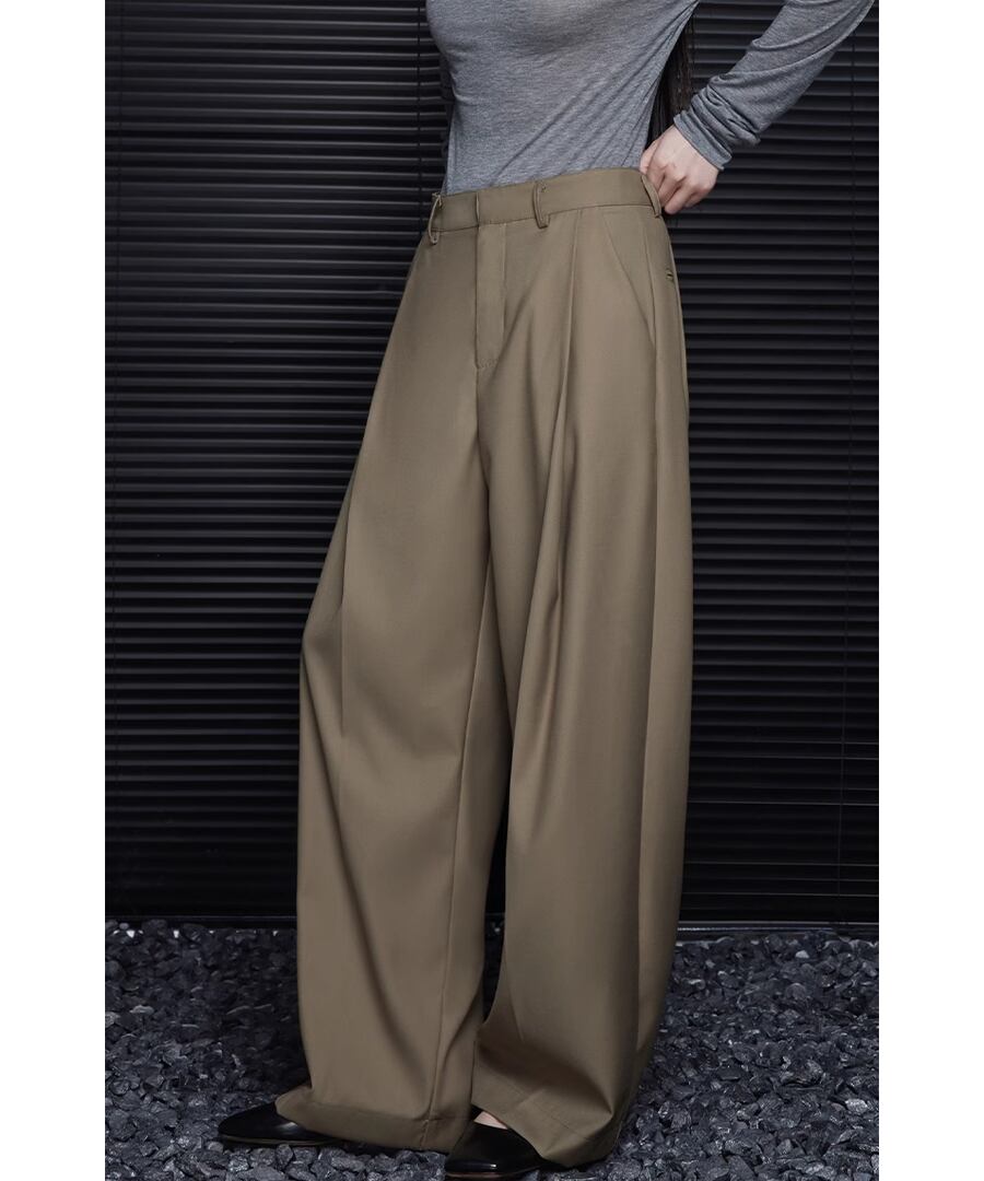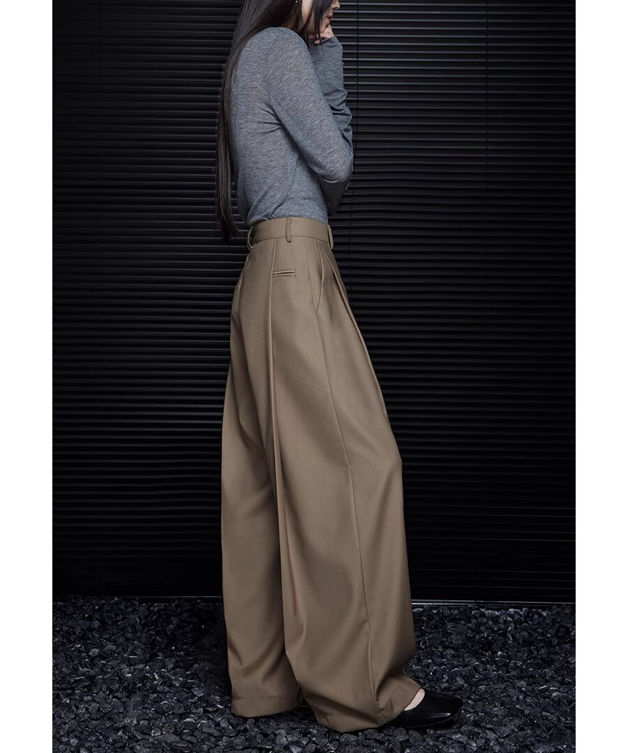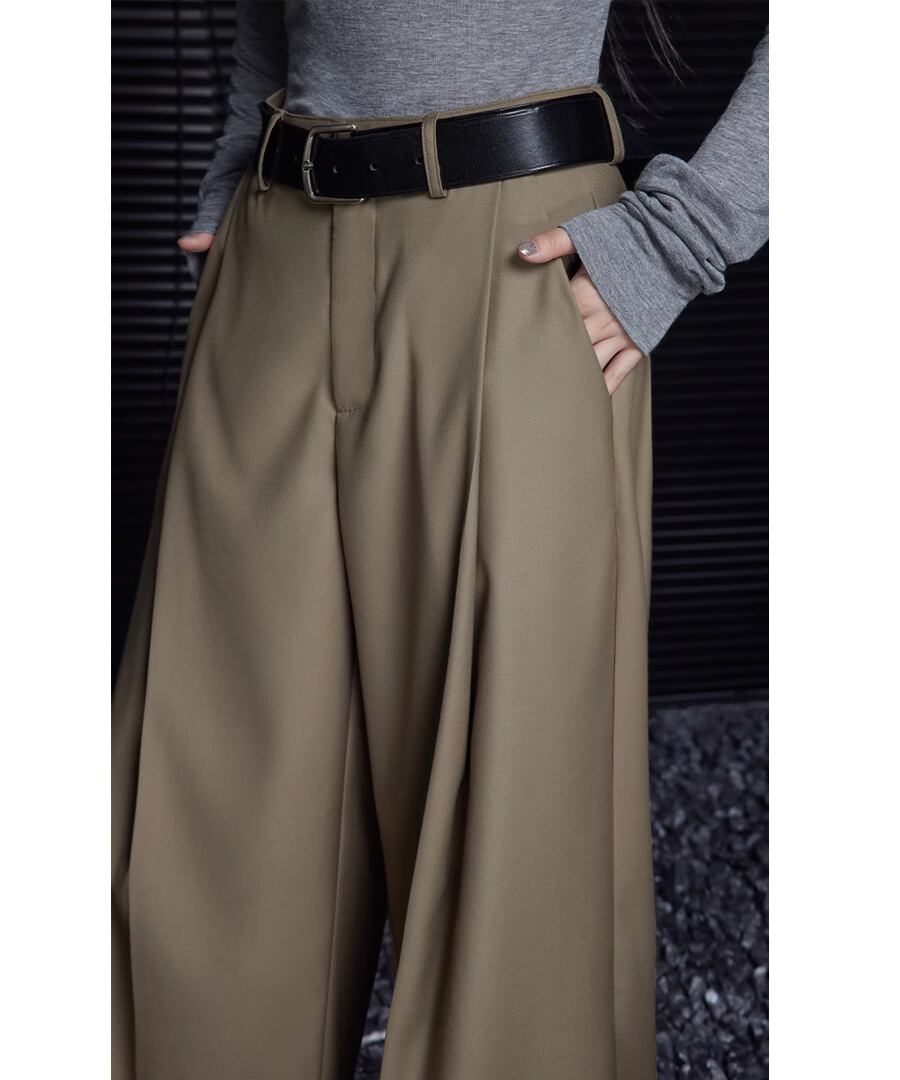 カーキハイウエスト◆ワイドレッグパンツ【p-20286】