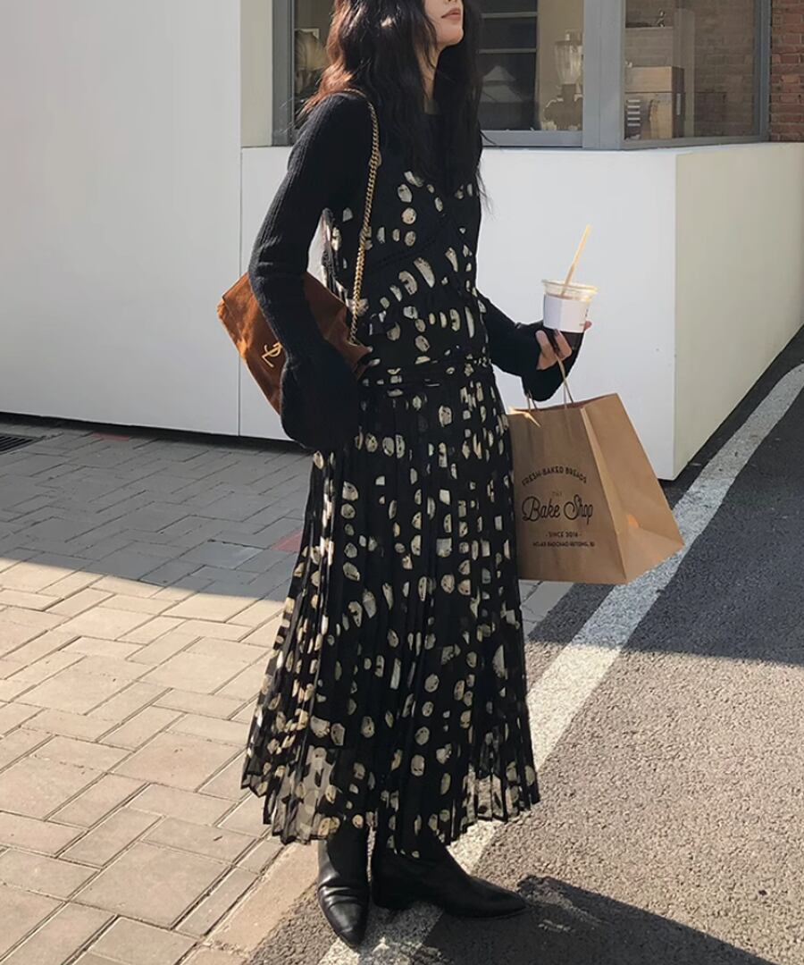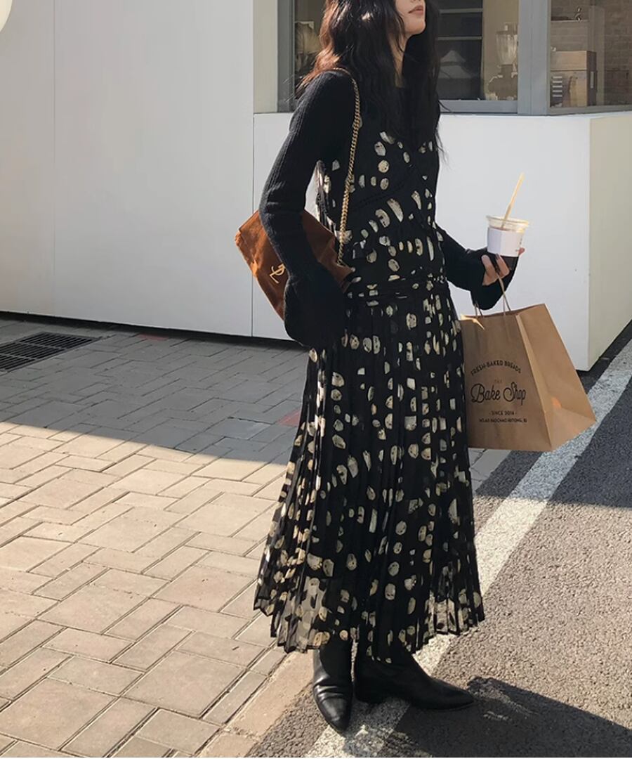 不規則なコントラストカラーの水玉模様がシンプルながらもおしゃれ。