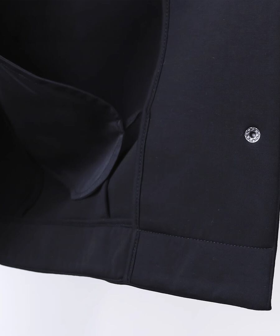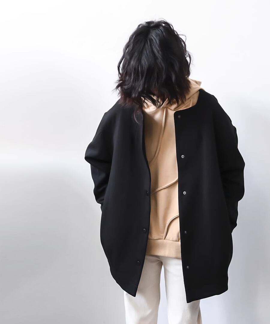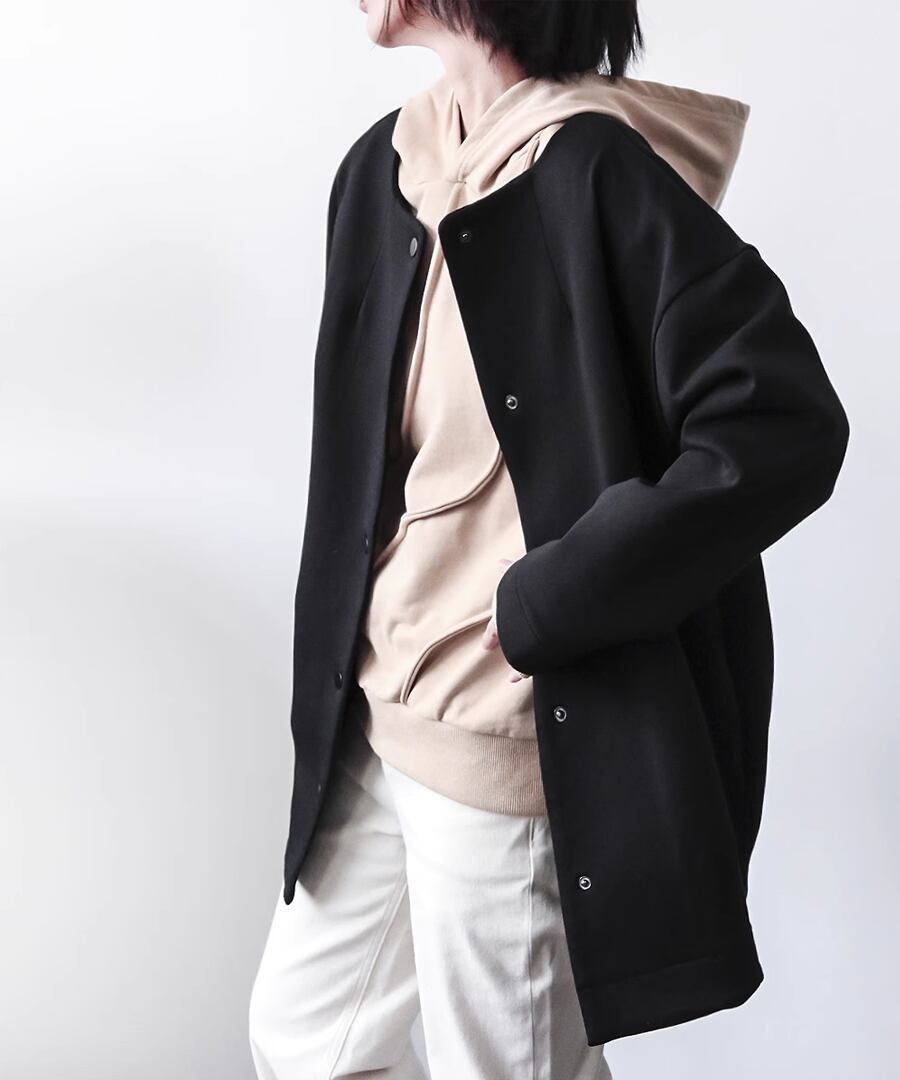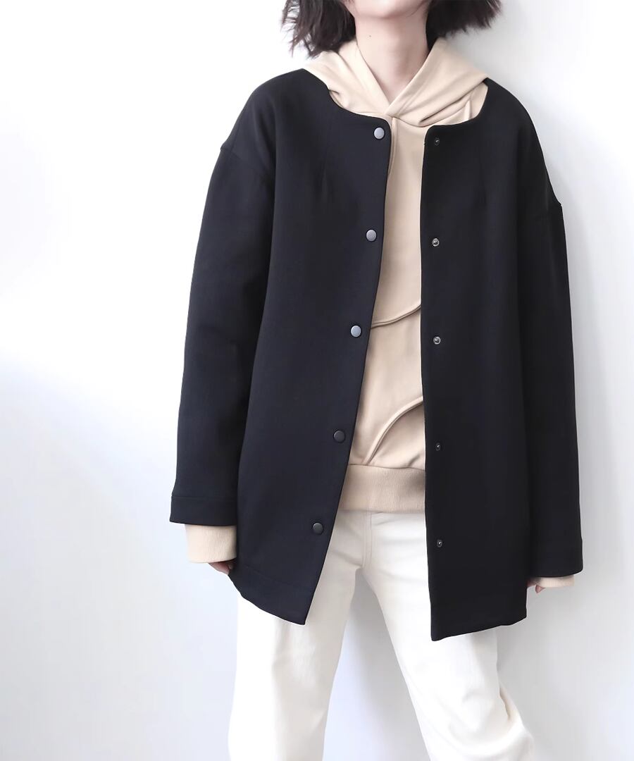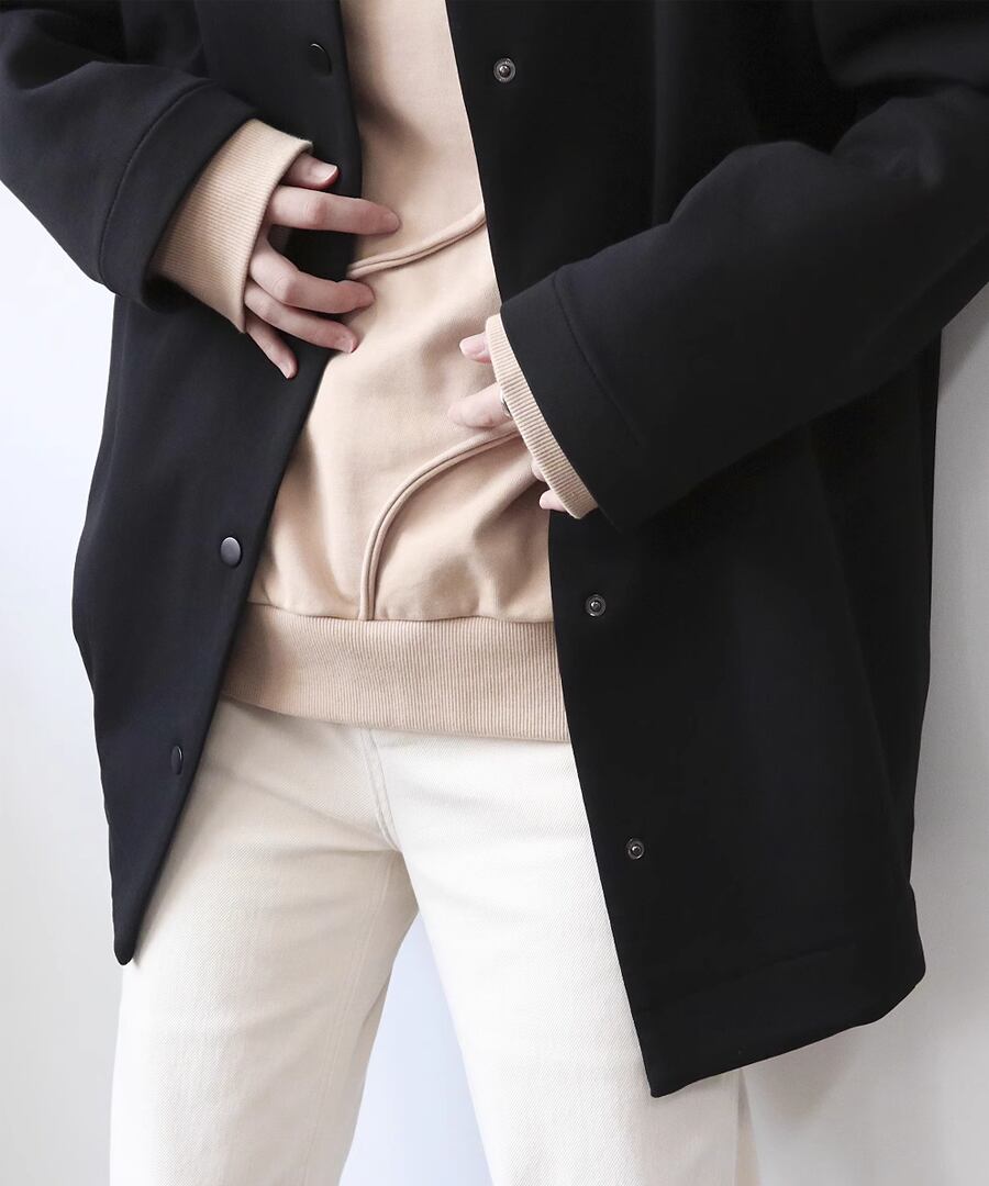ラウンドネックデザインのシンプルなジャケット。
