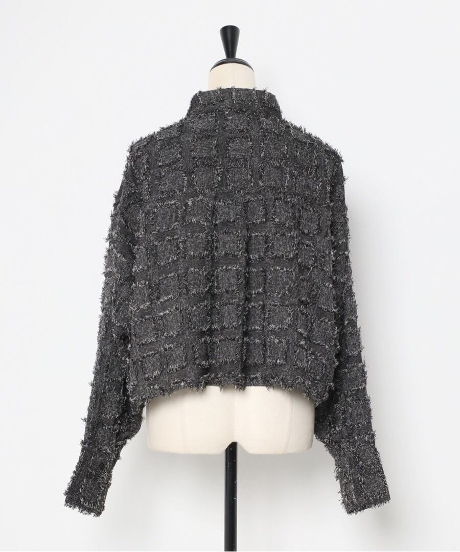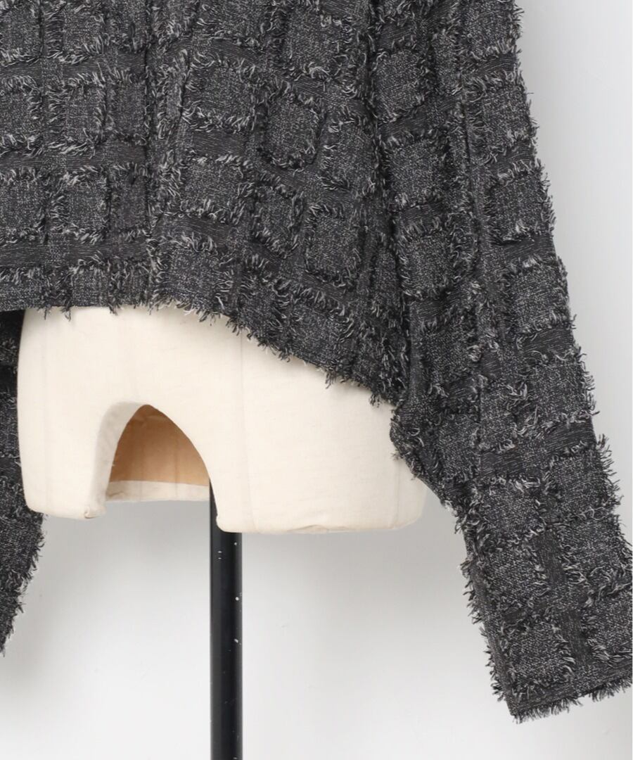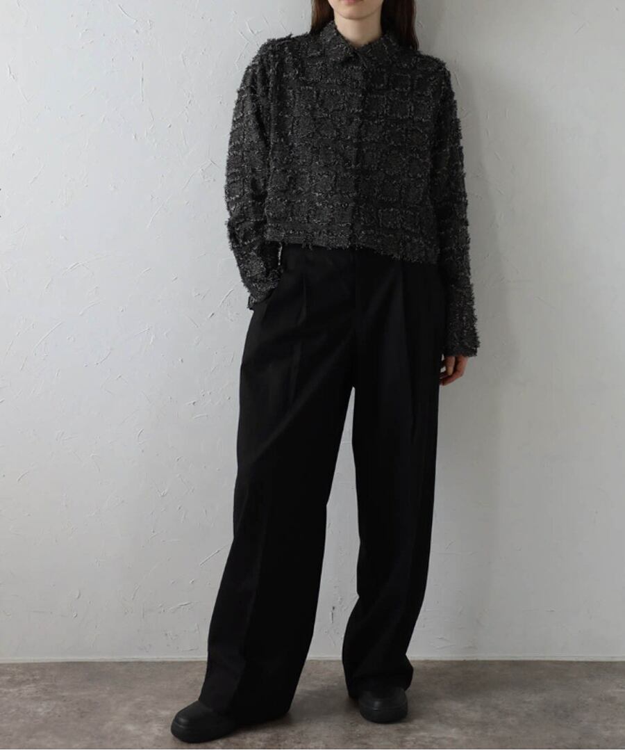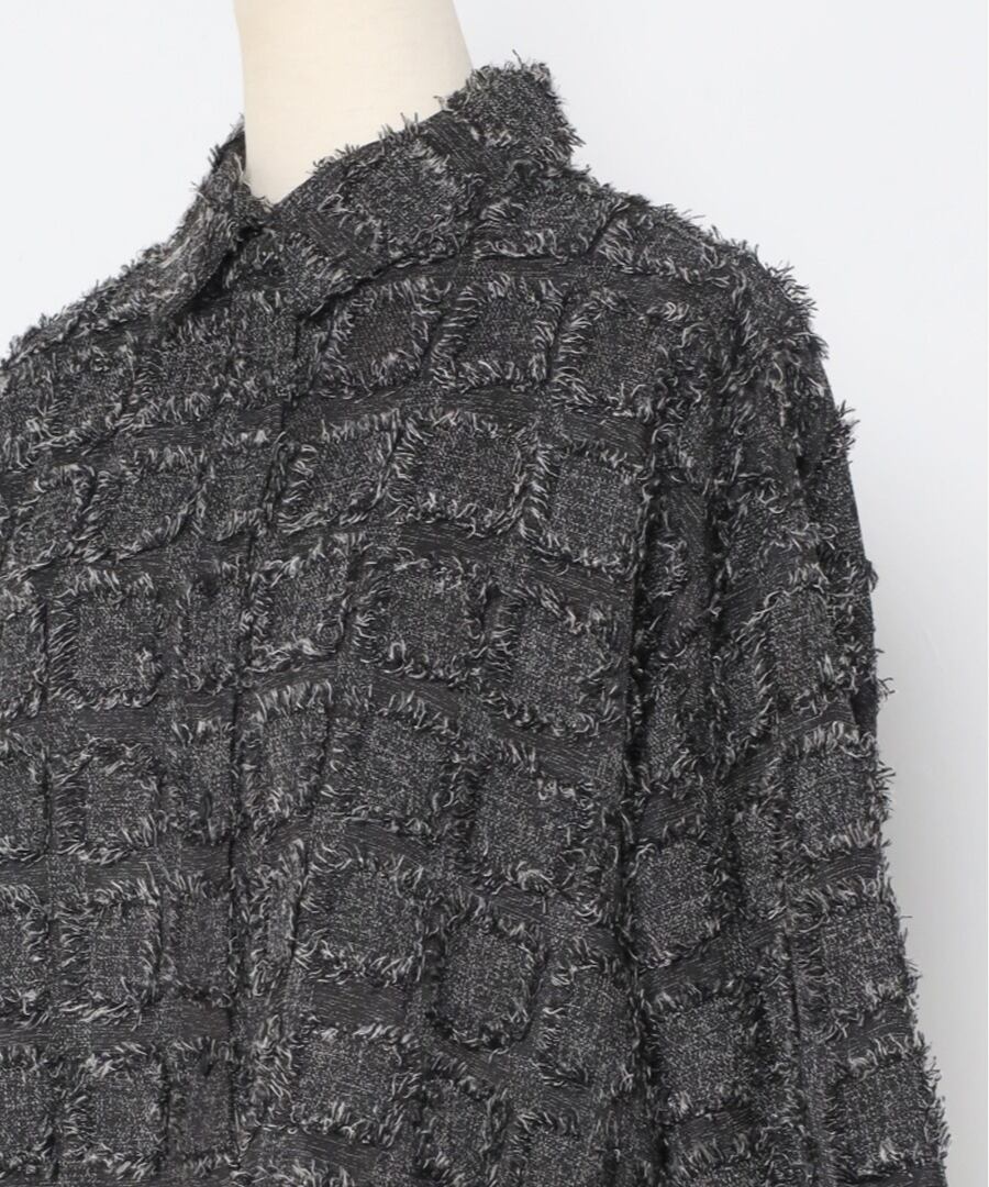 モード感溢れるデザインが魅力の、フリンジ素材が目を惹くクロップドシャツ。