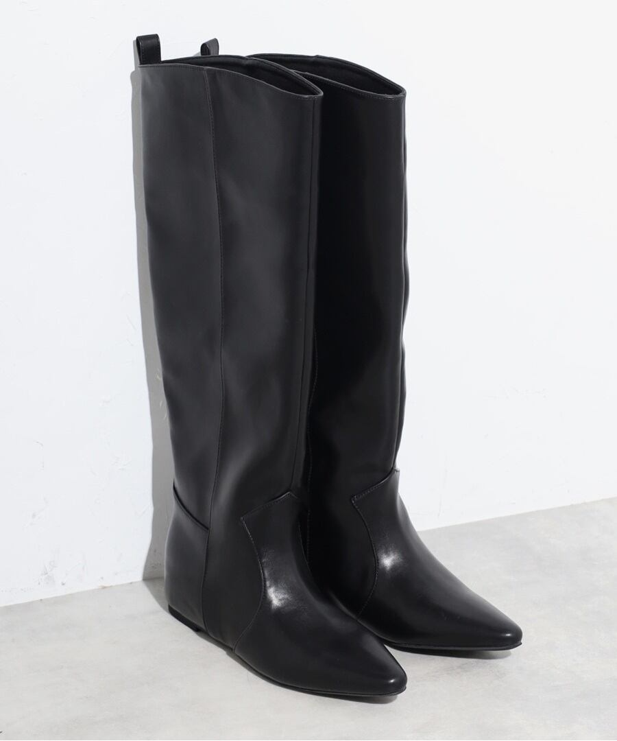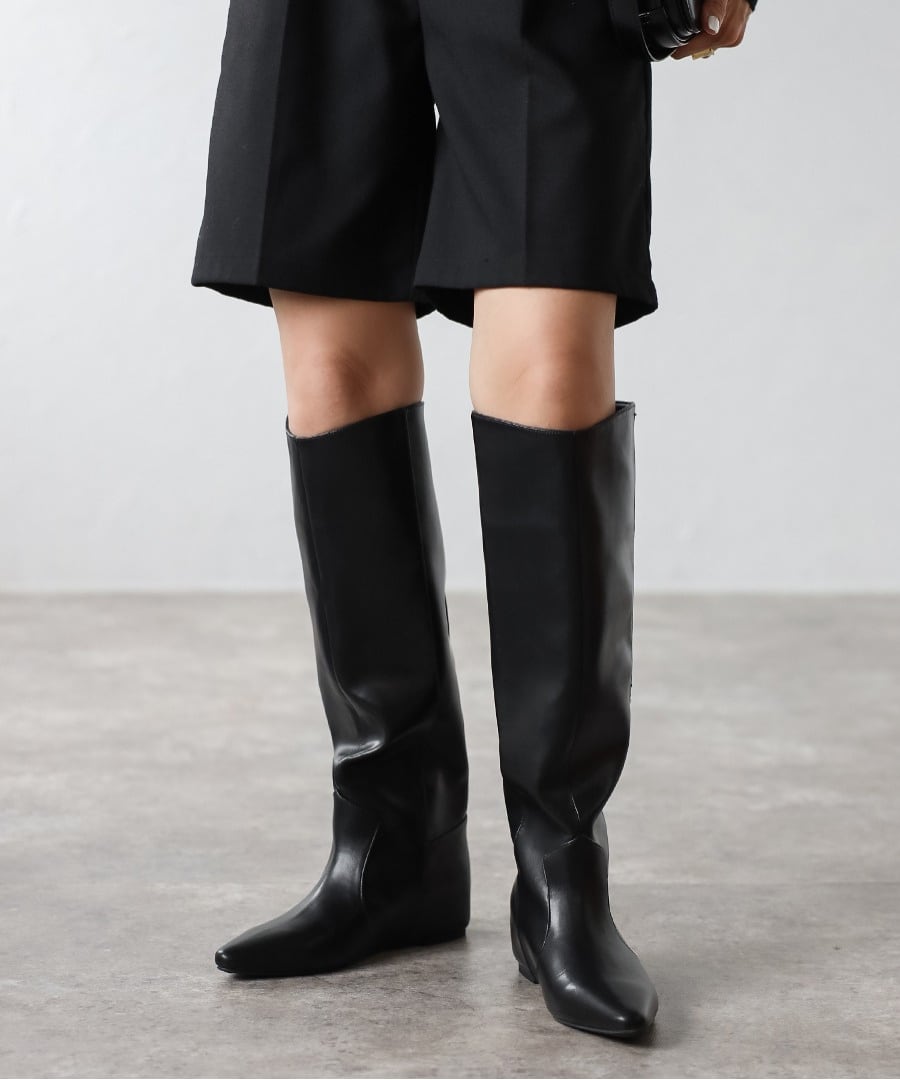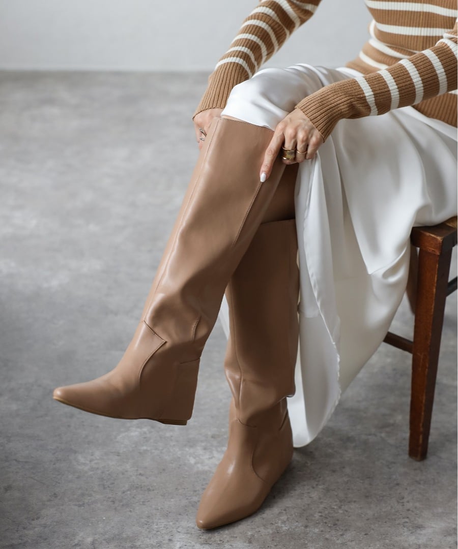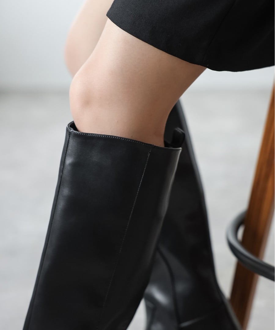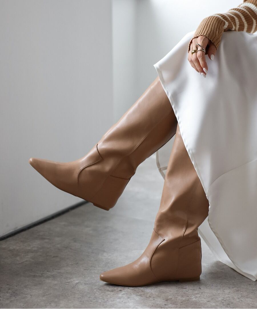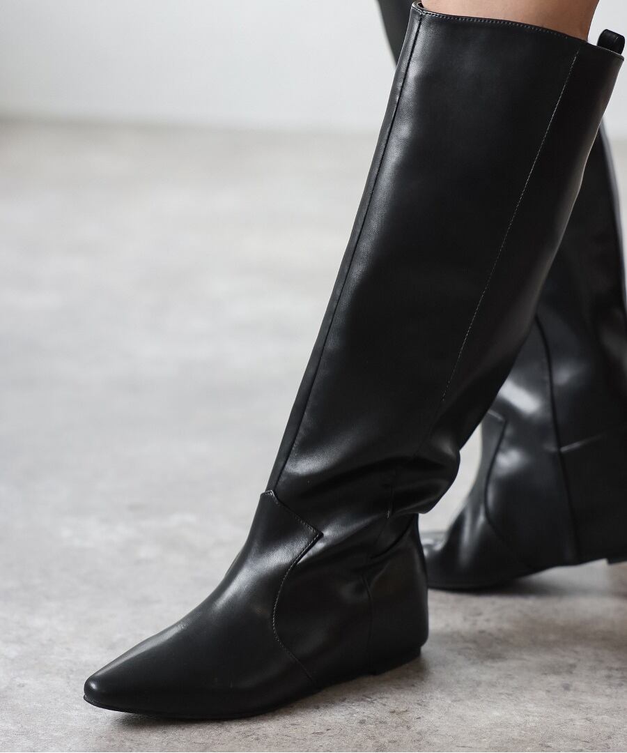 シンプルな美しさとスタイルアップを叶えるインヒールロングブーツ