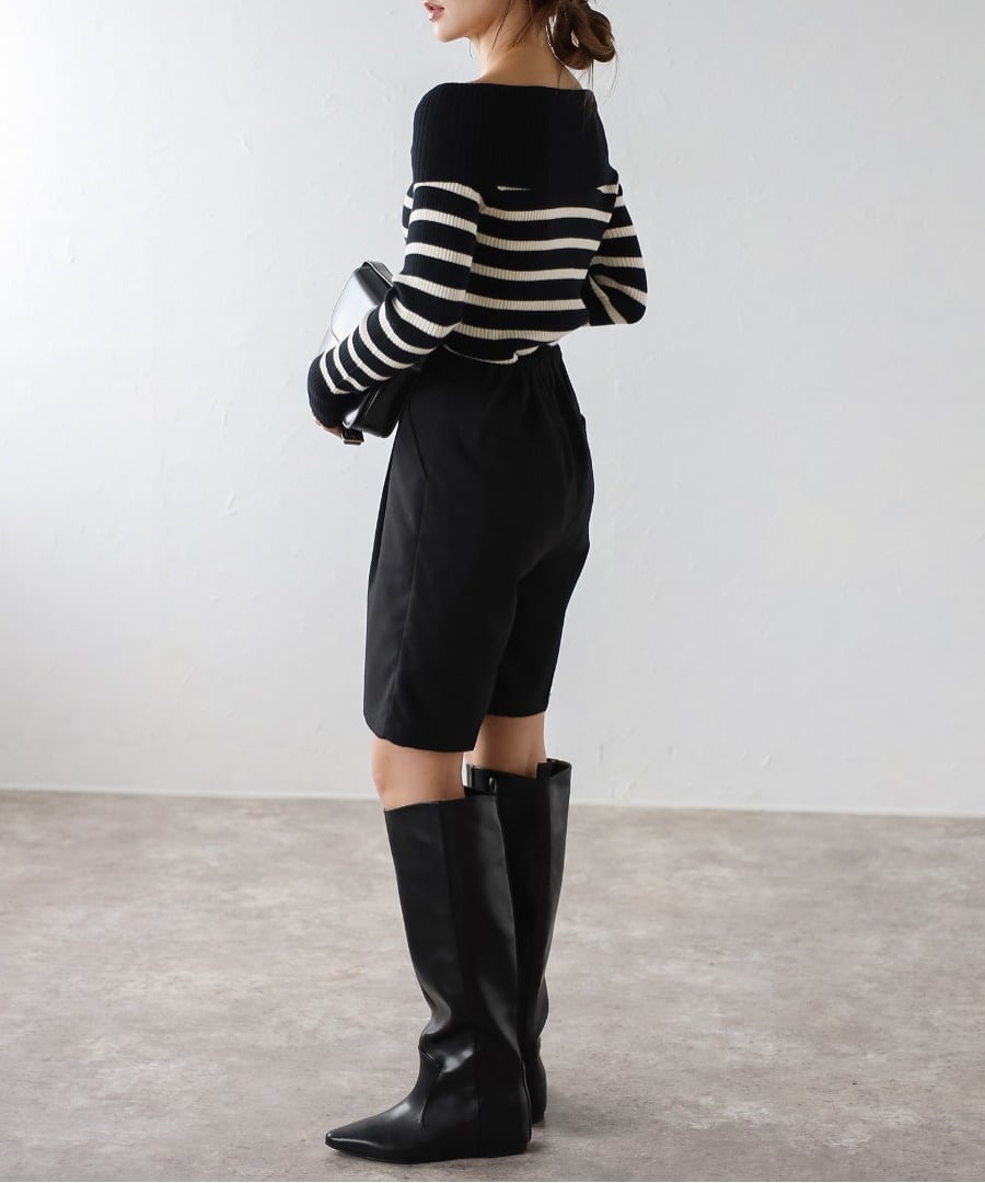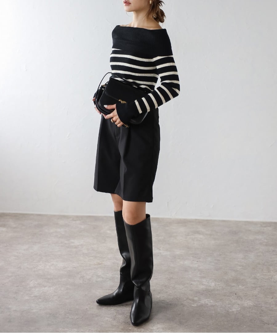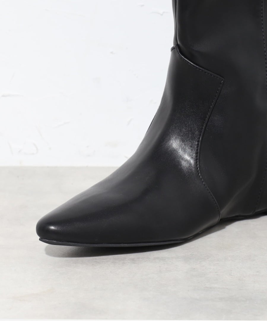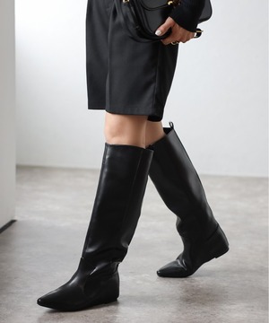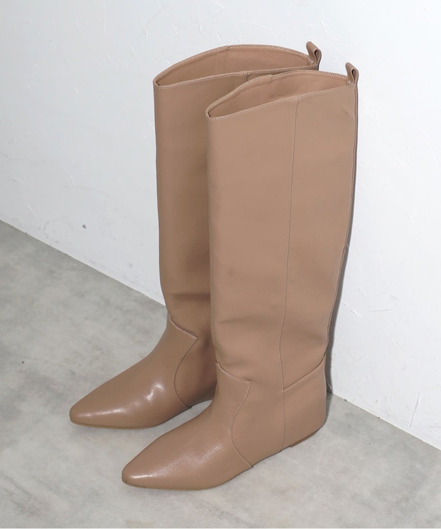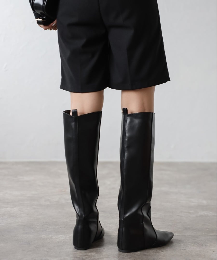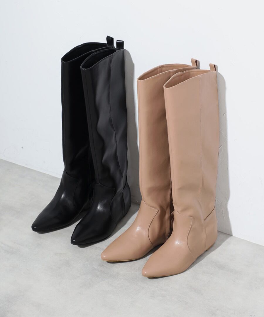 シンプルな美しさとスタイルアップを叶えるインヒールロングブーツ