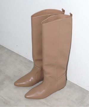シンプルながら洗練されたデザインが魅力のインヒールロングブーツ。