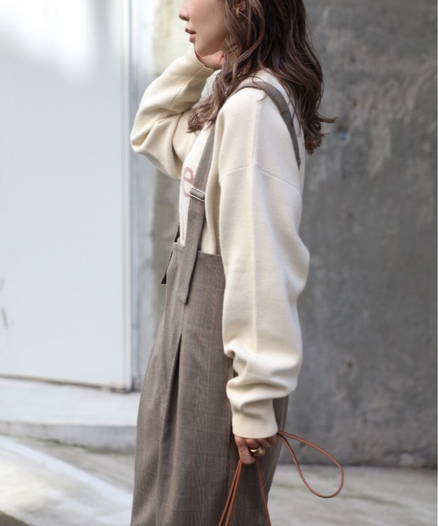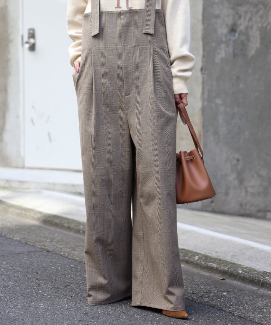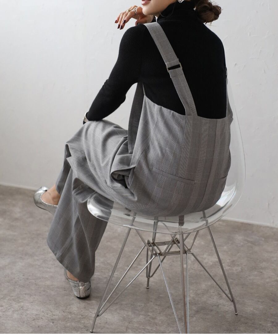 トレンド感あふれるチェック柄が目を惹くハイウエストサロペット。