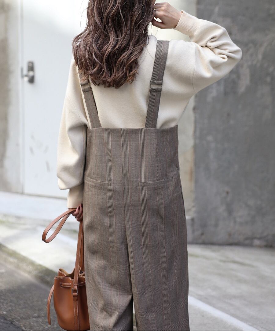 チェック柄ハイウエストサロペット【p-20087】.