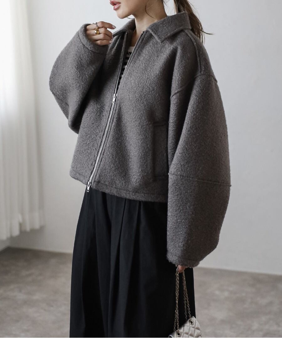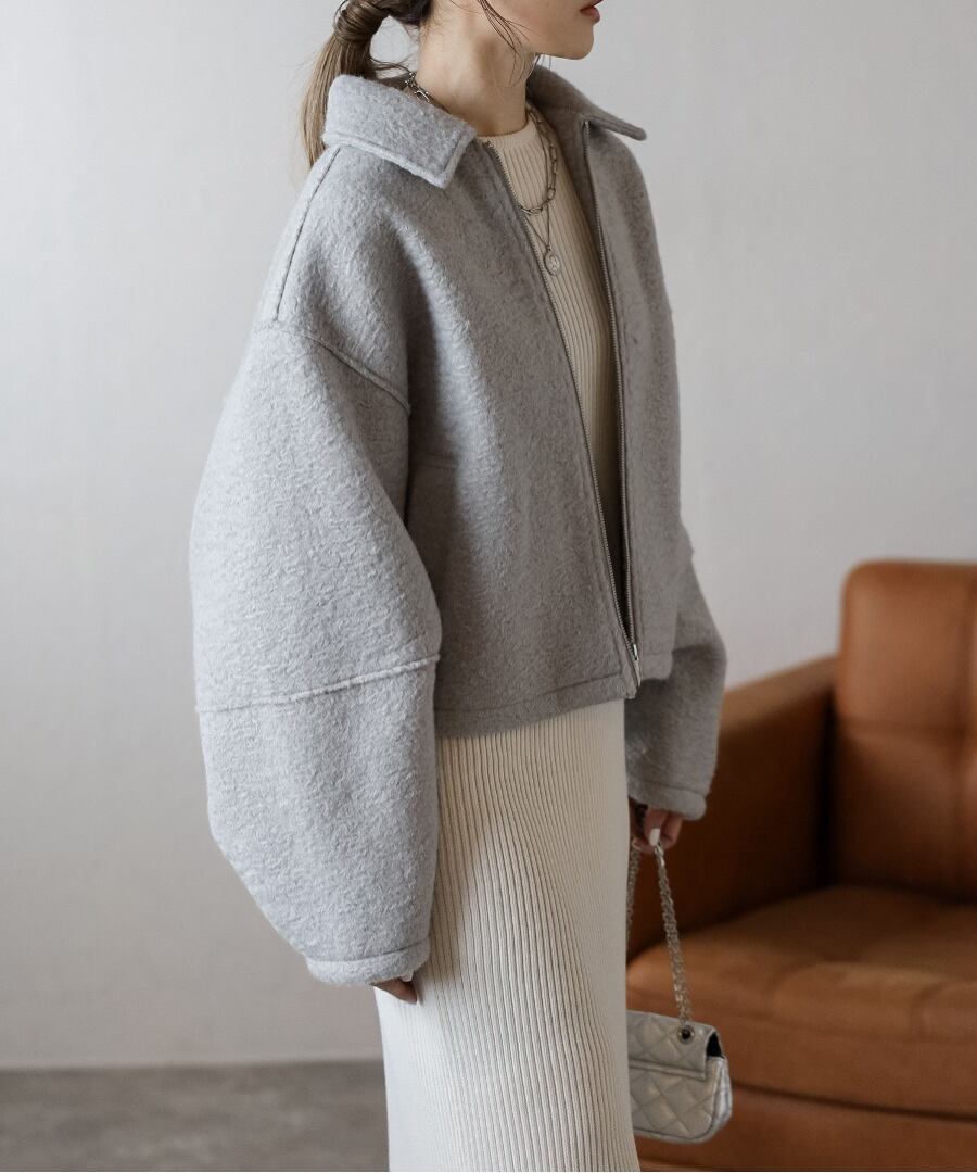 ふんわりシルエットで魅せる、上品ショートブルゾン