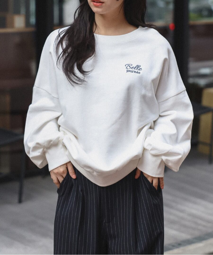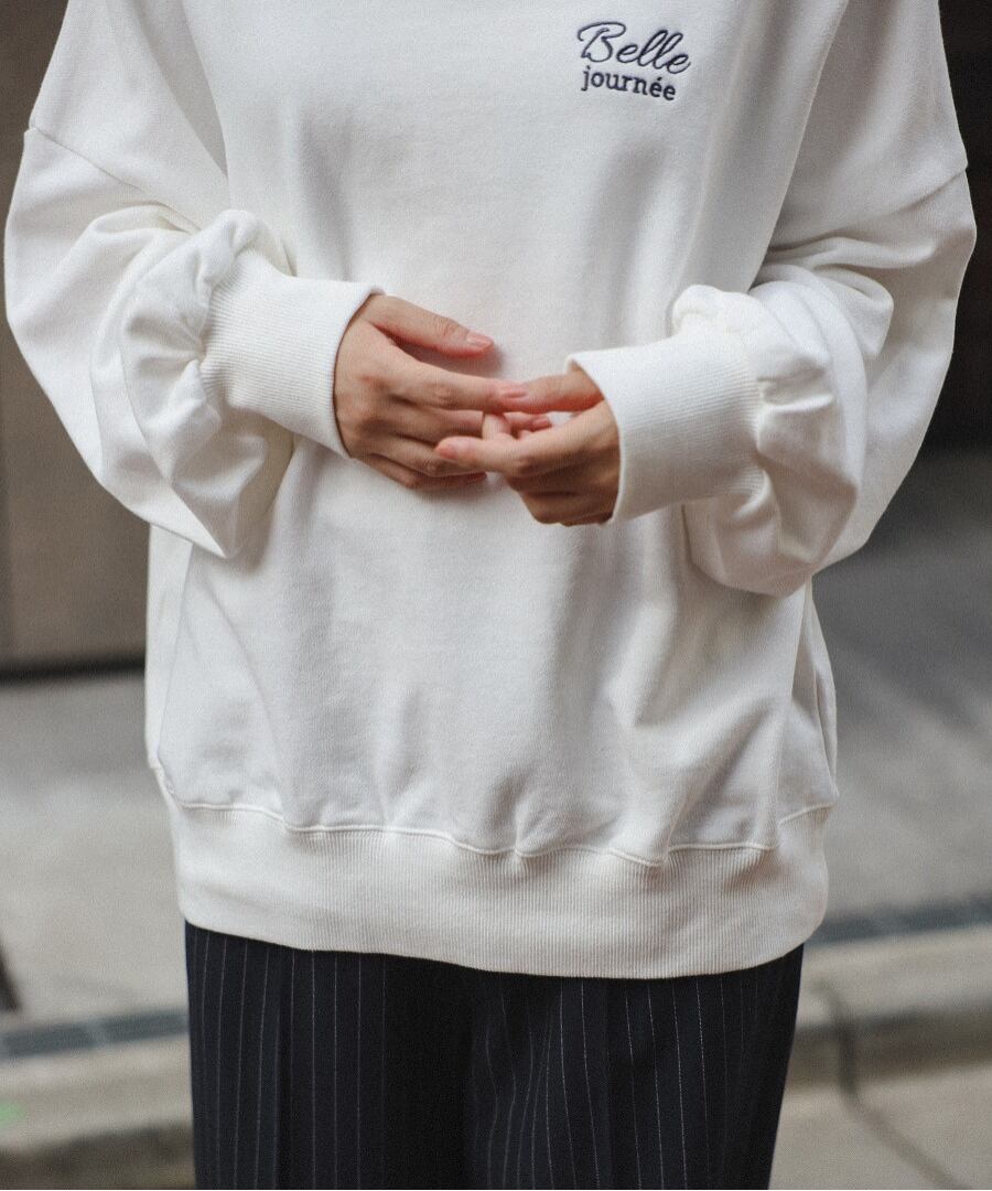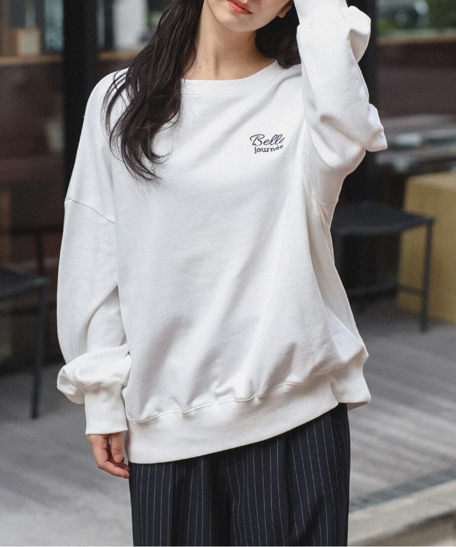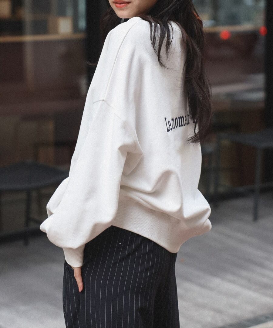 前後の刺繍ロゴが際立つ、リラックスシルエットのスウェット