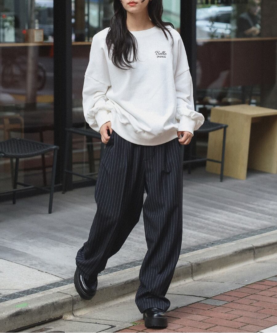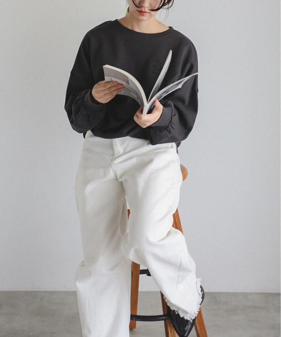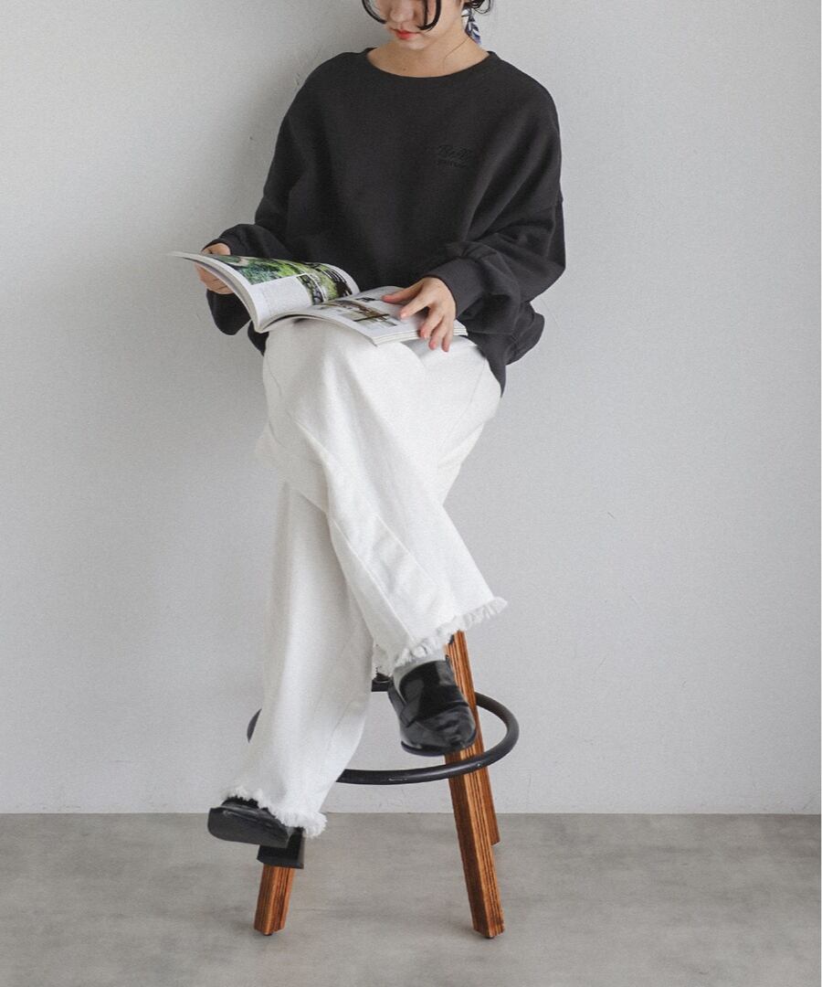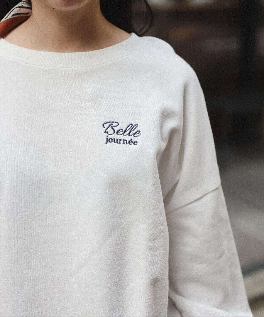 前後の刺繍ロゴが際立つ、リラックスシルエットのスウェット