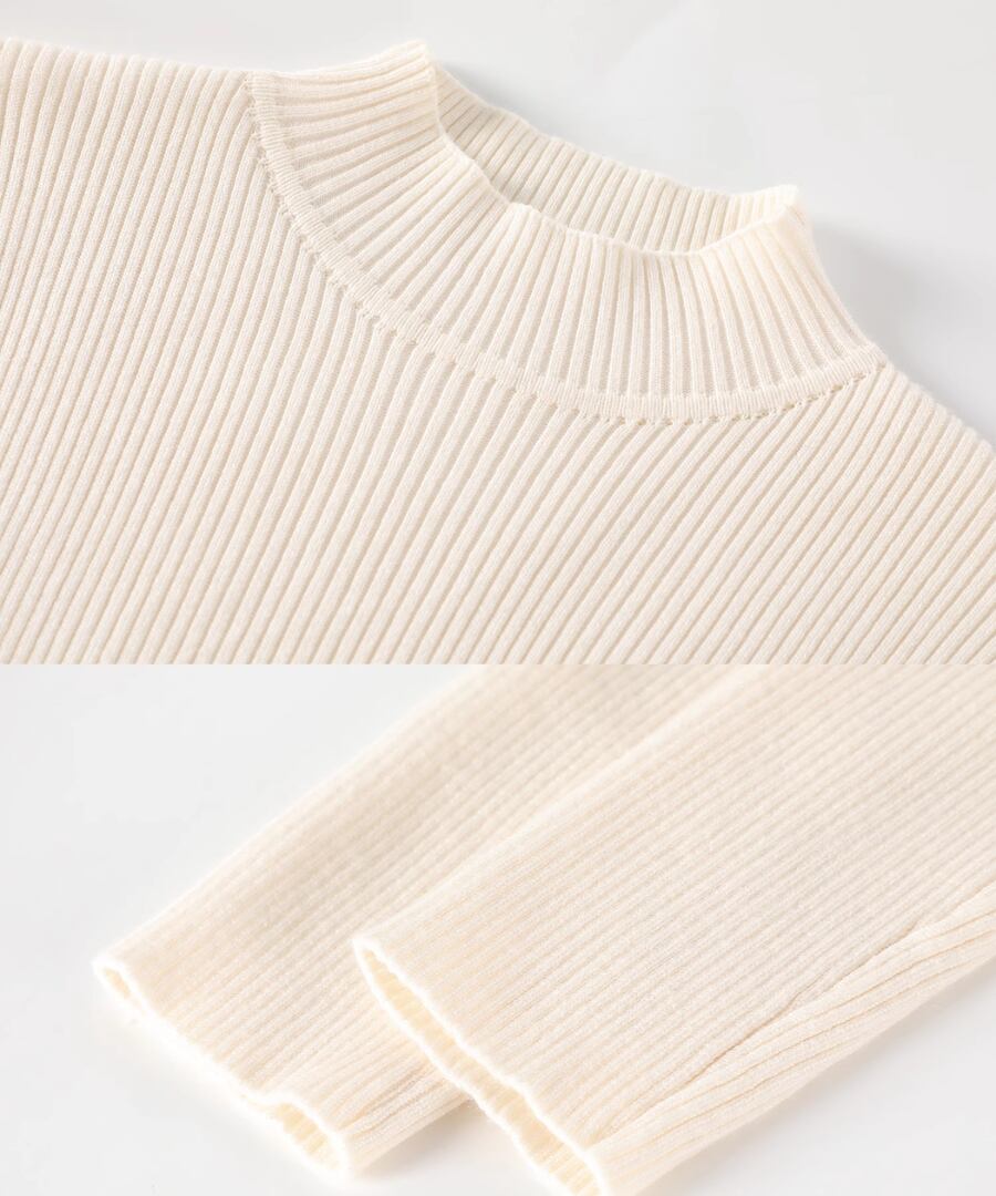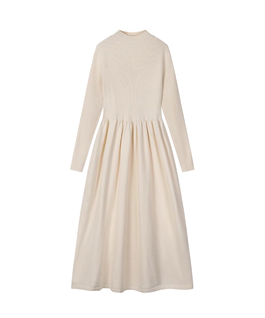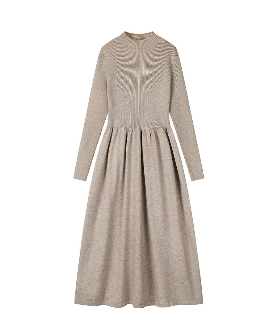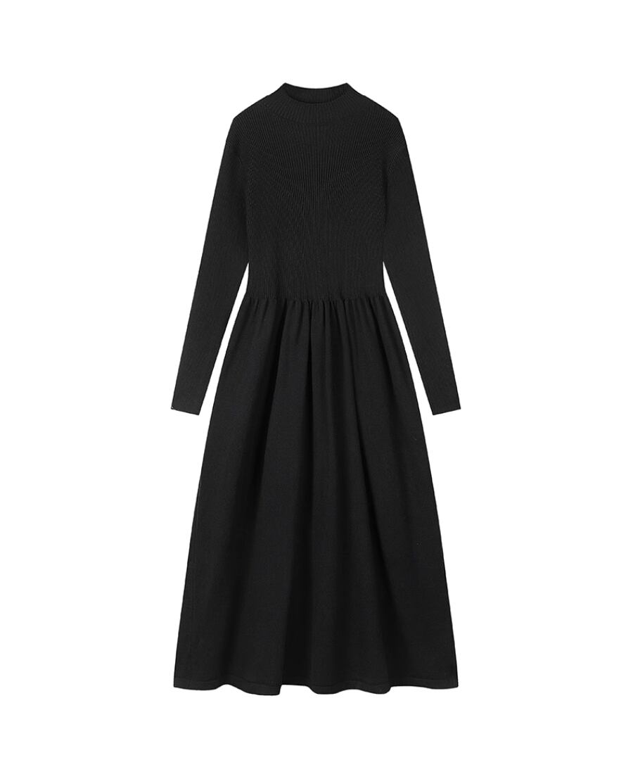 ハーフタートルのデザインが魅力的なニットワンピース。