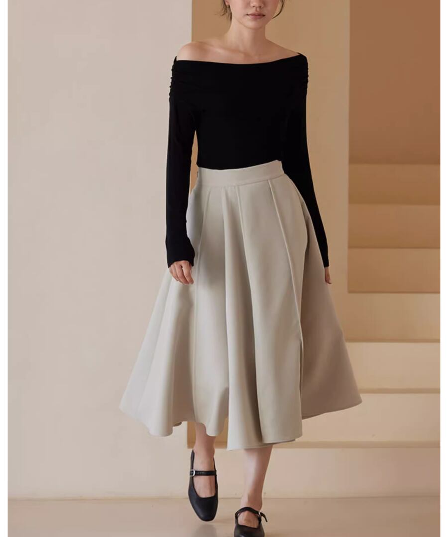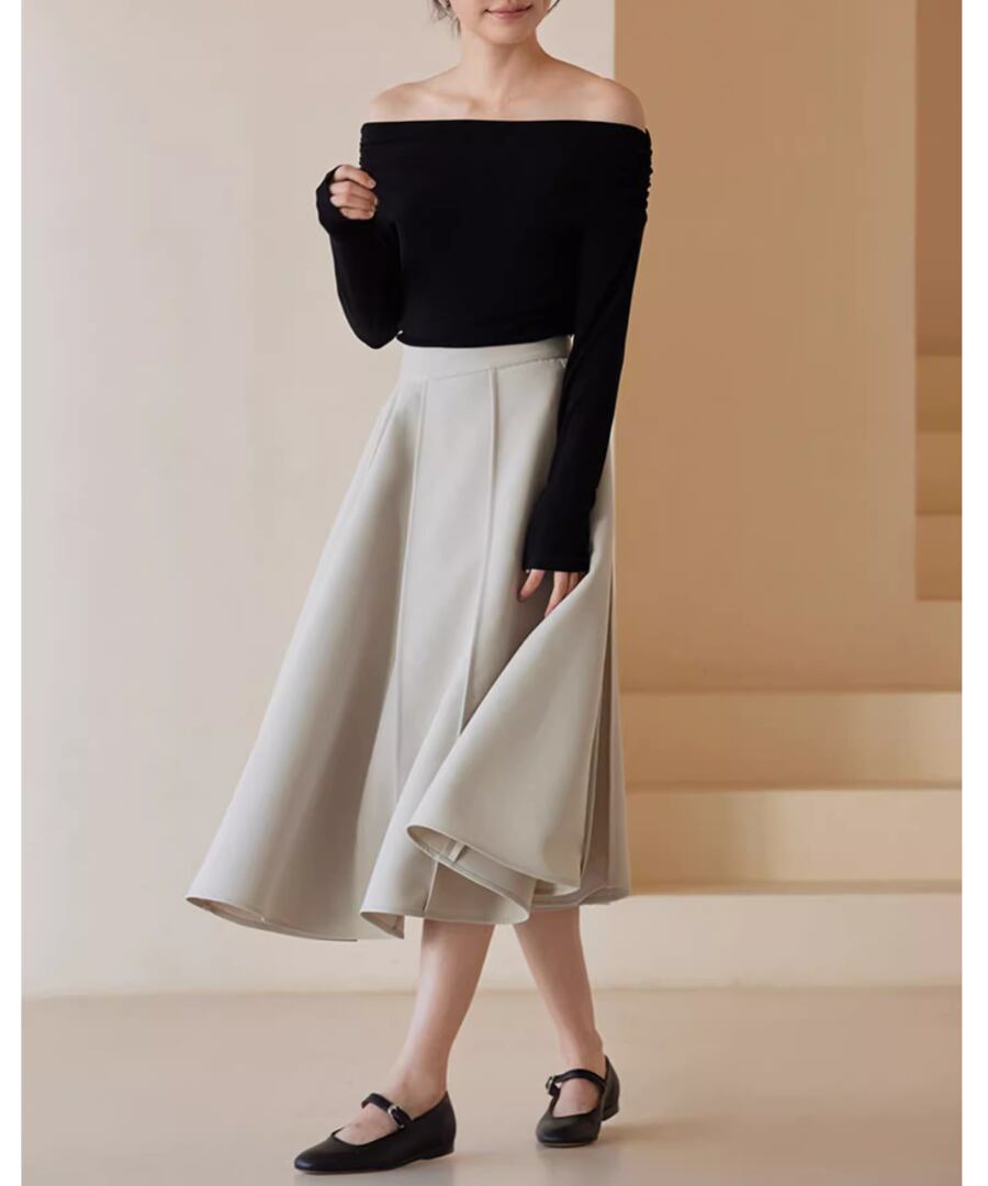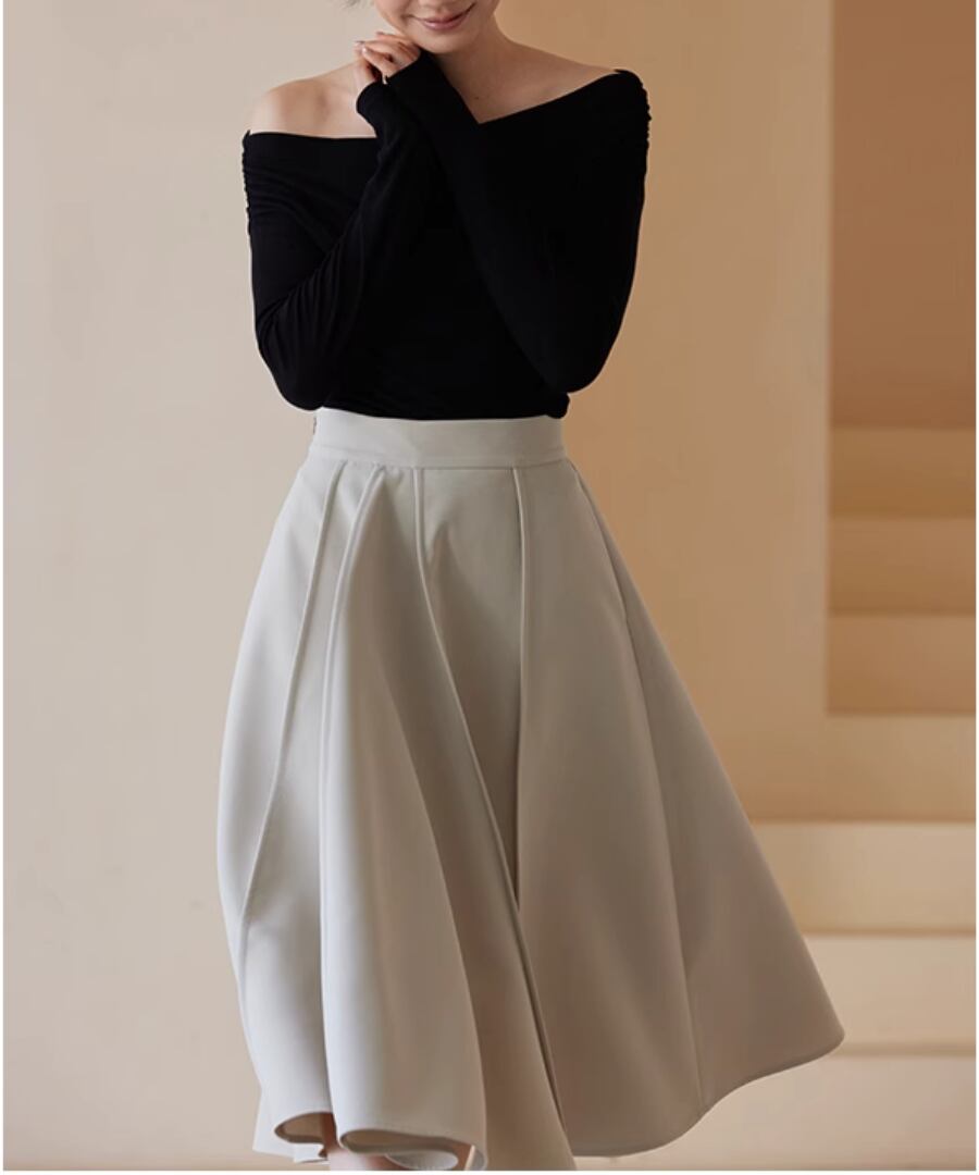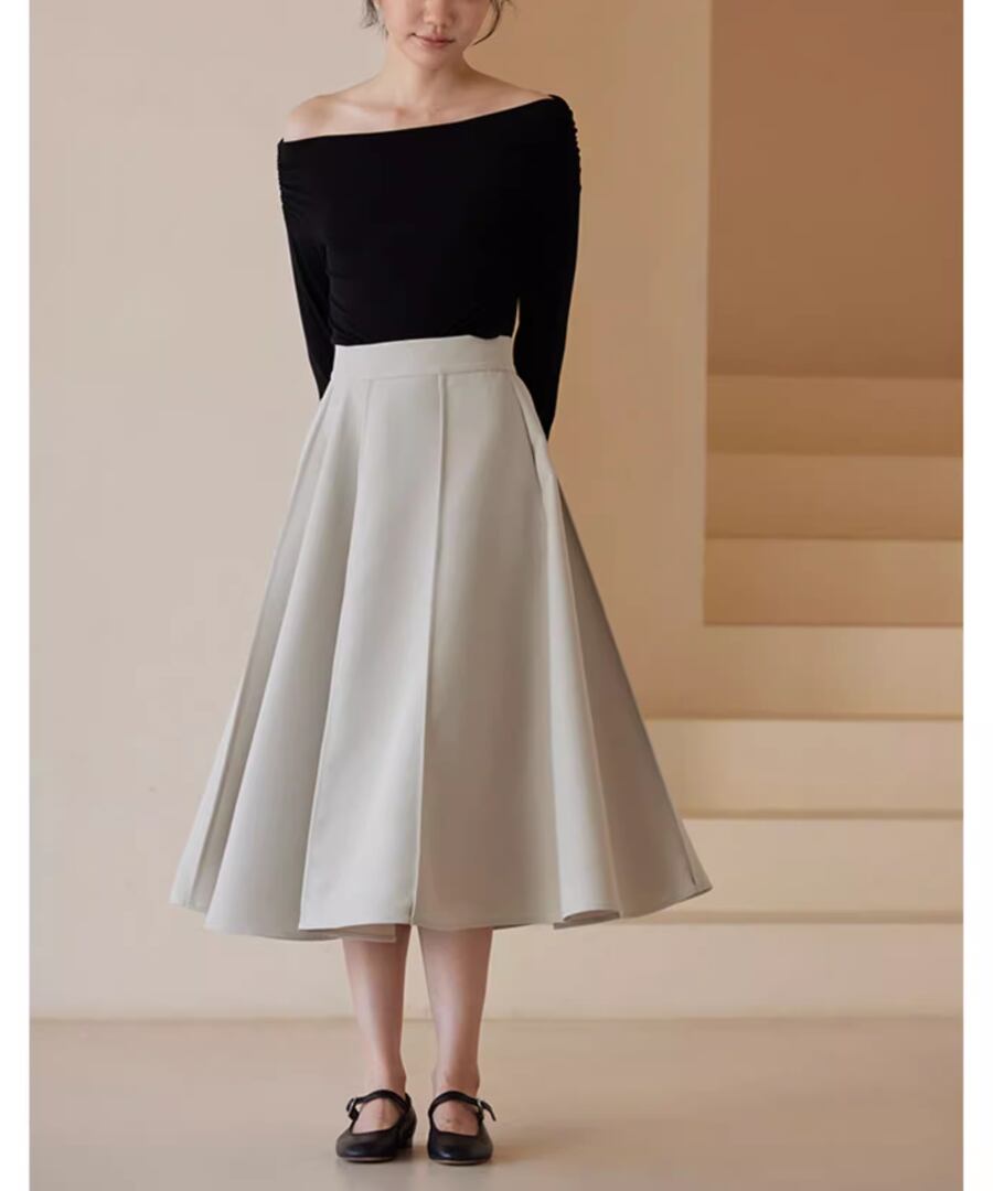 華やかなAラインのスイングスカート。