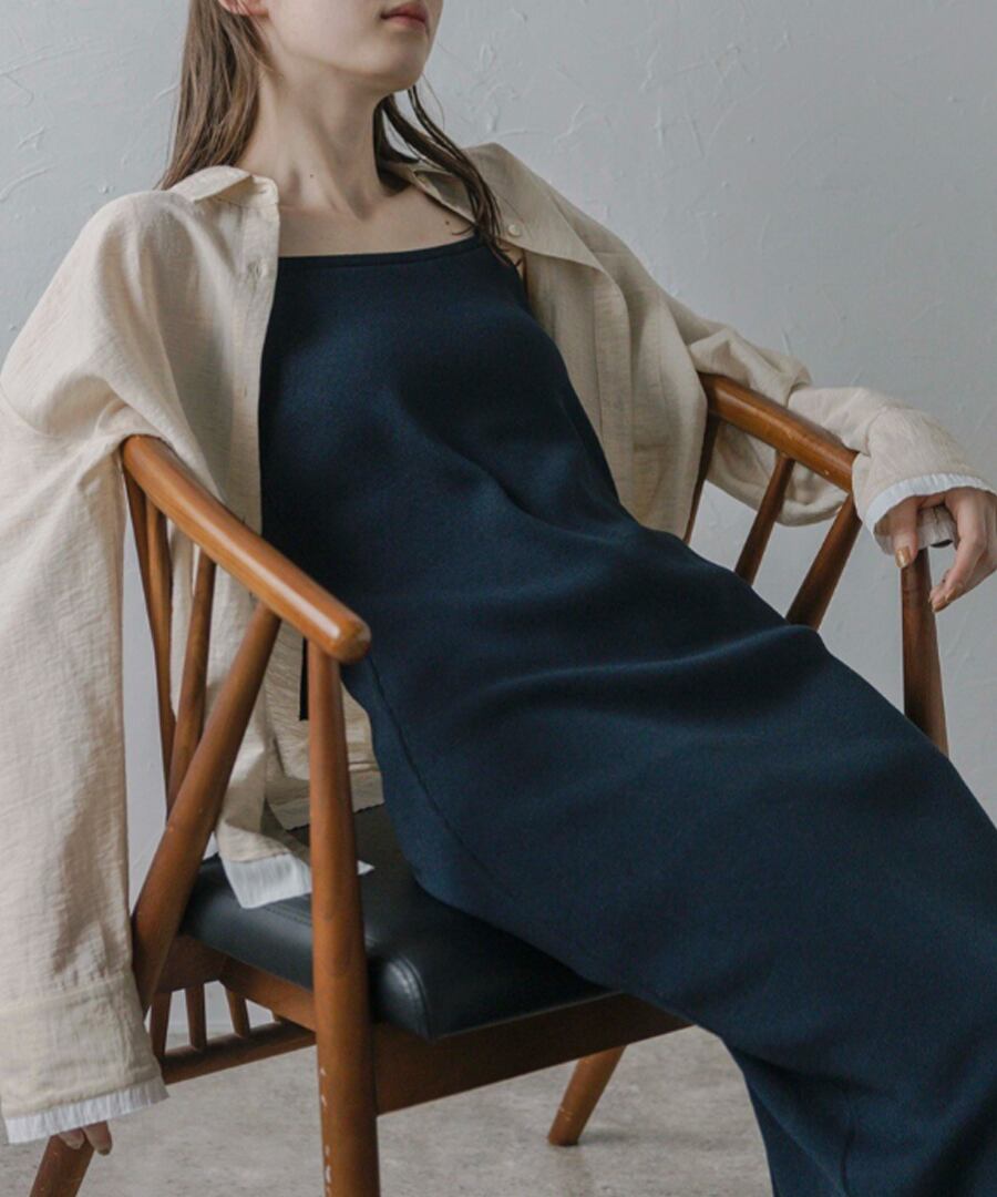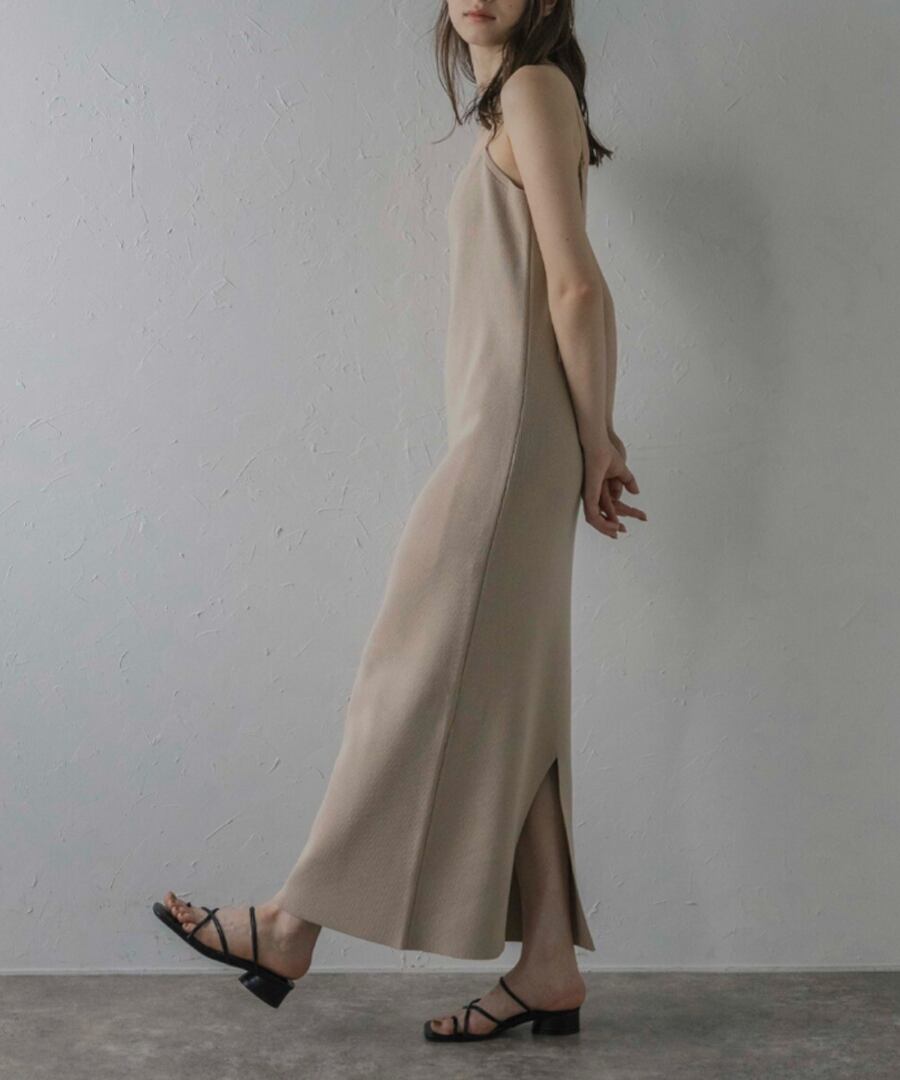 身体のラインに優しく寄り添う、麻タッチで涼やかニットのワンピース。