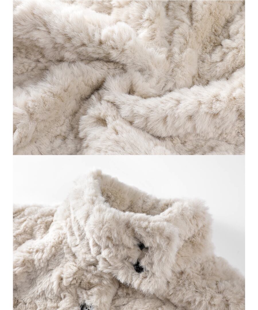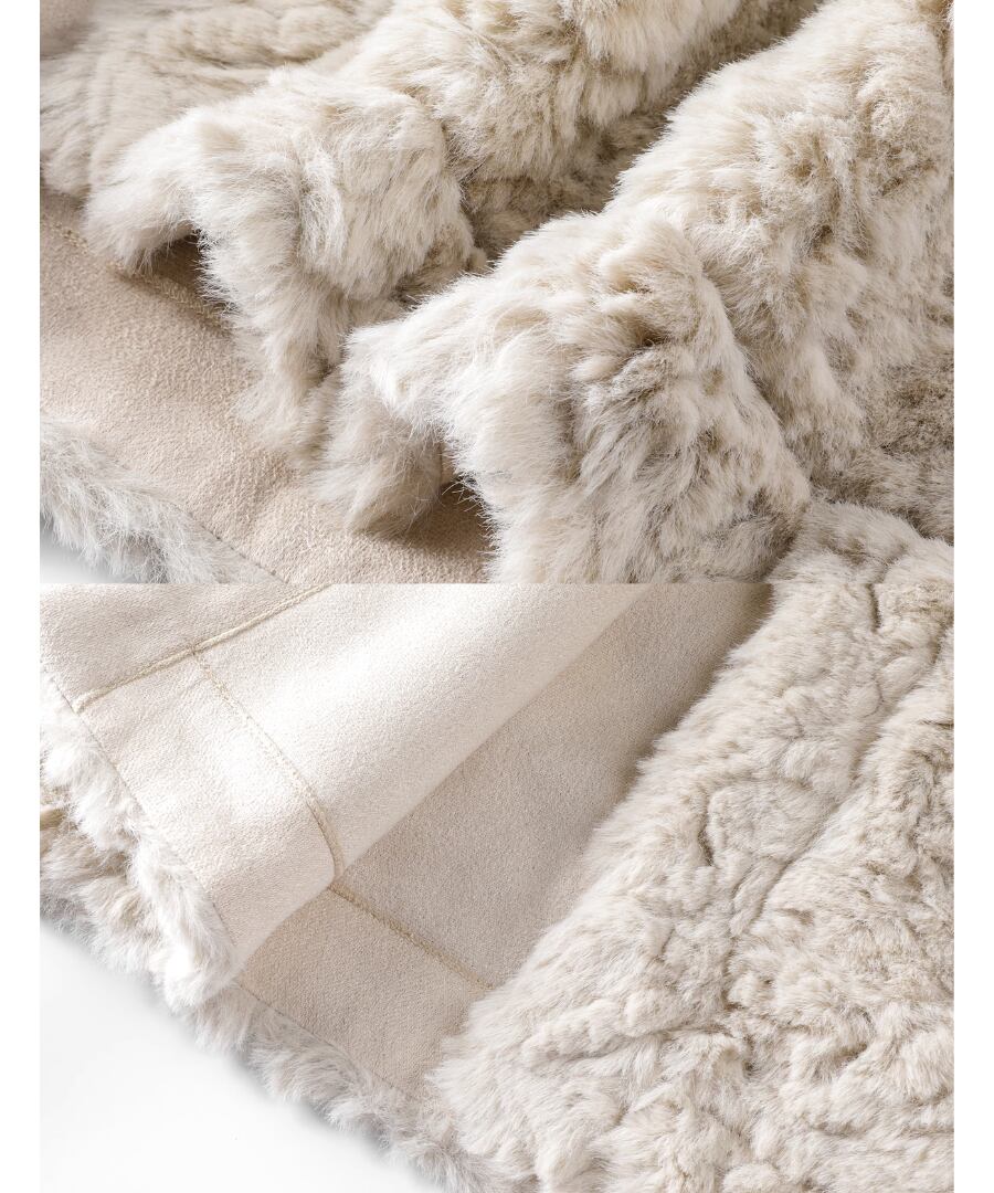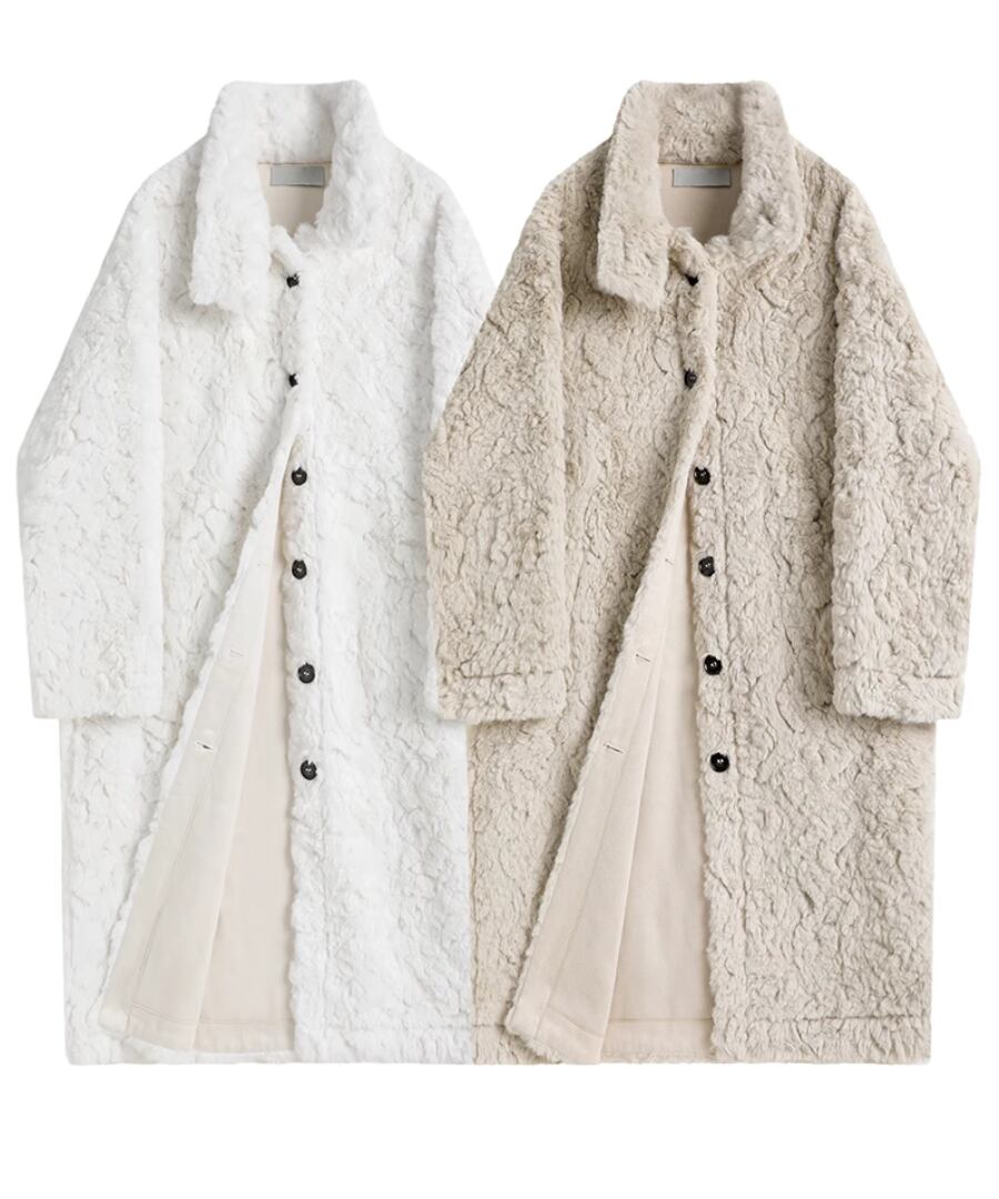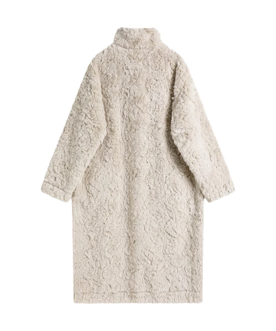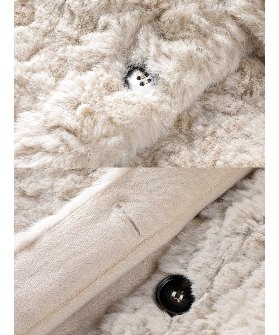 柔らかく心地よい肌触りのふんわりフェイクファーコート。