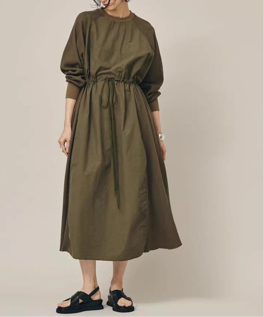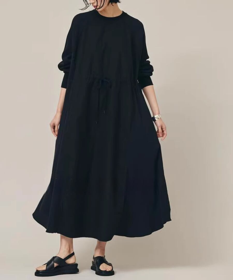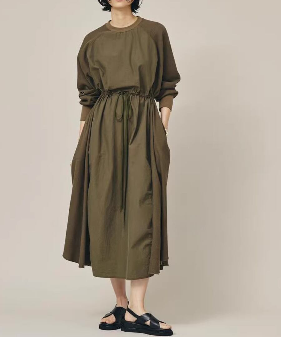 スウェットと布帛の異素材を組み合わせたワンピース