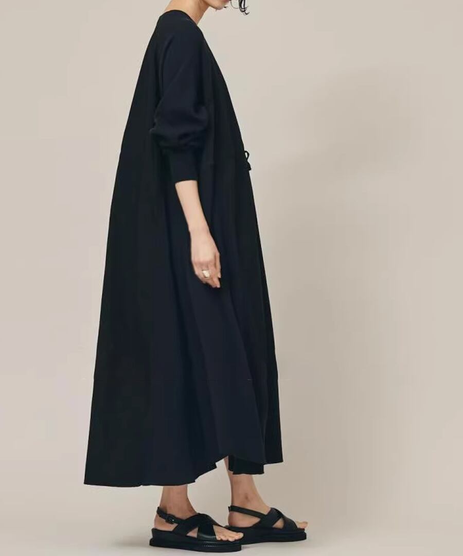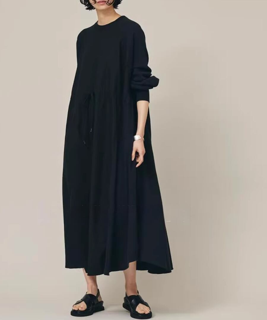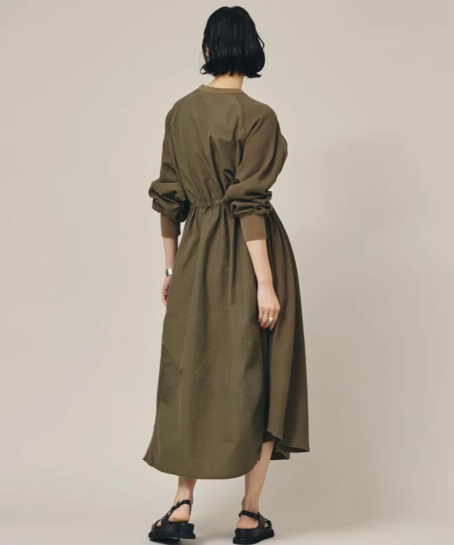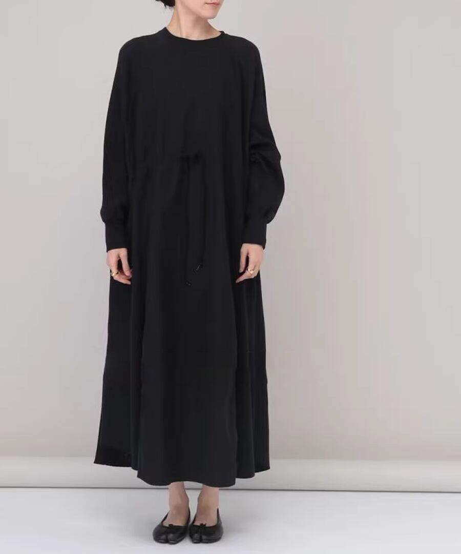 スウェットと布帛の異素材を組み合わせたワンピース