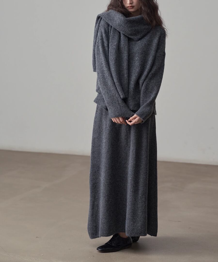 3点セット◆Vネックニット&スカート&スカーフ【s-40054】