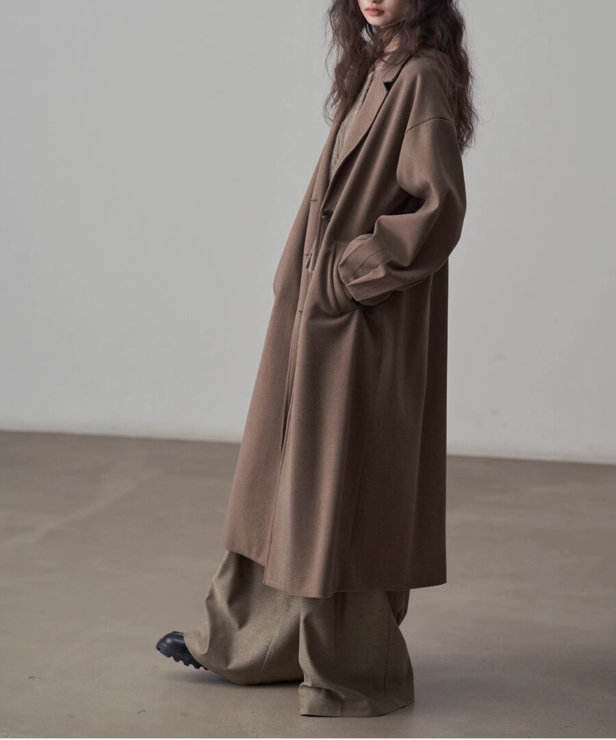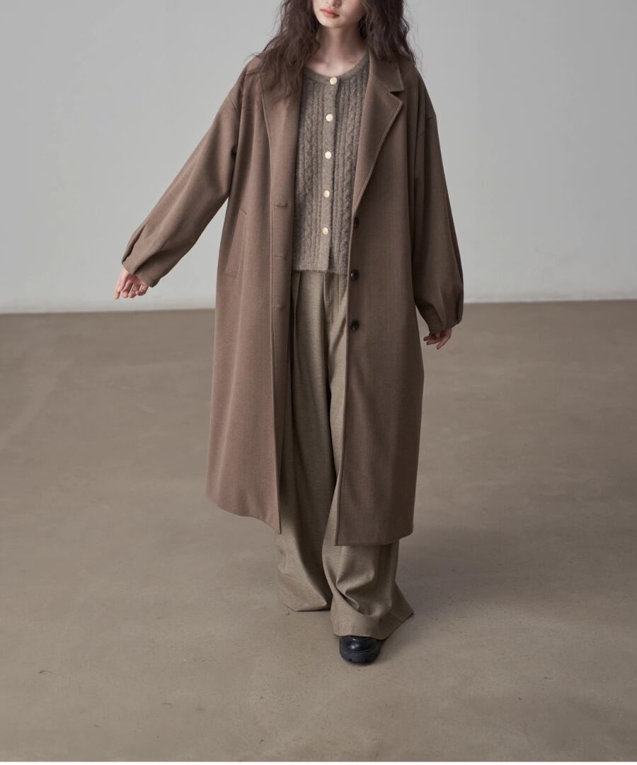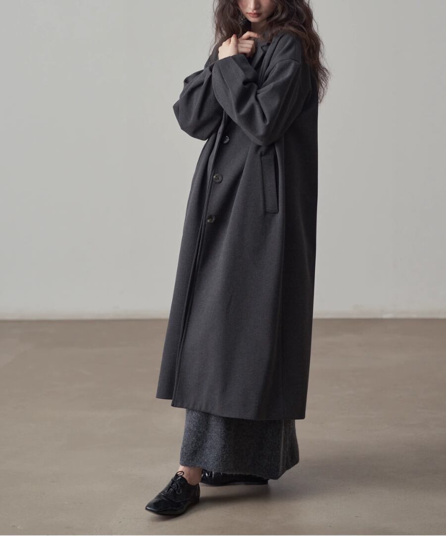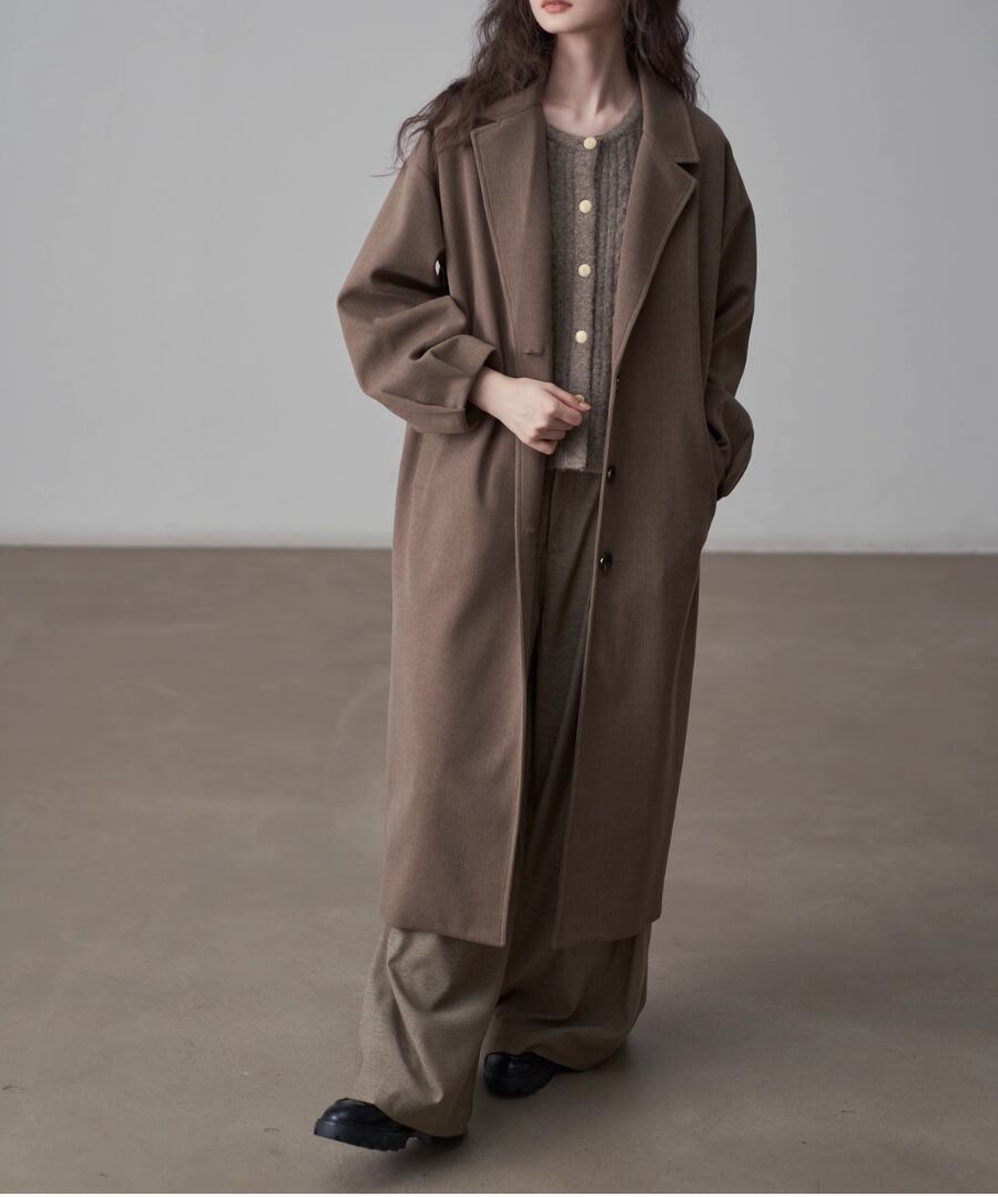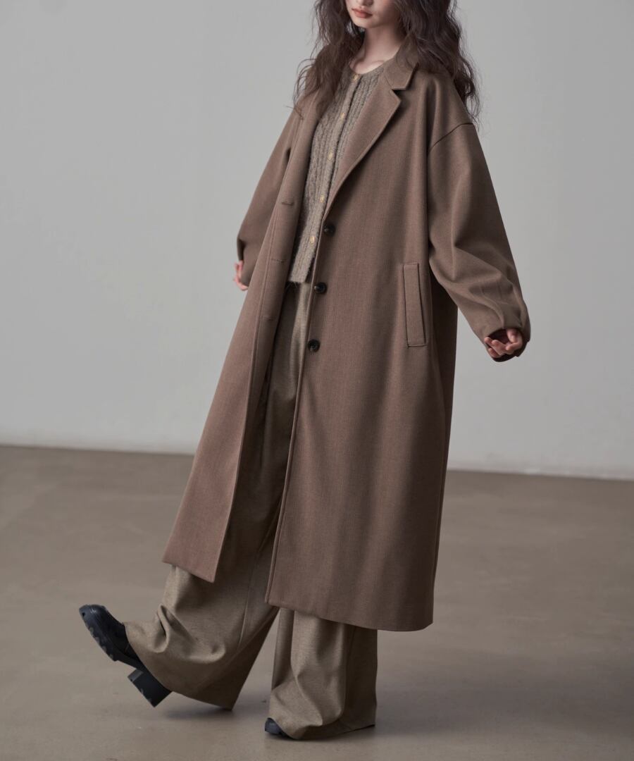 様々なシーンに対応します。エレガントさとカジュアルさを兼ね備えたこのコートは、コーディネートの幅を広げてくれる頼れるアイテムです。