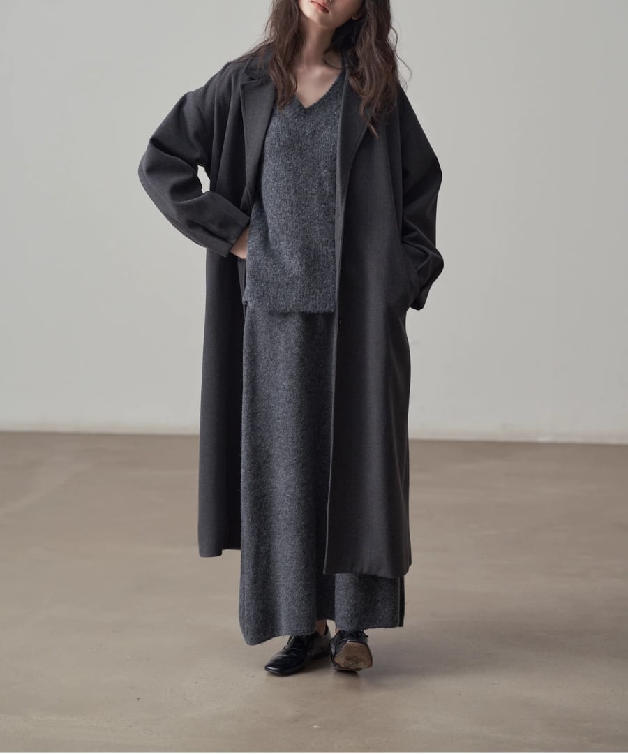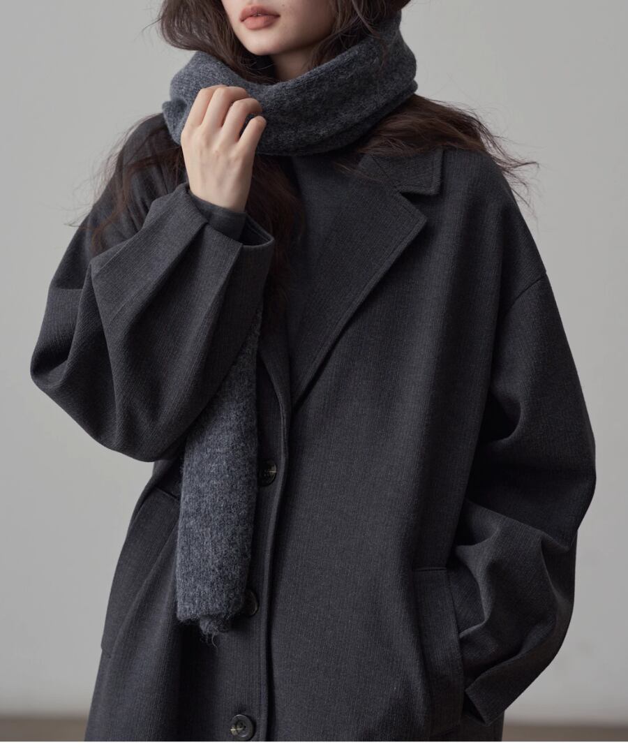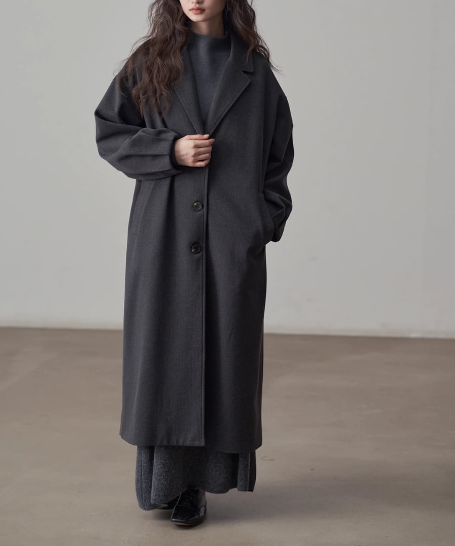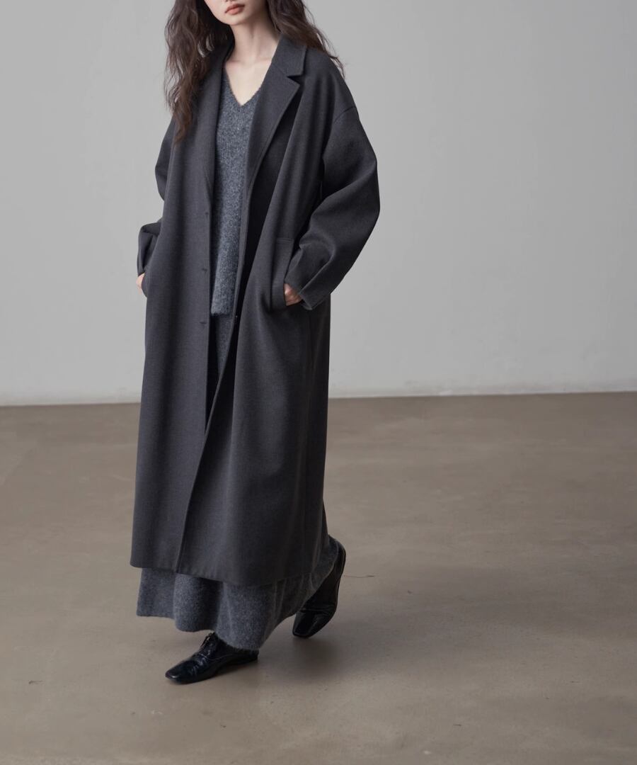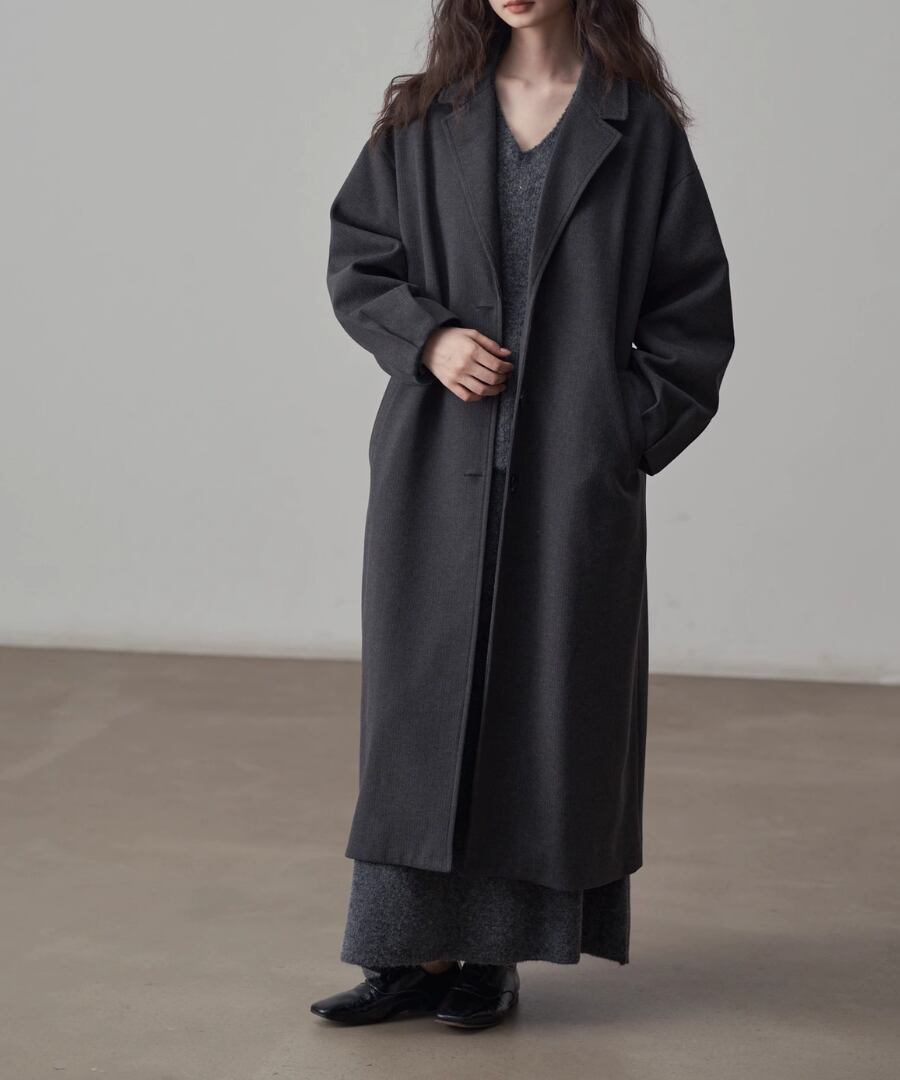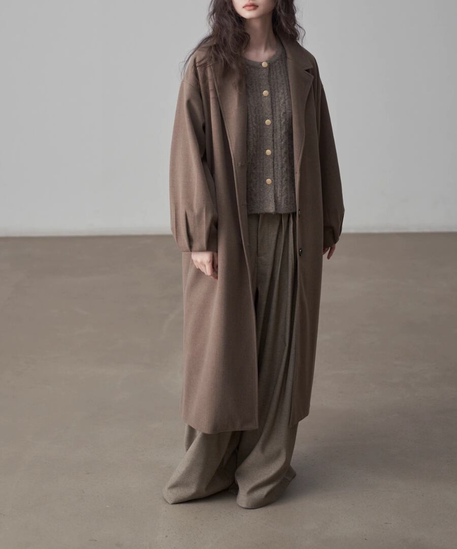 様々なシーンに対応します。エレガントさとカジュアルさを兼ね備えたこのコートは、コーディネートの幅を広げてくれる頼れるアイテムです。