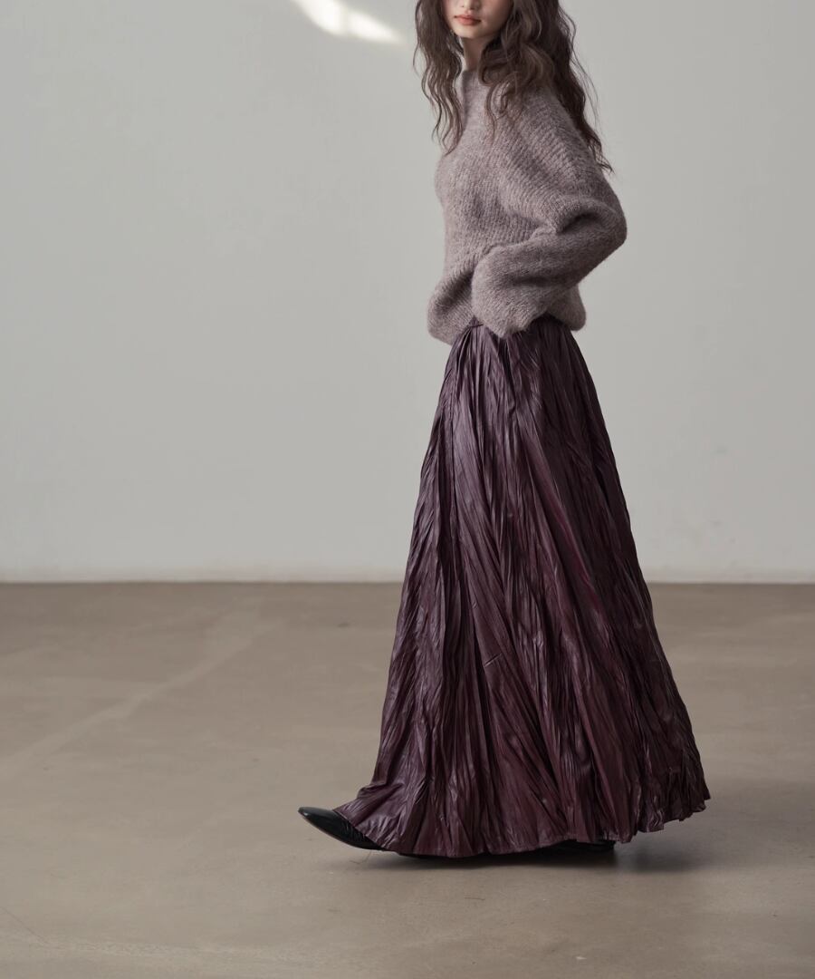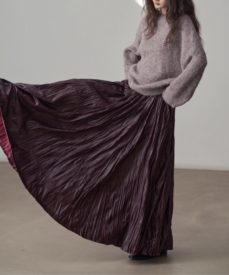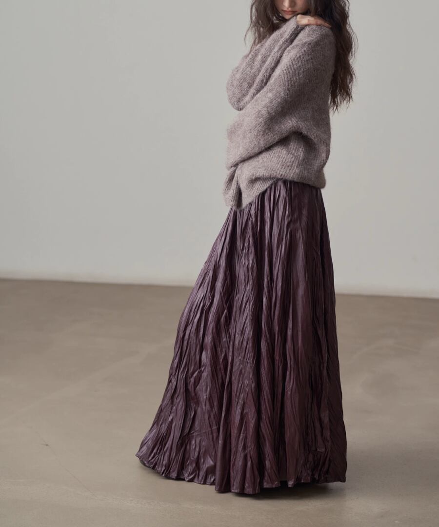 しなやかなプリーツが動くたびに美しいシルエットを描き、女性らしさを引き立ててくれます。