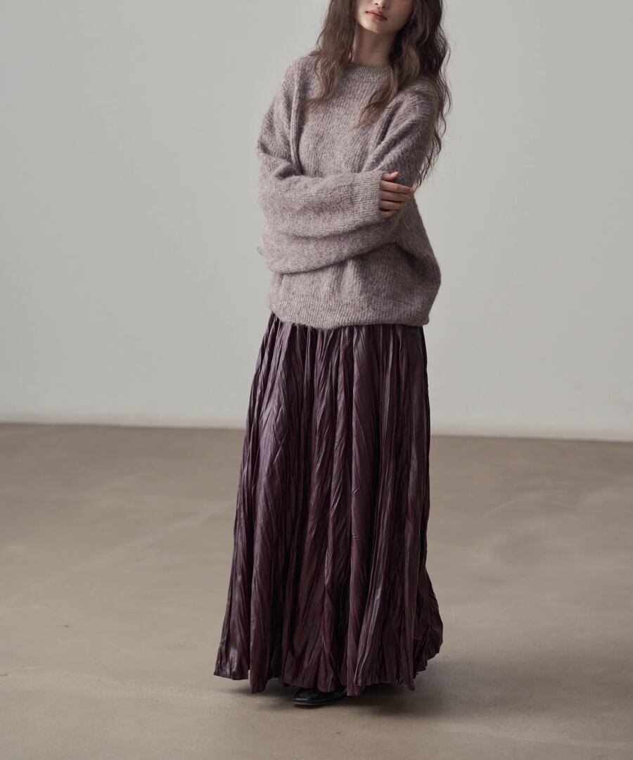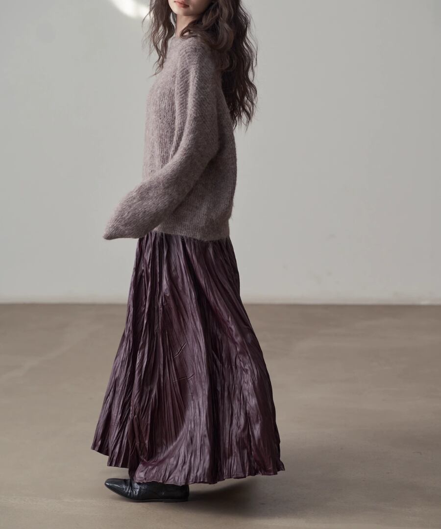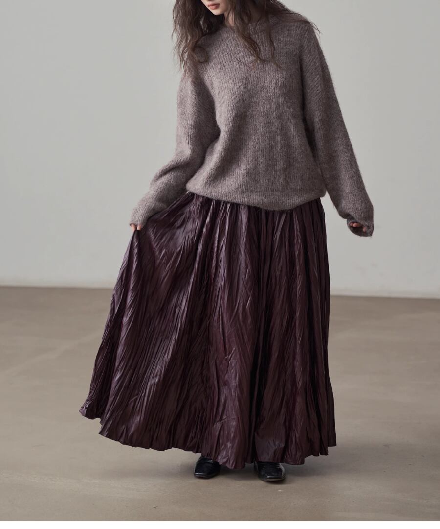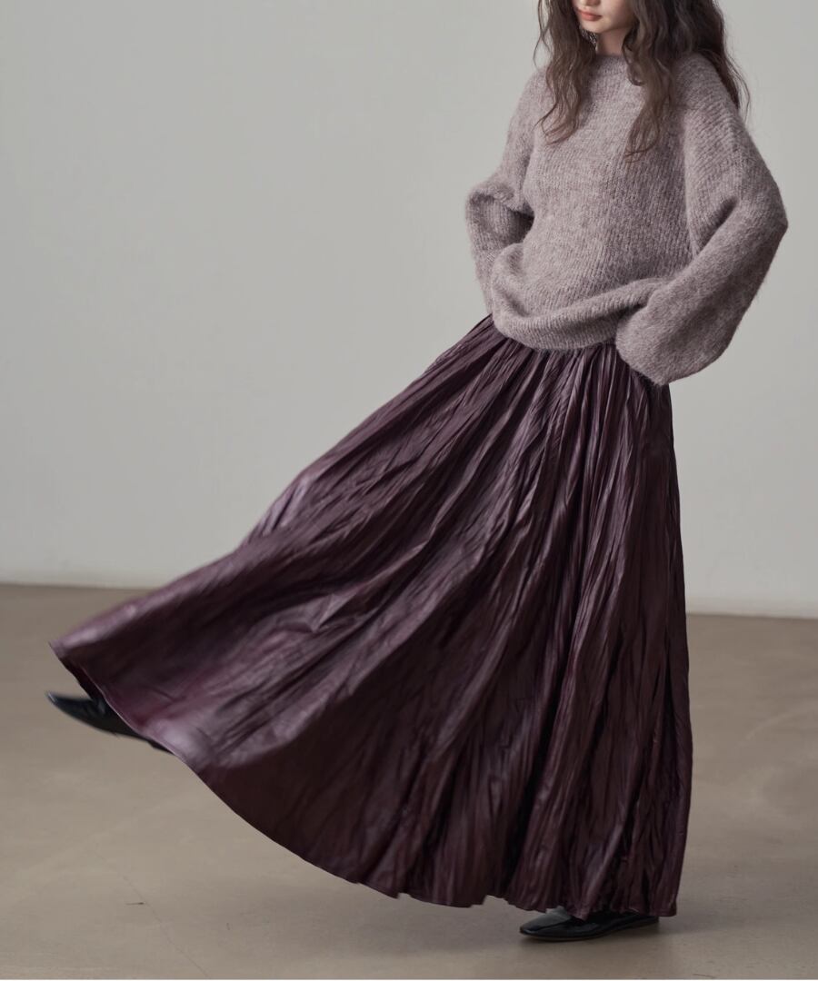 しなやかなプリーツが動くたびに美しいシルエットを描き、女性らしさを引き立ててくれます。